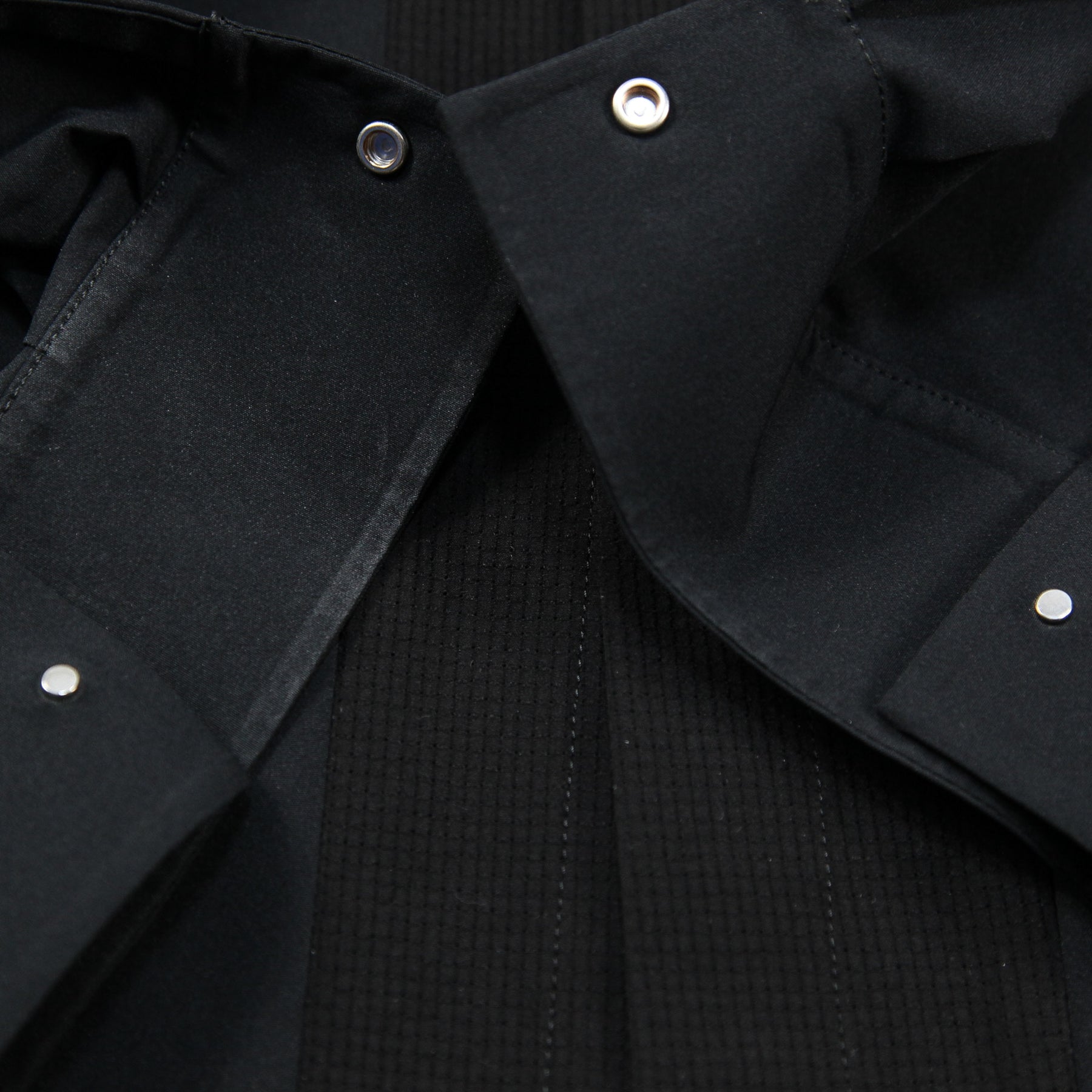 黒のみで構成された、“BLACK LAYER KNOWLEDGE”(黒を重ねる知識)というコンセプトのもと、パターンメイキングとハイスペックな素材の融合により、ソリッドでミニマルなアイテムを製作しています。