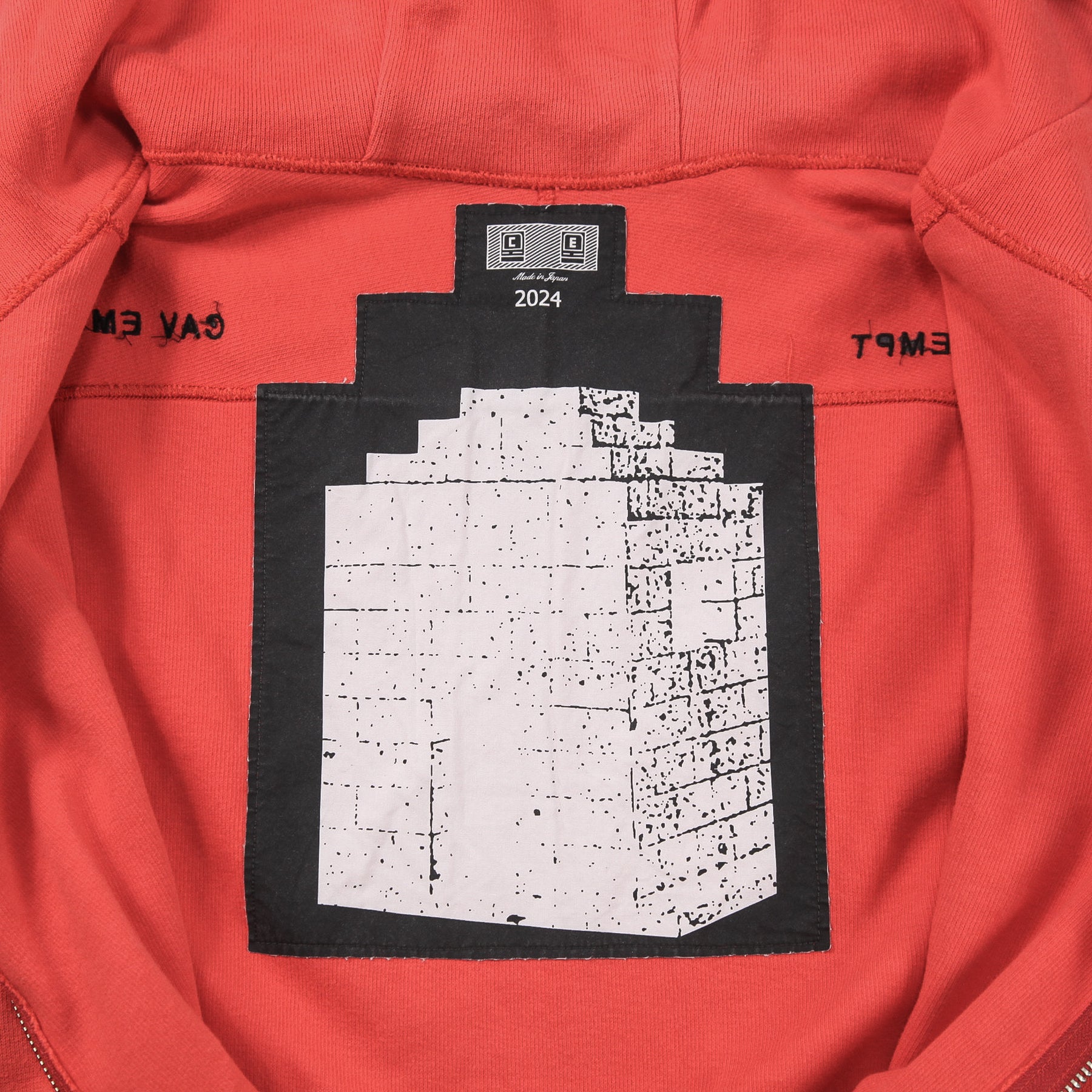 変形のセットインスリーブで、後ろ身頃ショルダーにCAV EMPTロゴを刺繍し、後ろ身頃裏に布パッチを配したデザイン。