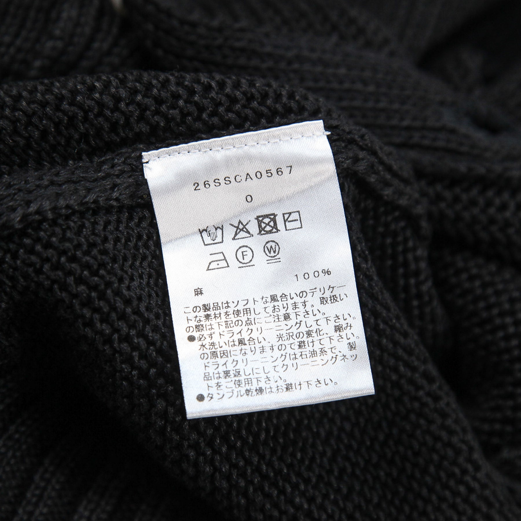 フレンチリネンとしては極太の番手で贅沢に撚糸して3Gで度詰めに編み立てられており、1着あたり約800gもの糸量を使用しているので透け感や軽さといった、いわゆる“リネンニット”のイメージとは少し異なる仕上がり。