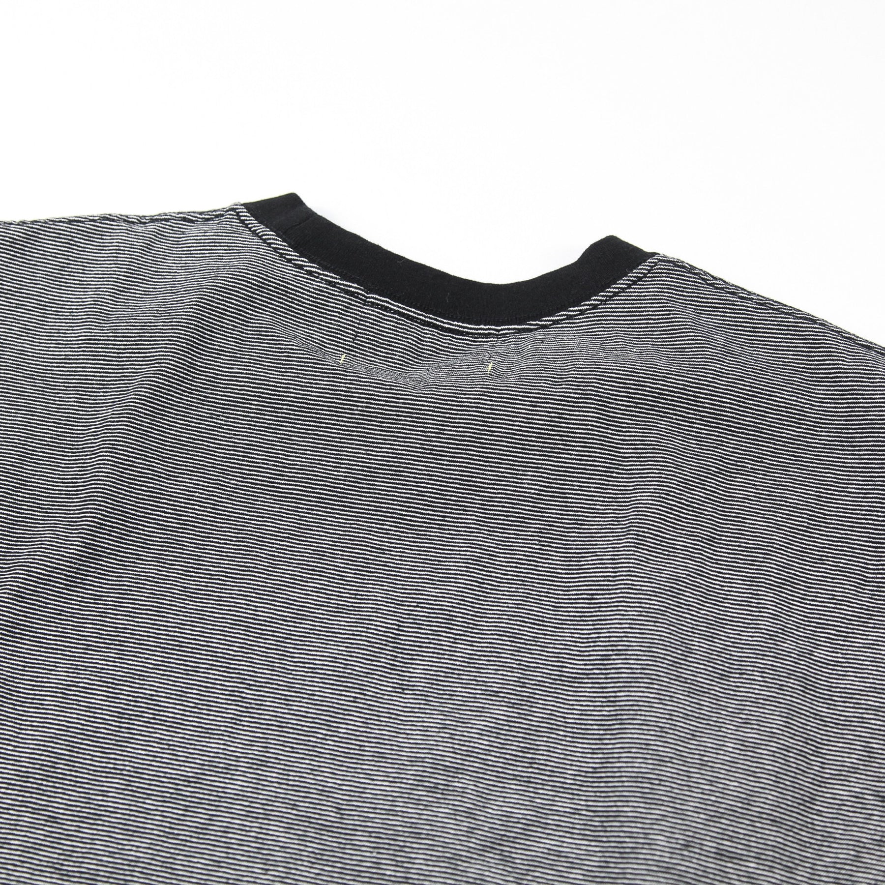 わずかにムラ感のある糸で編むことで、手書きで書かれたようなゆらぎのあるボーダーを表現した天竺。