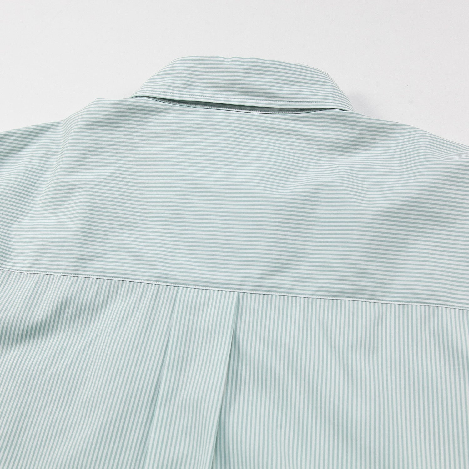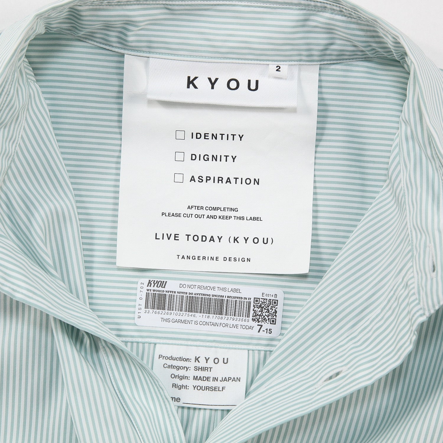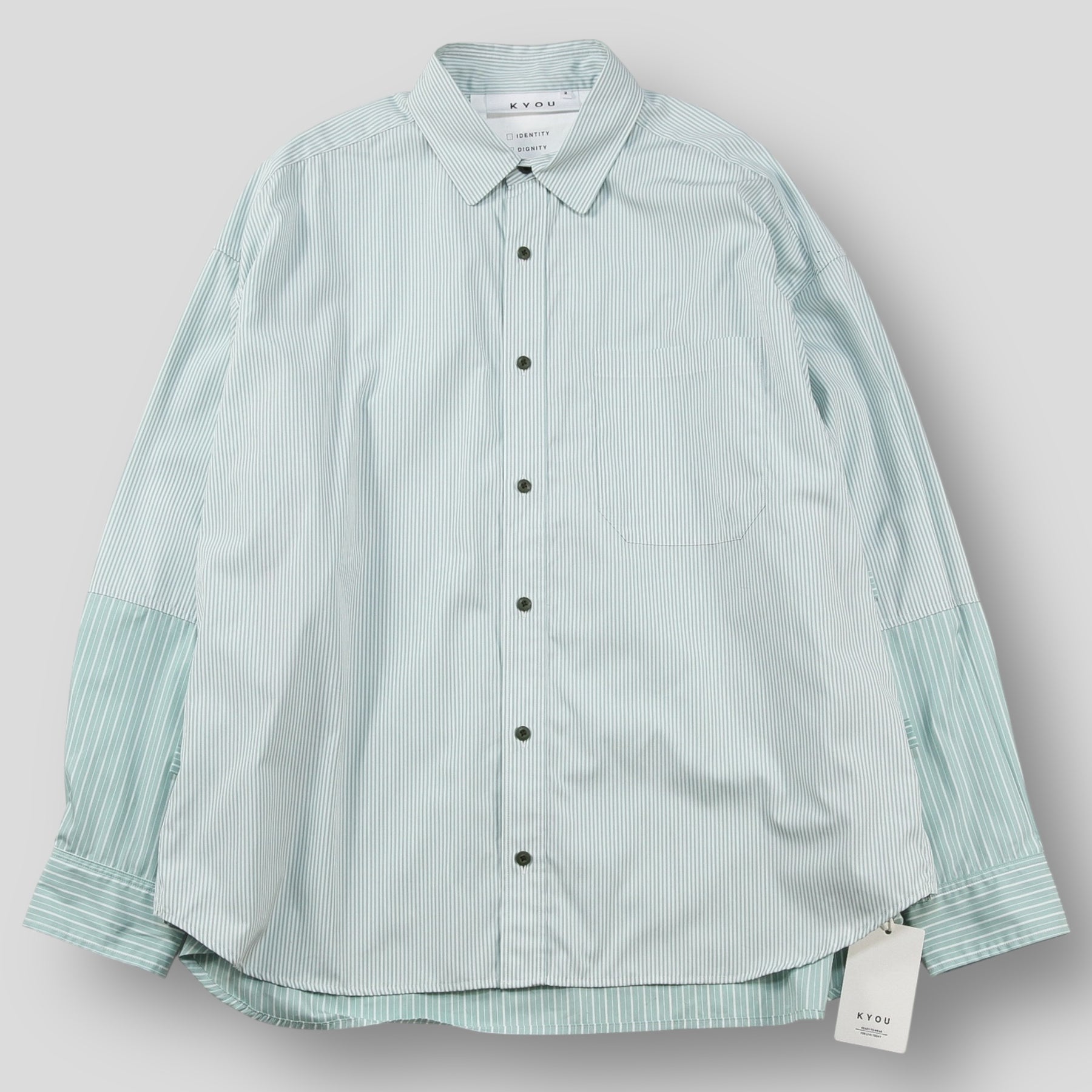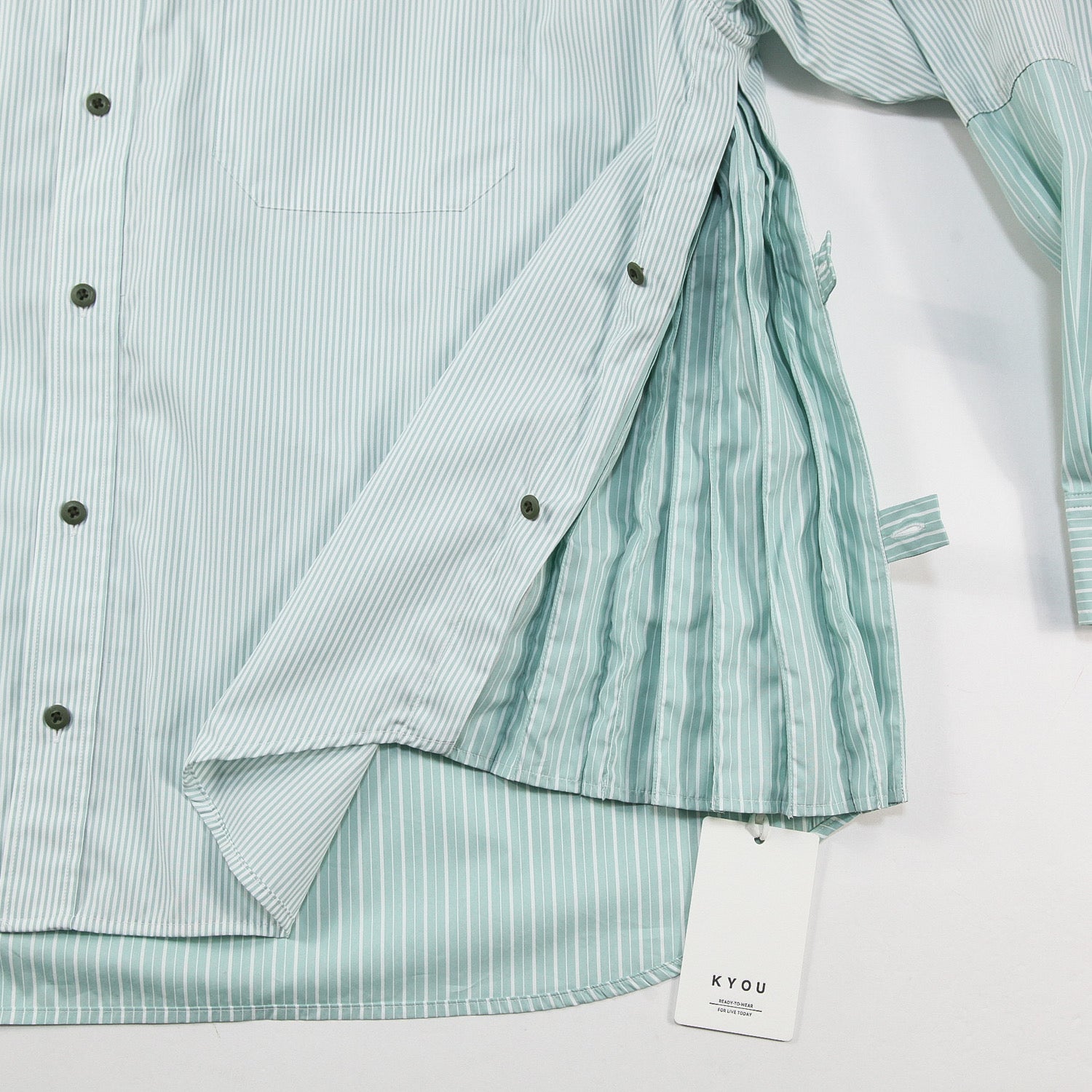 サイドのプリーツが特徴的な、KYOU定番のストライプシャツ。