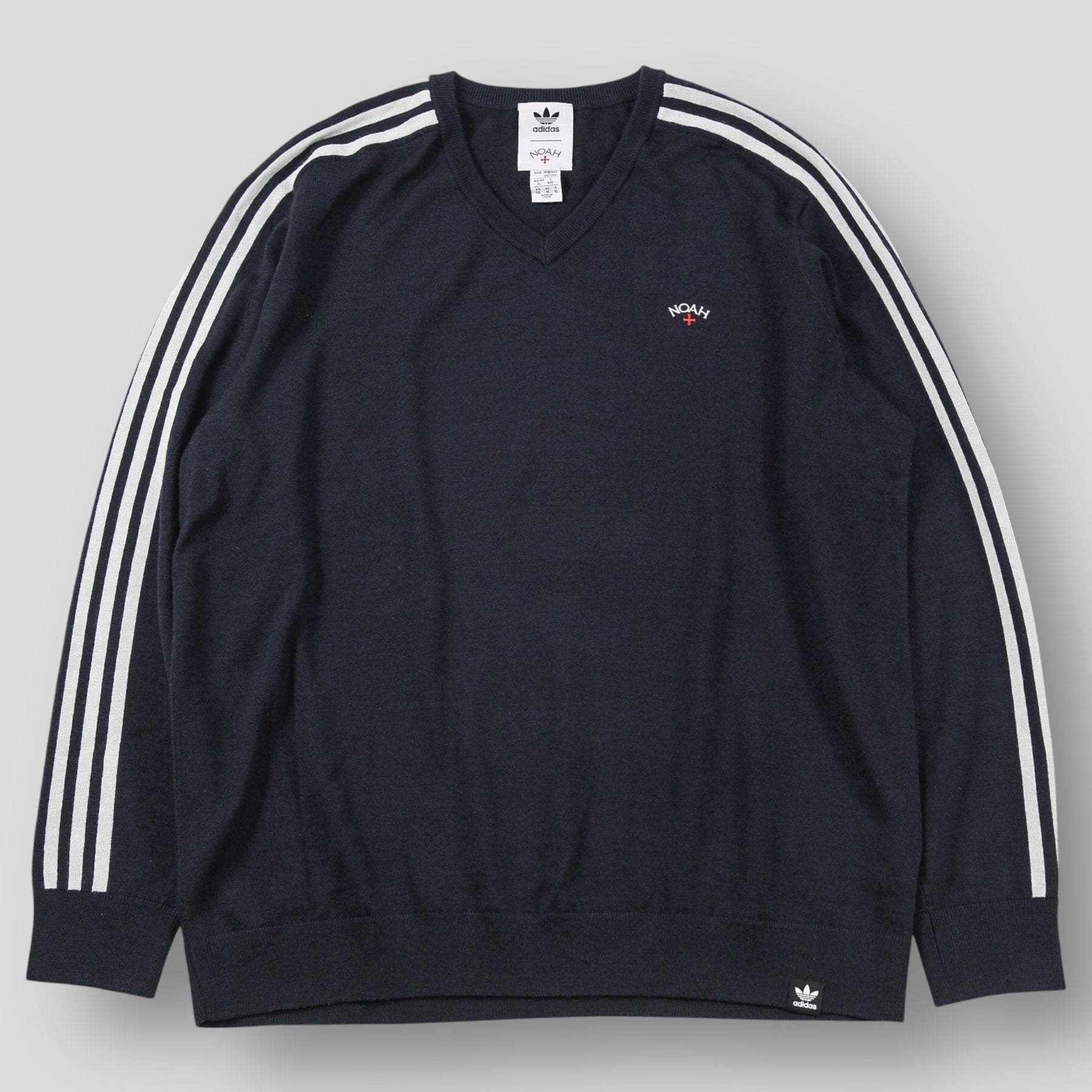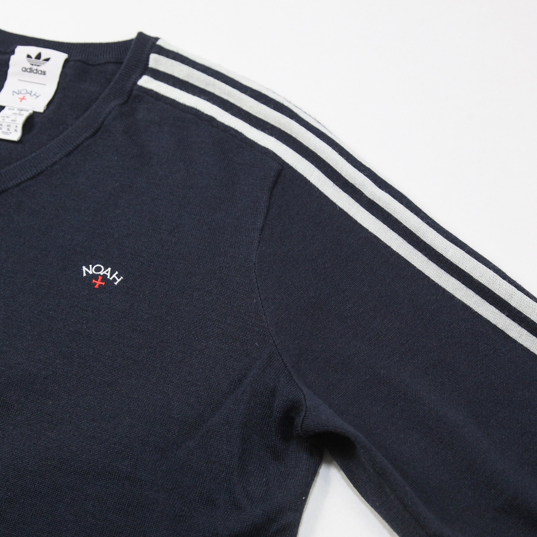 袖のスリーストライプスや胸元のNOAHのロゴ刺繍、フロント左裾のadidasタグなど、両ブランドの魅力が詰まった一着です。