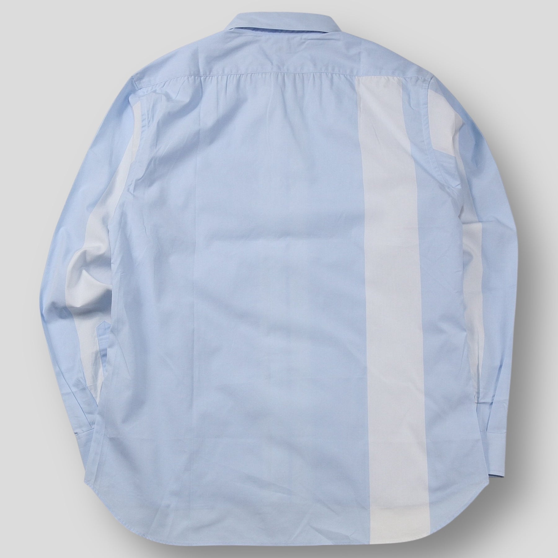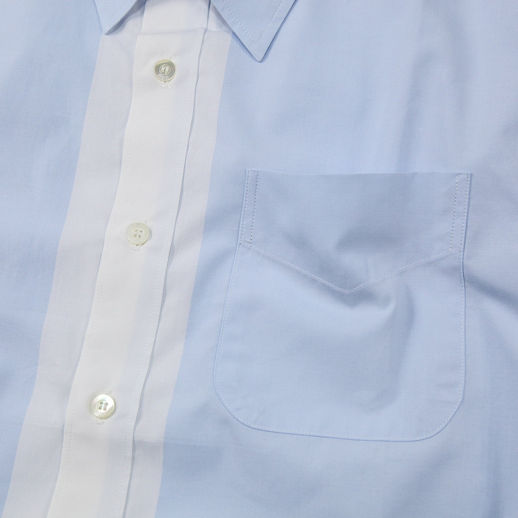 ハリのある薄手のコットン素材を使用した、鮮やかなサックスブルーのシャツ。