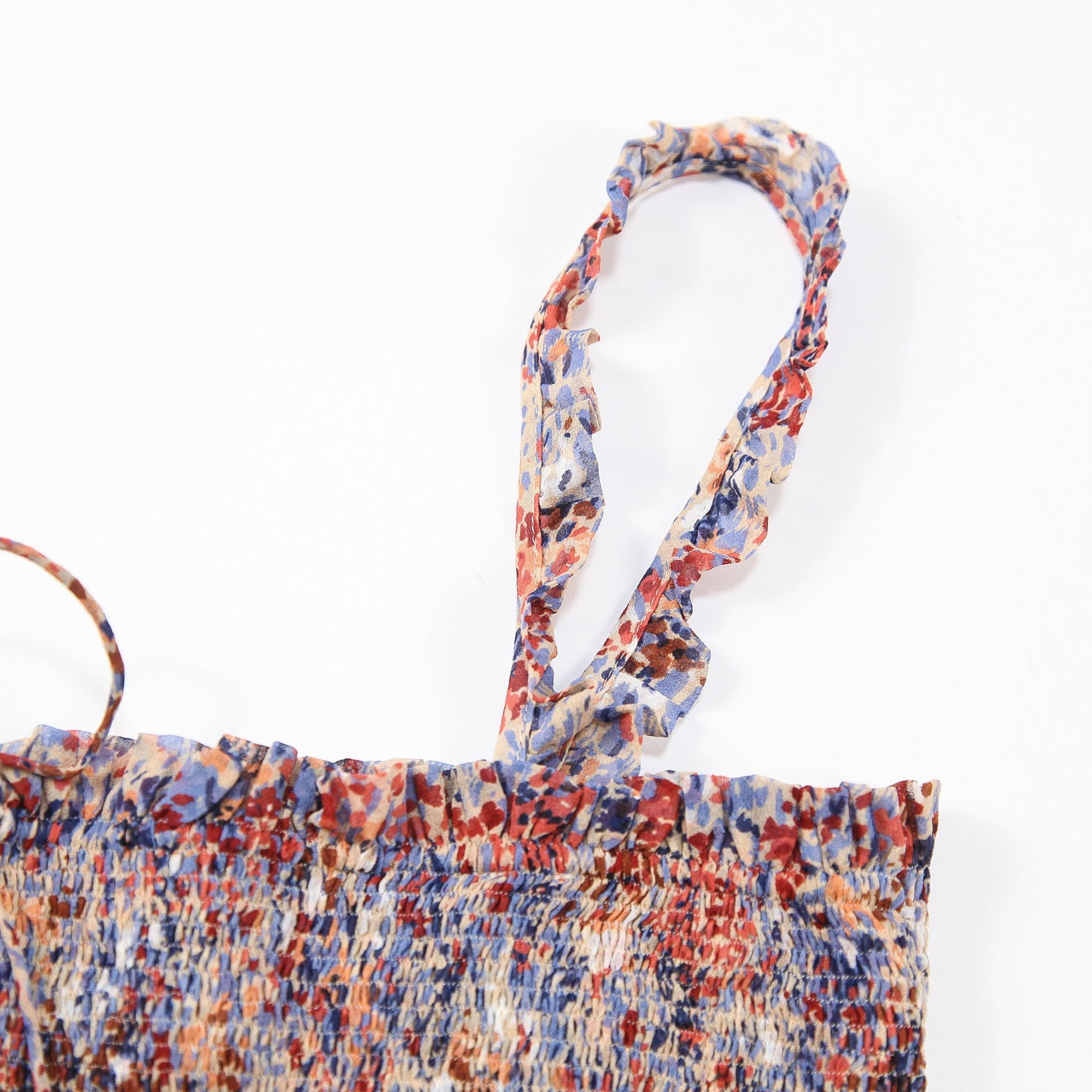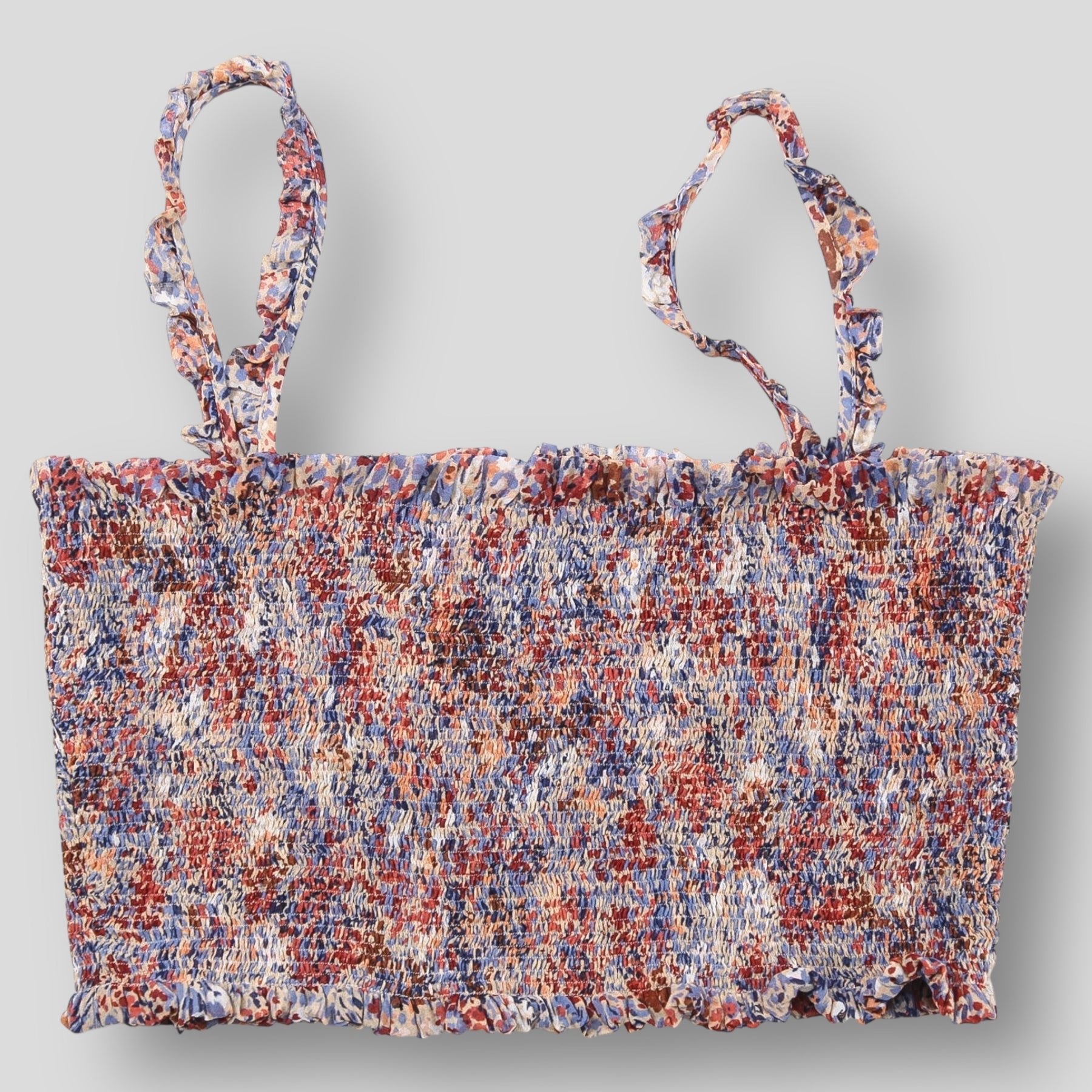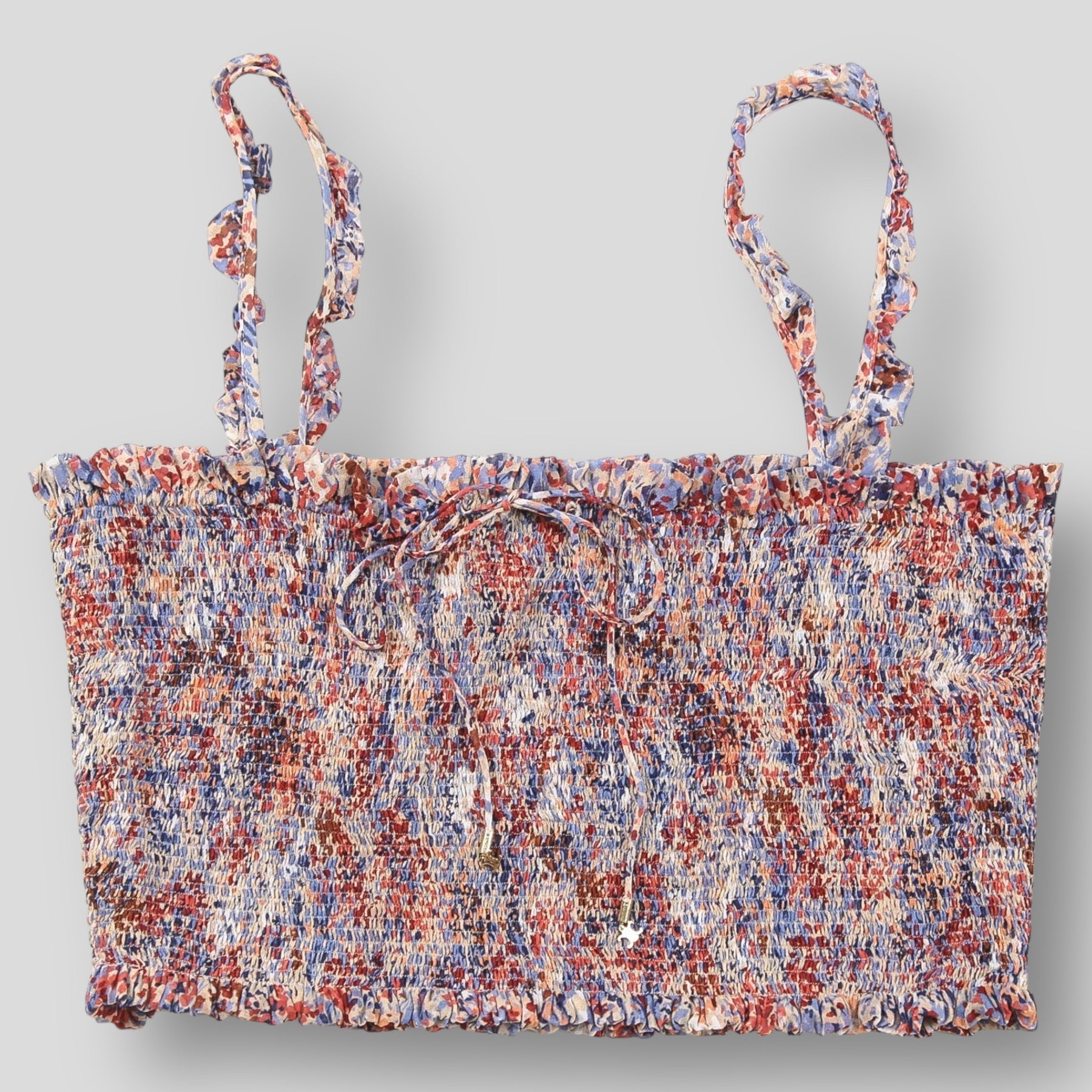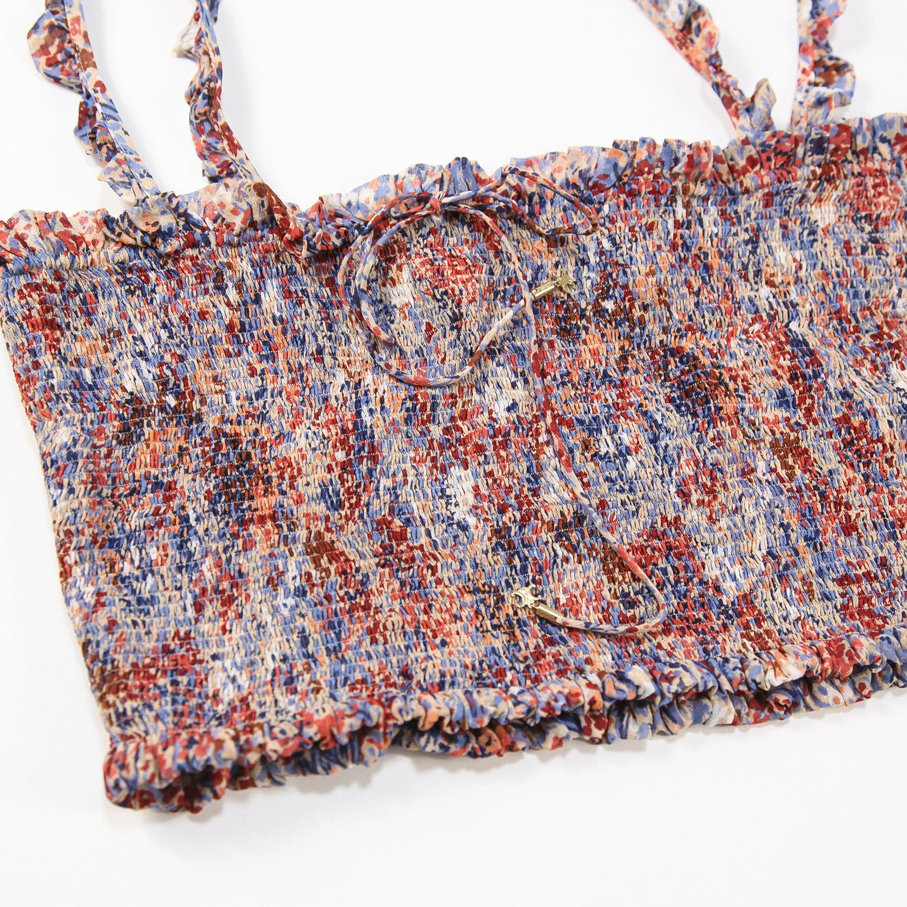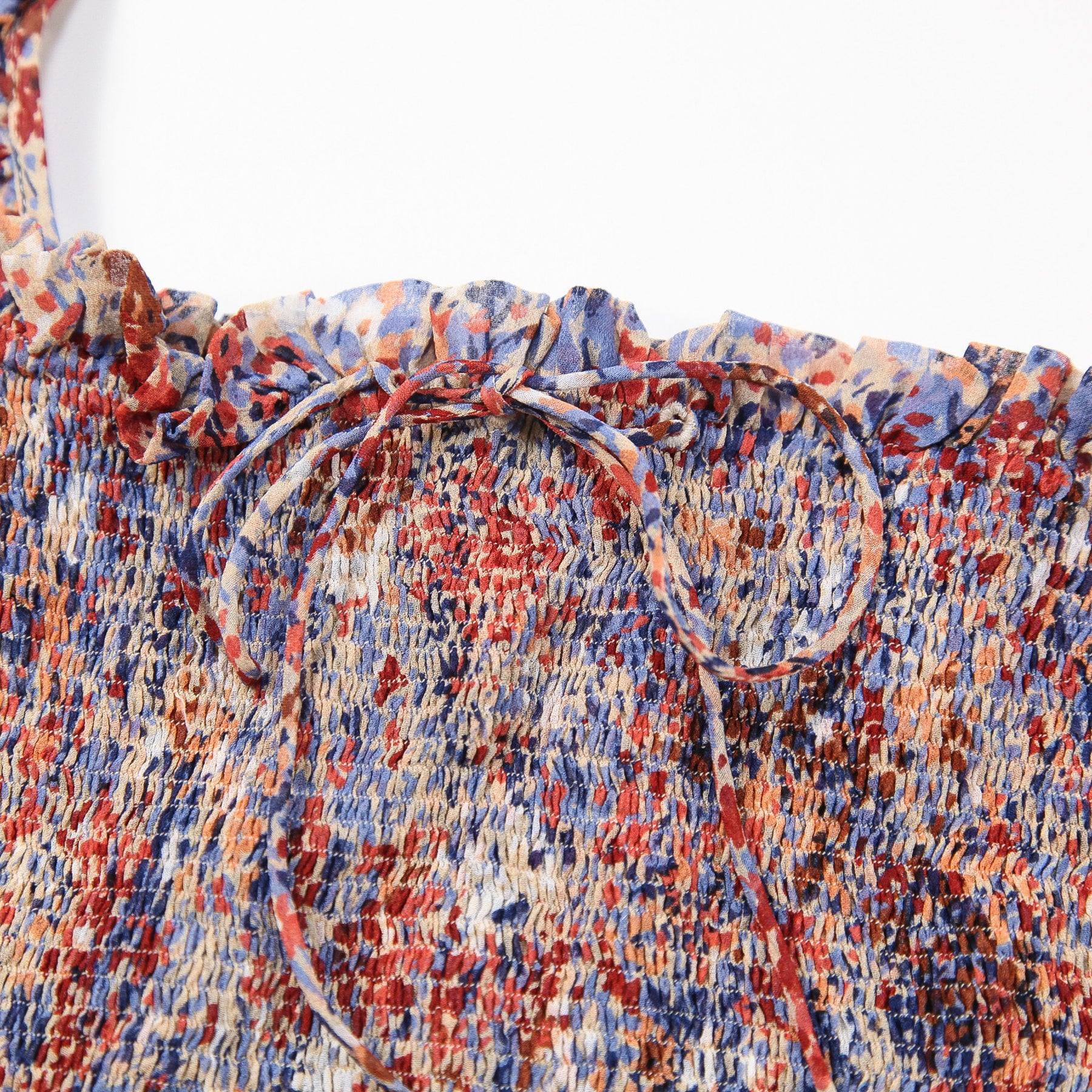 全体をシャーリングにして伸縮性を持たせた、スモッククロップトップ。
