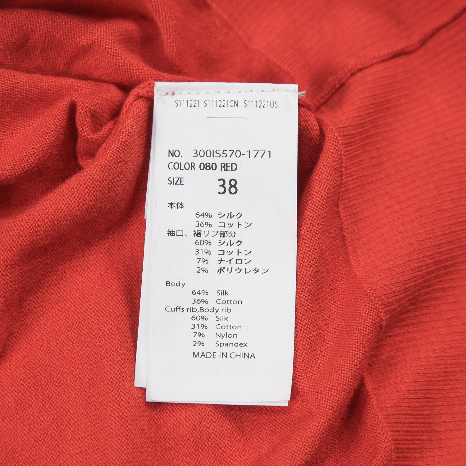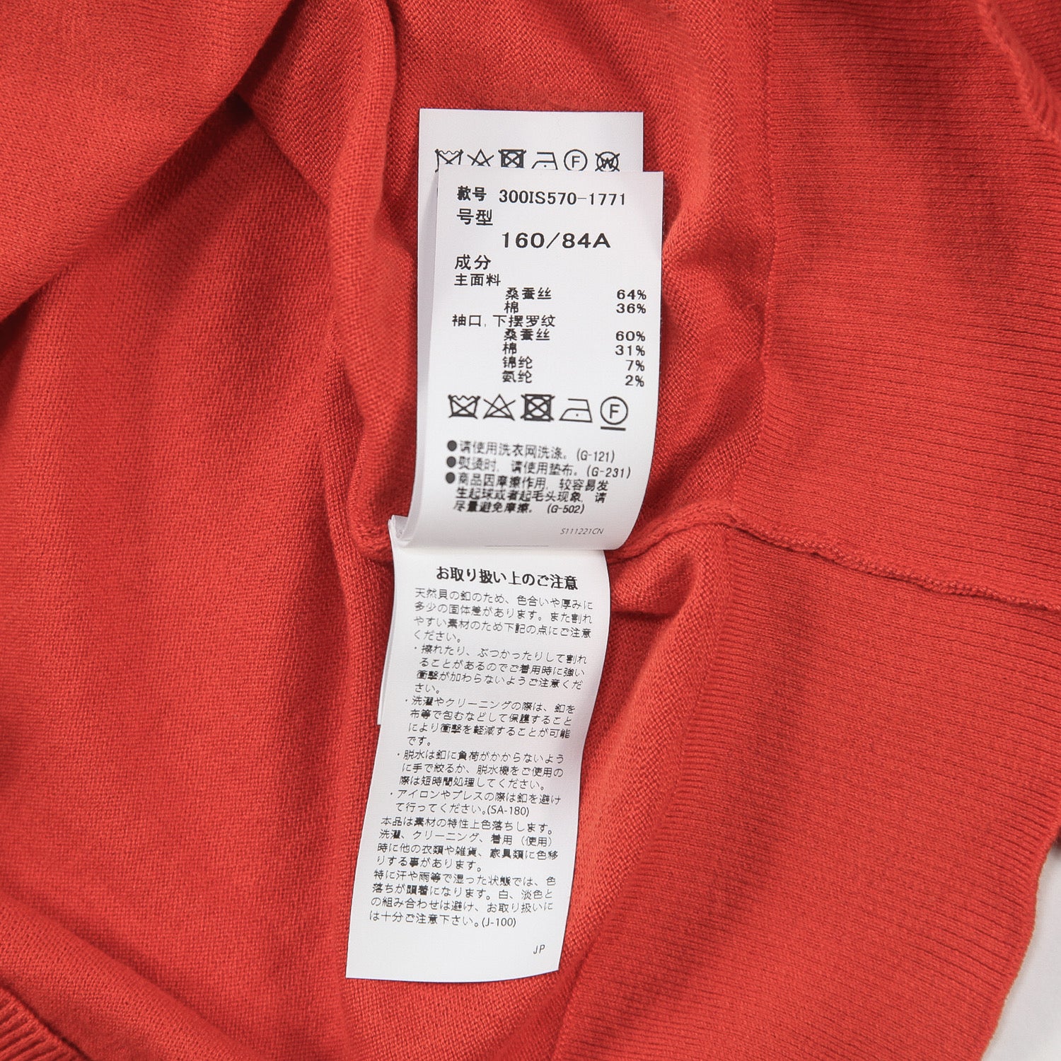 袖口、裾リブ部分 シルク60% コットン31% ナイロン7% ポリウレタン2%