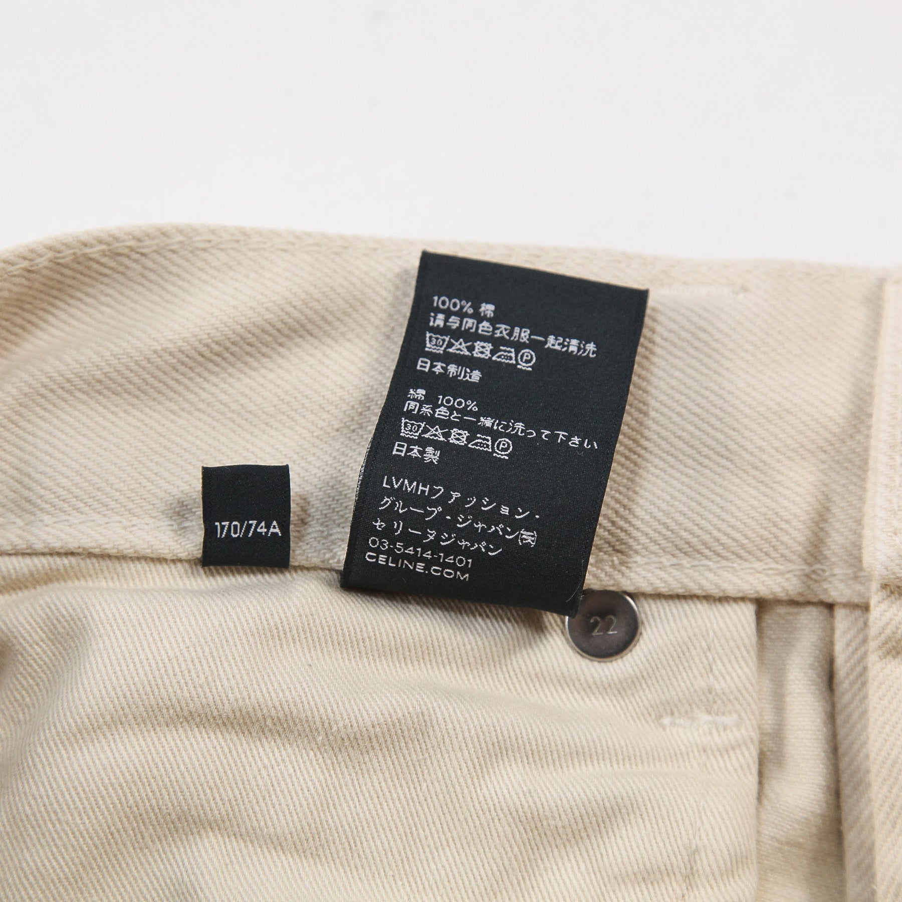 フロントポケットのリベットやウエスト背面のパッチ、「CELINE JEANS」の刻印入りジッパーとボタンなど、細部まで拘り抜かれた仕上がり。