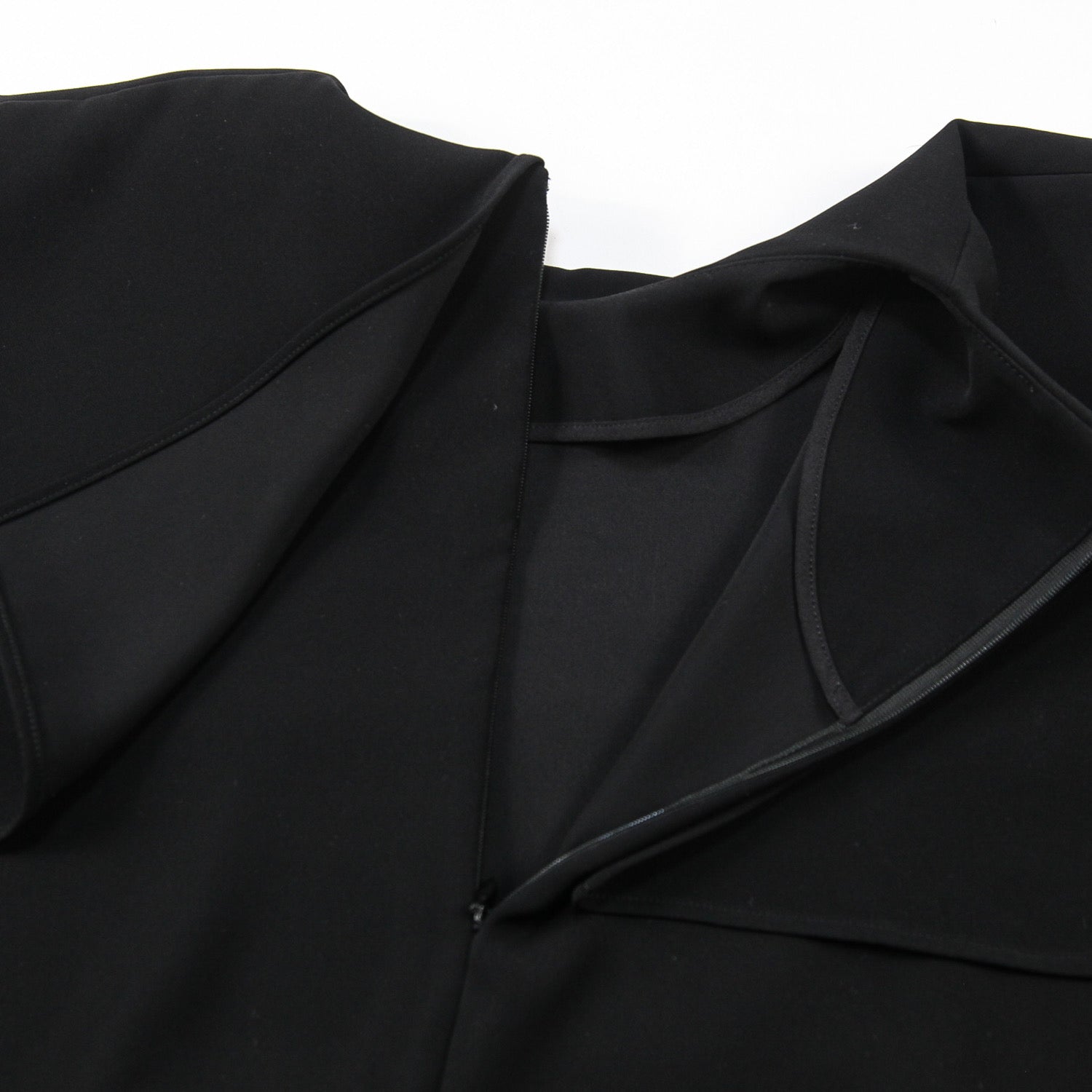 着用時のドレープにより独特な膨らみが生まれて体のラインをカバーしてくれ、両サイドは丈が短くなっているので、パンツとのレイヤードでも素敵です。