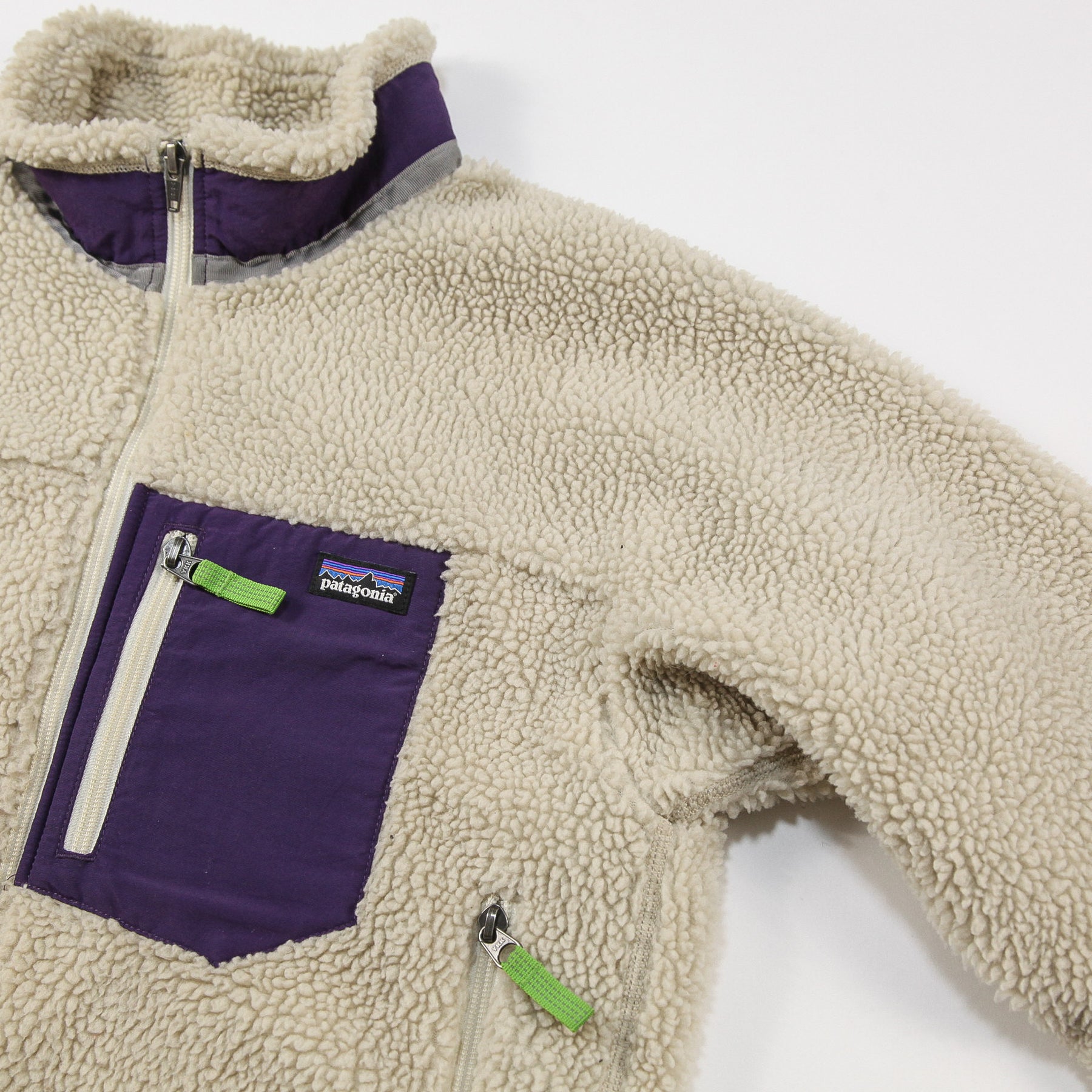 しなやかなポリエステル100%(リサイクル・ポリエステル70%)の6ミリ厚パイル・フリースの内側に、防風効果のあるポリエステルの裏地を施したキッズ用のレトロX・ジャケットです。