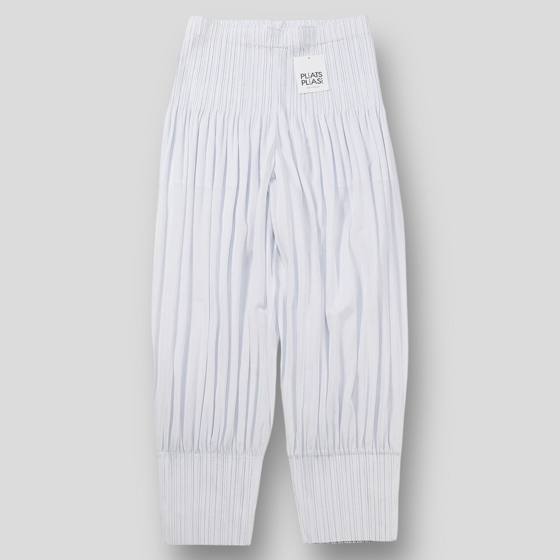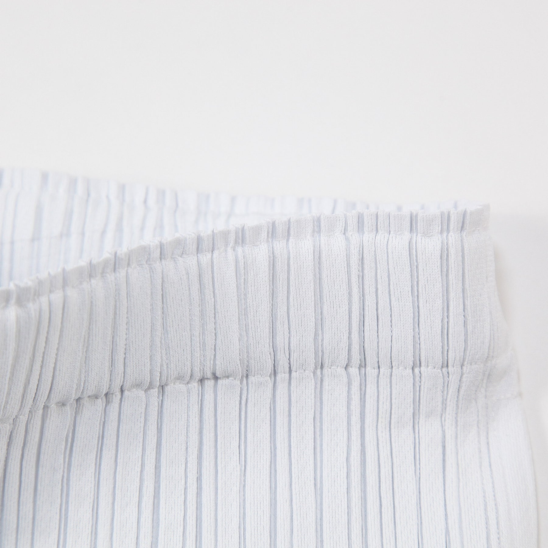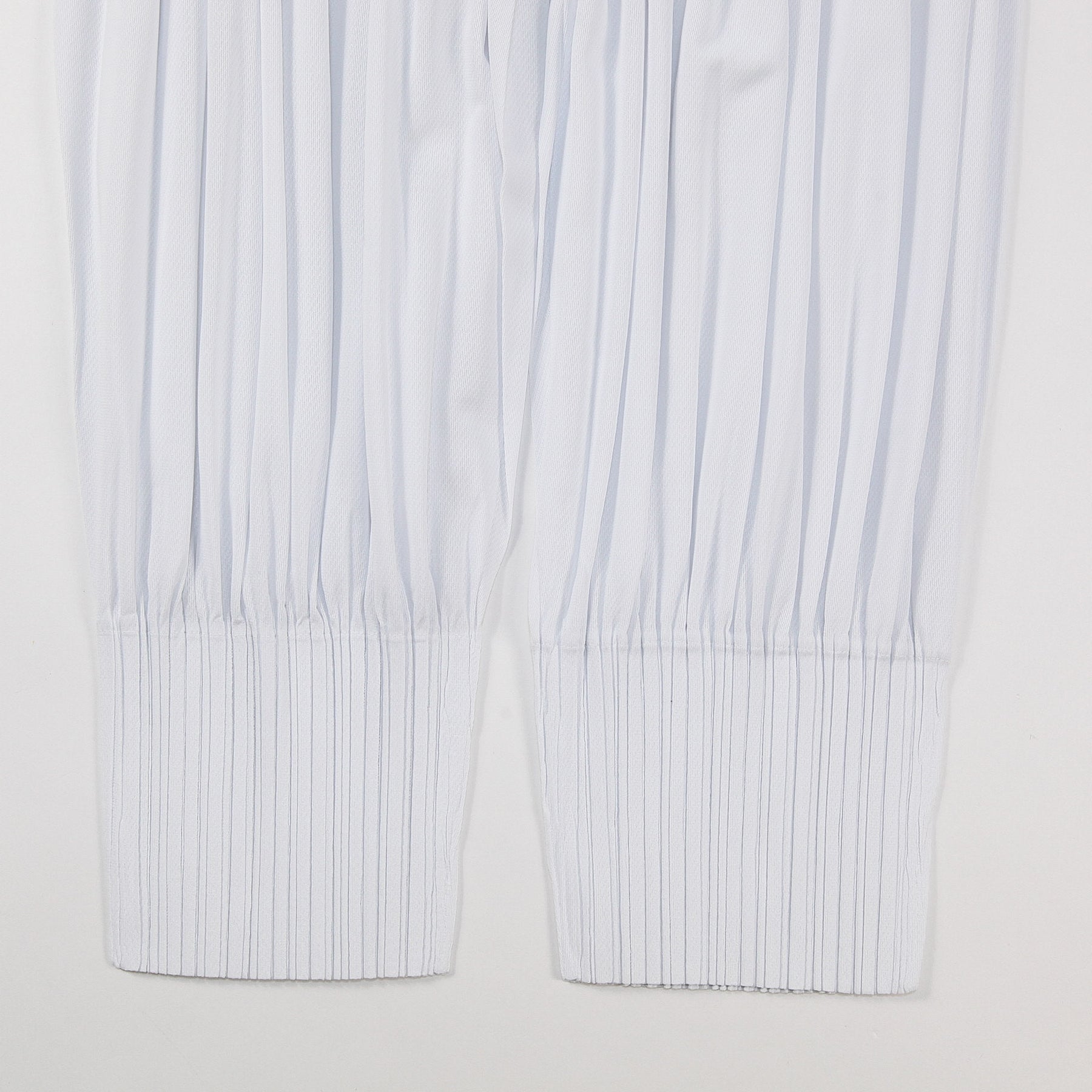 ウエストや太もも、裾に異なるリブプリーツを配したOPAQUE BOTTOMS。