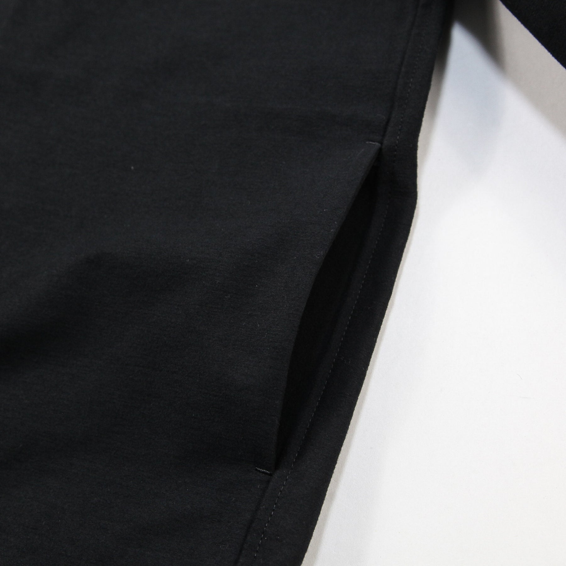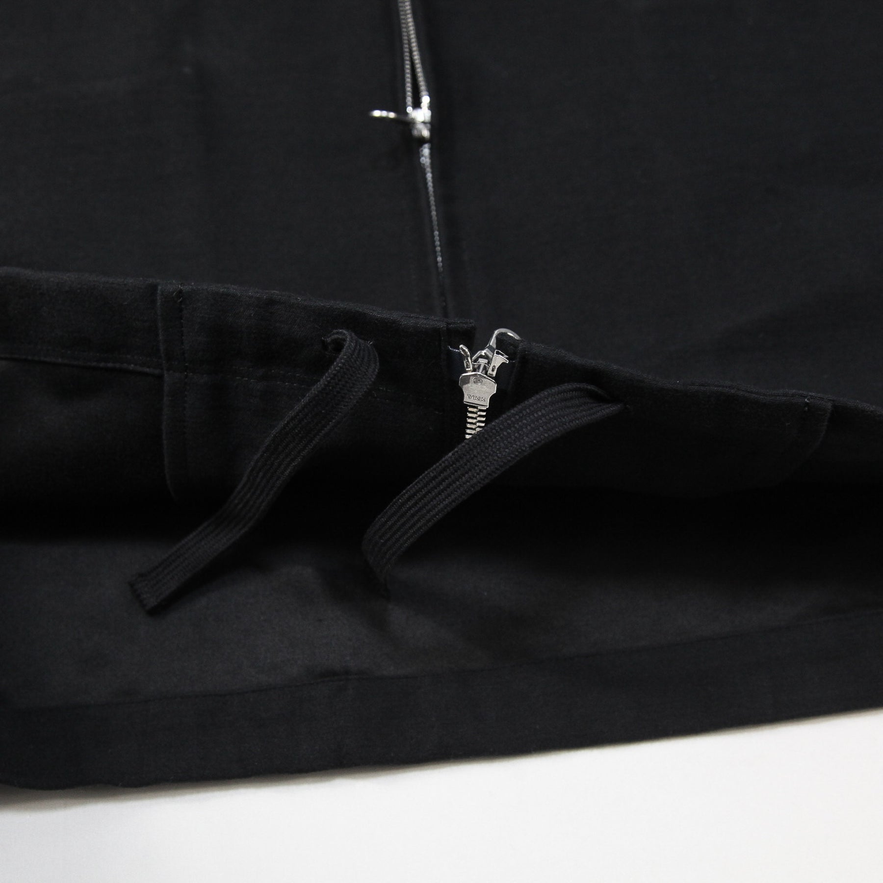 身幅を広くとったリラックス感のあるシルエットで、フロントはダブルジップでサイドにはポケットをあしらい、裾中央の裏地にはドローコードを配した拘りのデザイン。