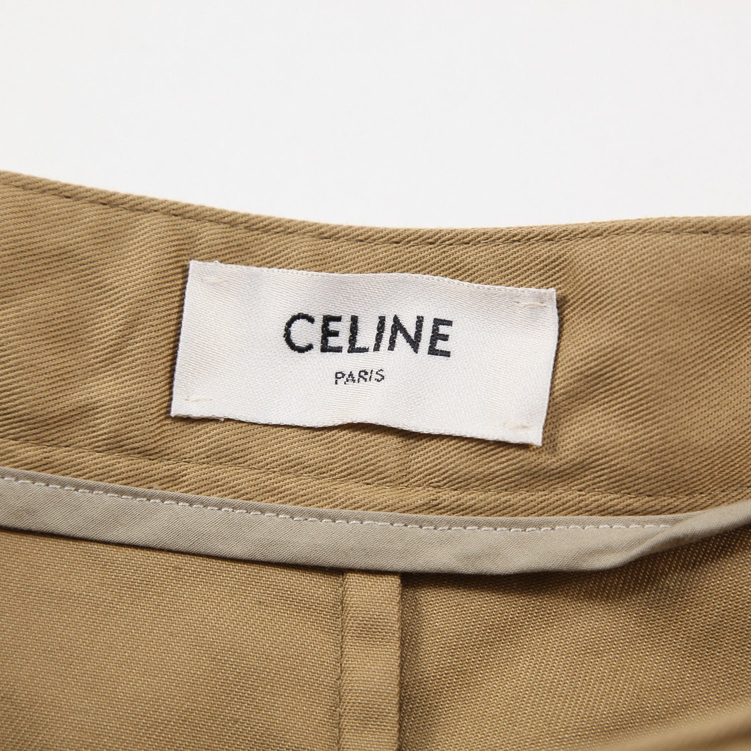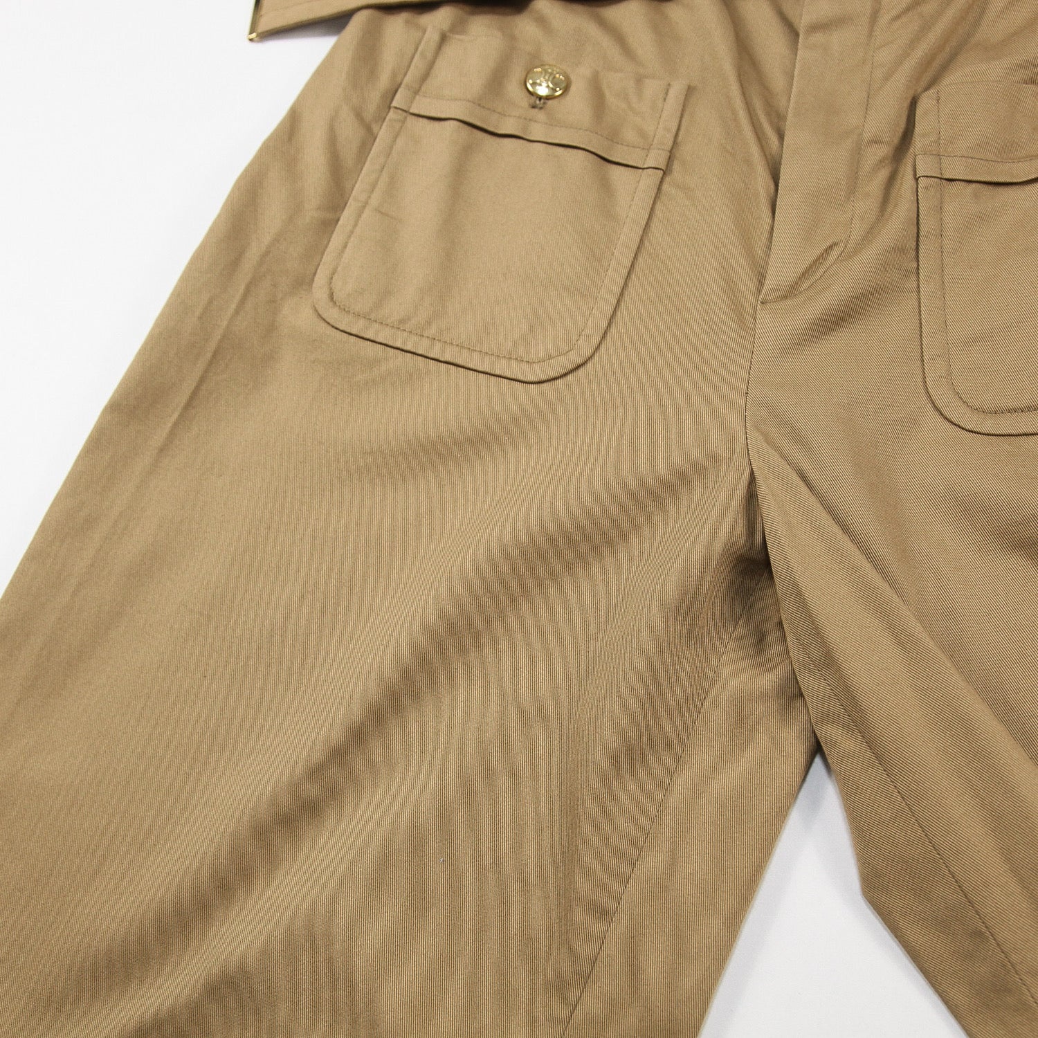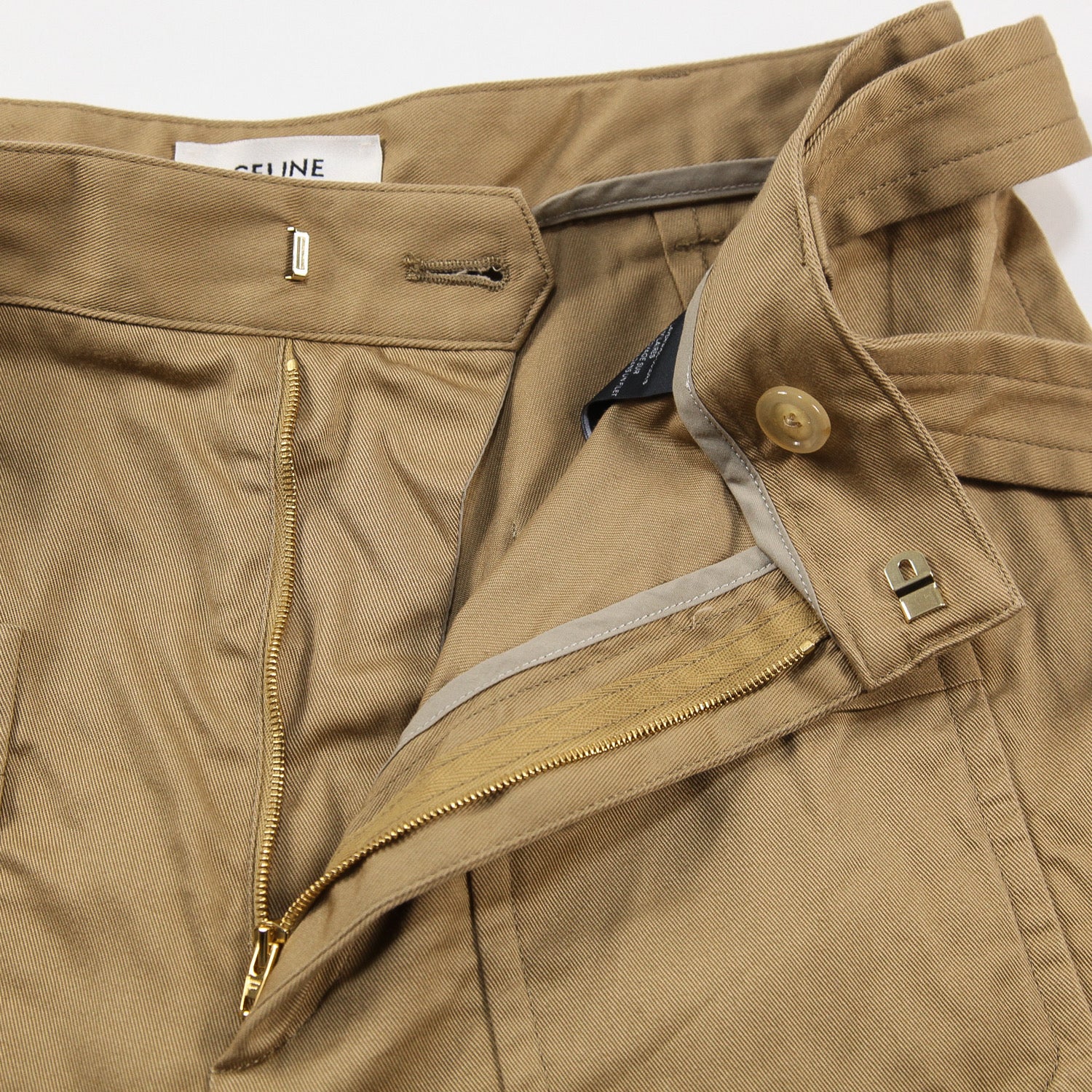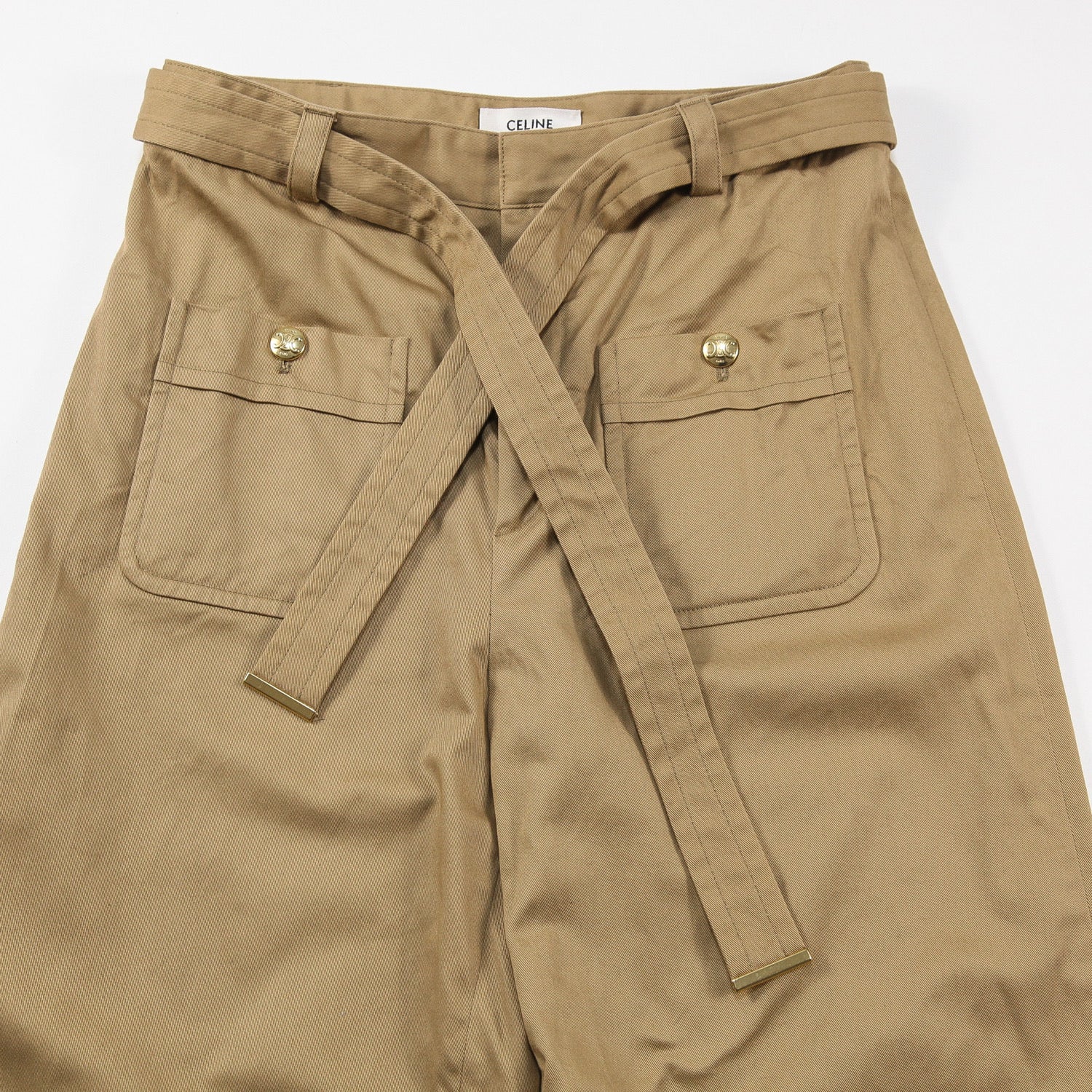フロントに付けられた2つのポケットには、CELINE PARISのロゴとトリオンフがあしらわれた金ボタンが配されています。