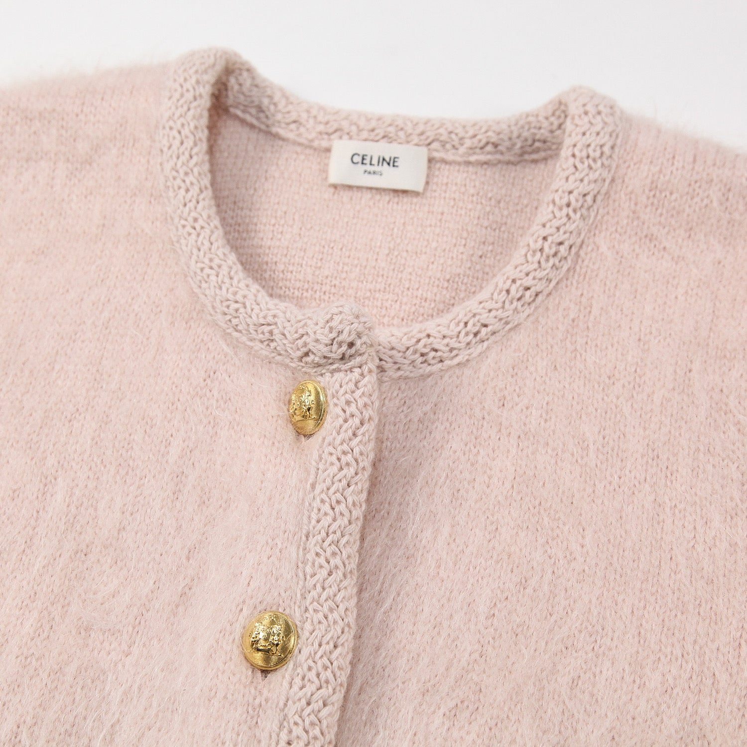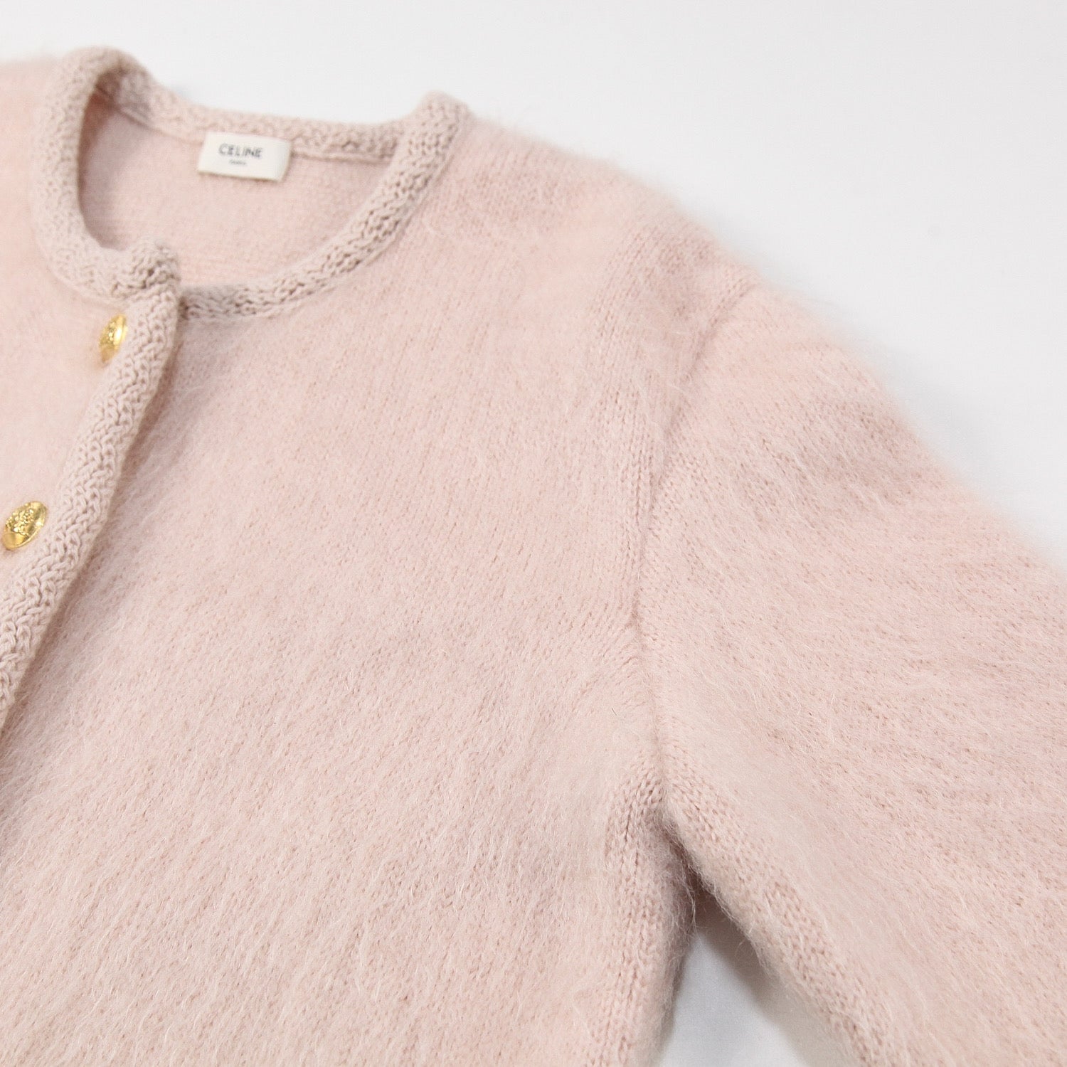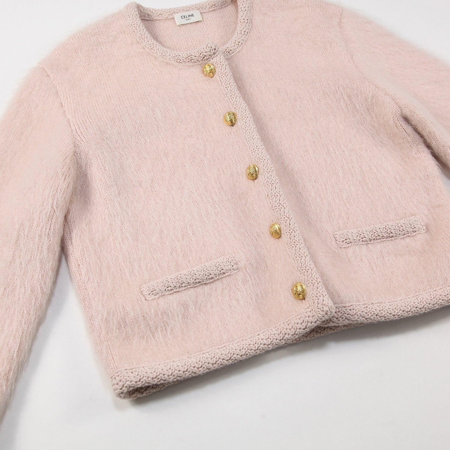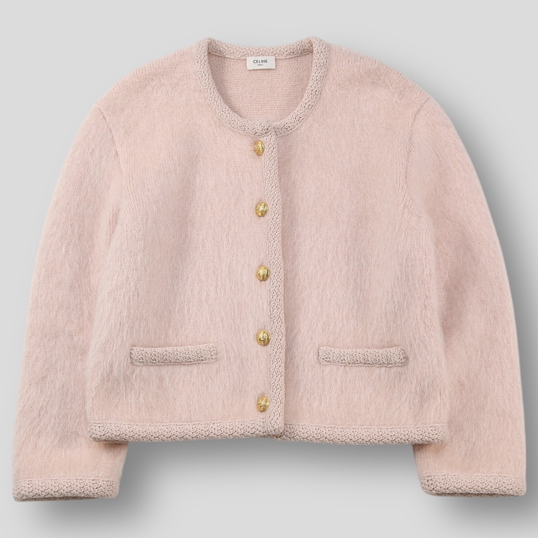 上質なブラッシュドモヘア素材を使用した、CELINE by Hedi Slimaneのコレクションでも人気の高いノーカラーデザインのカーディガンジャケット。