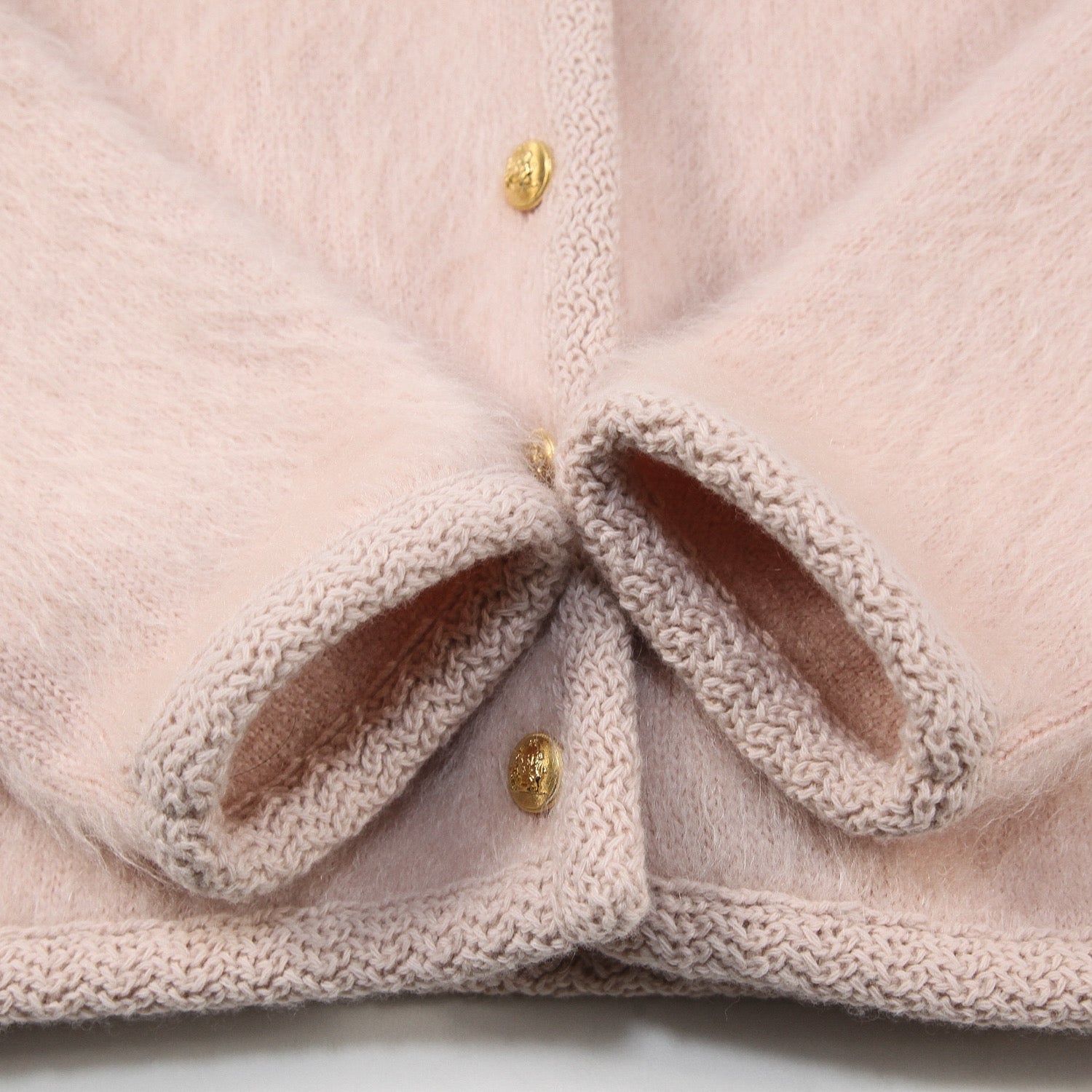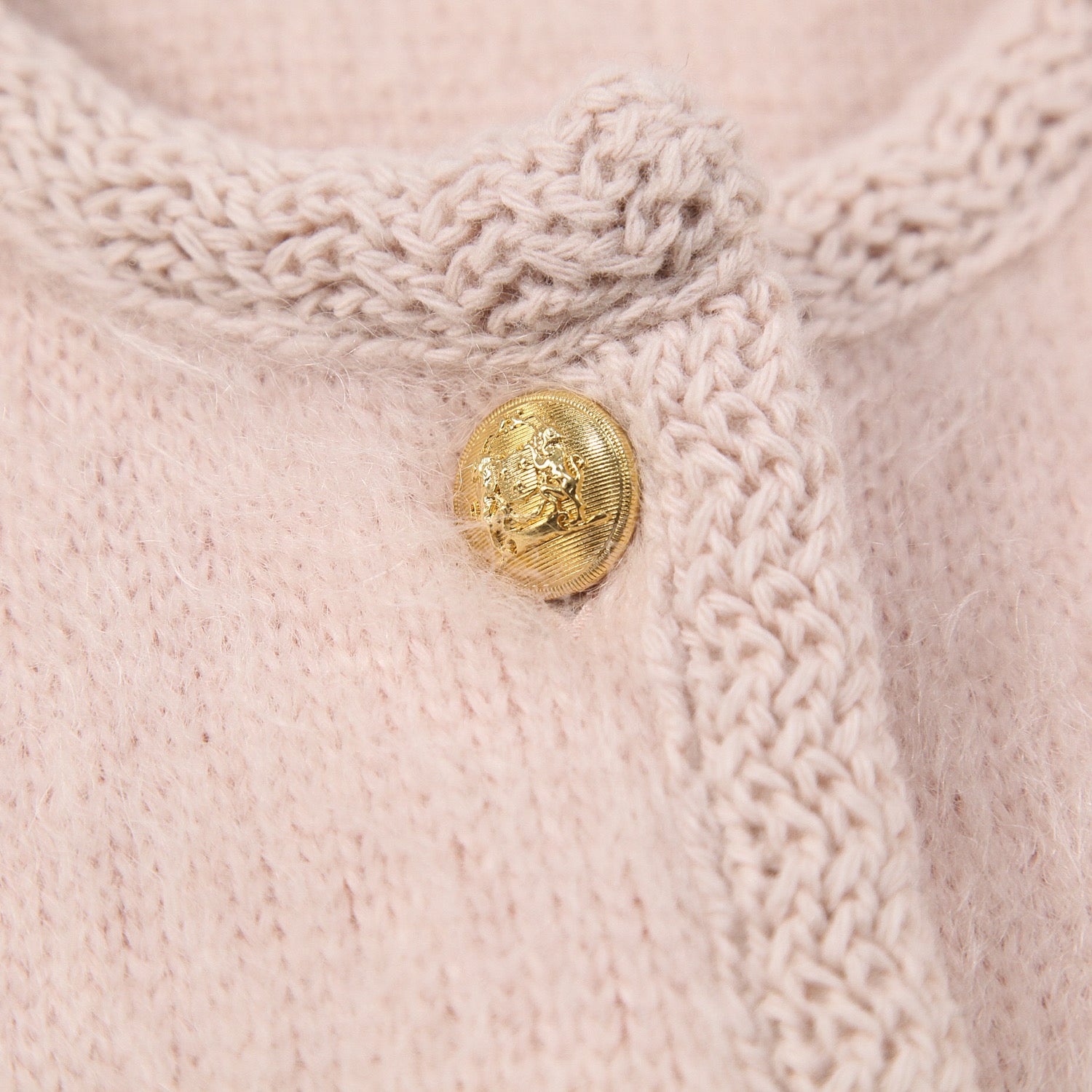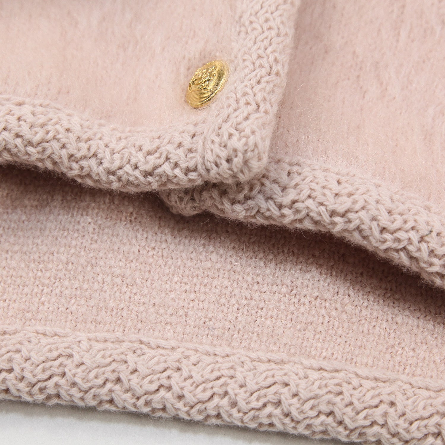 フロントには「BLASON/ブラゾン」モチーフのゴールドボタンを5つ配したラグジュアリーなデザインで、淡いペールピンクのカラーがスタイルを華やかに演出してくれる一品です。