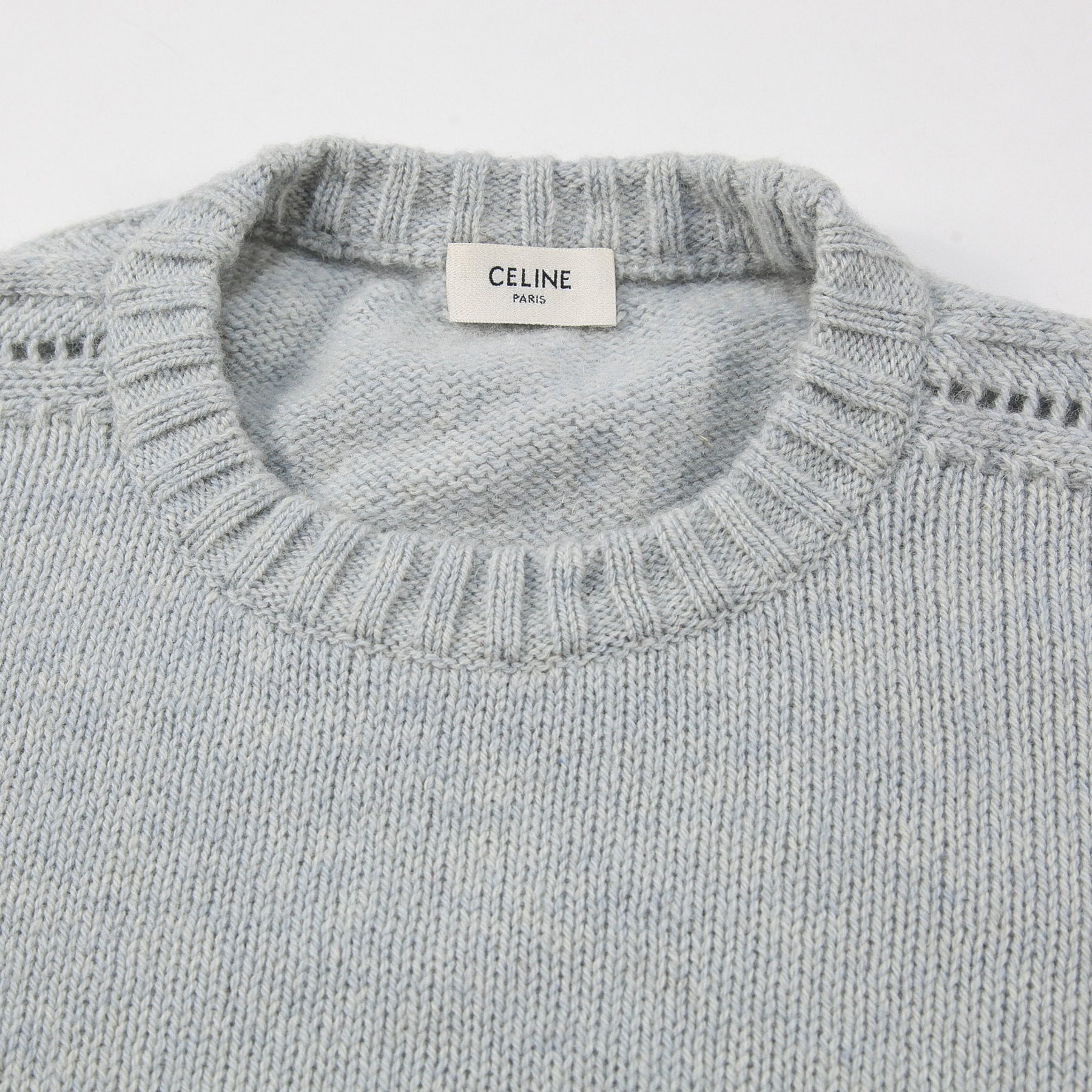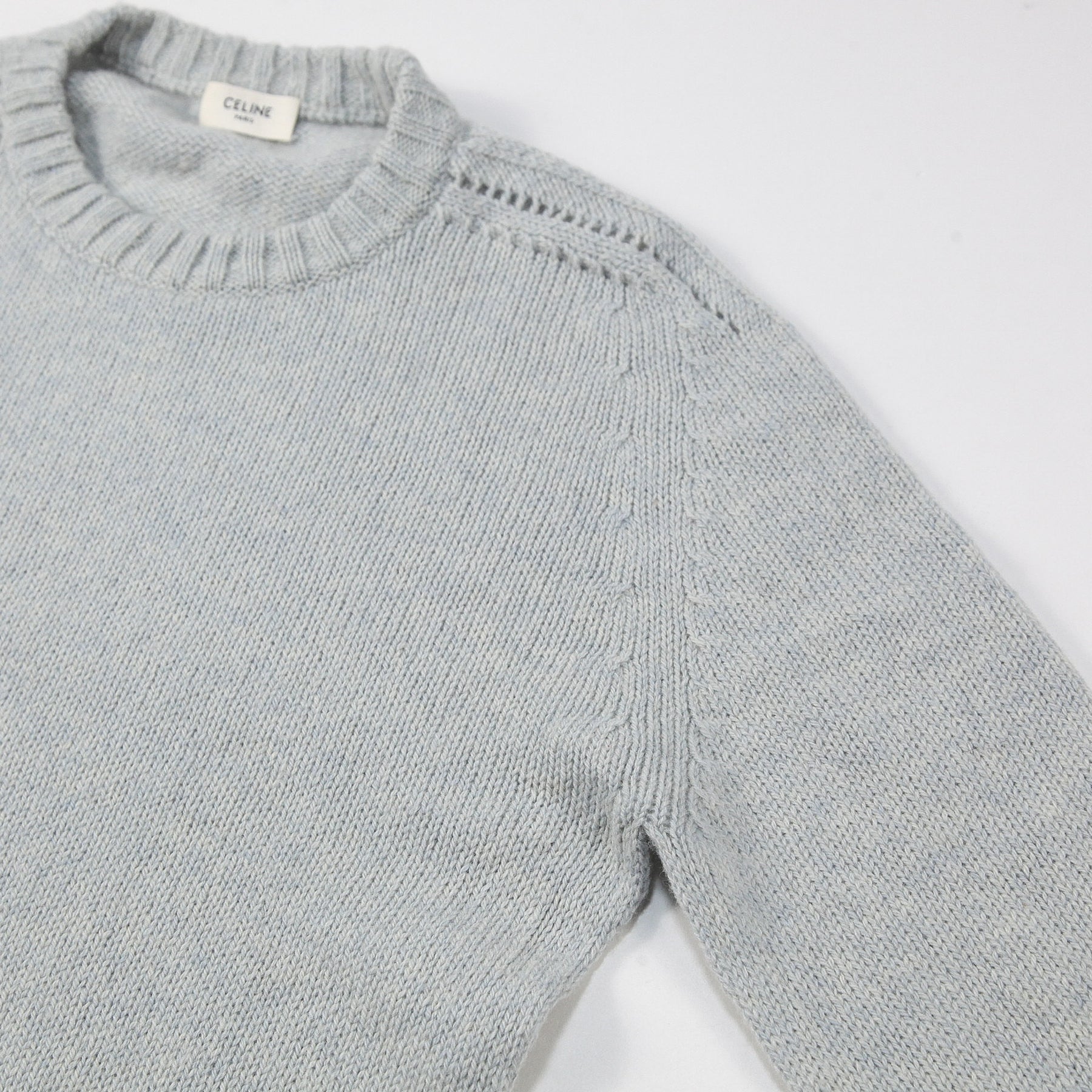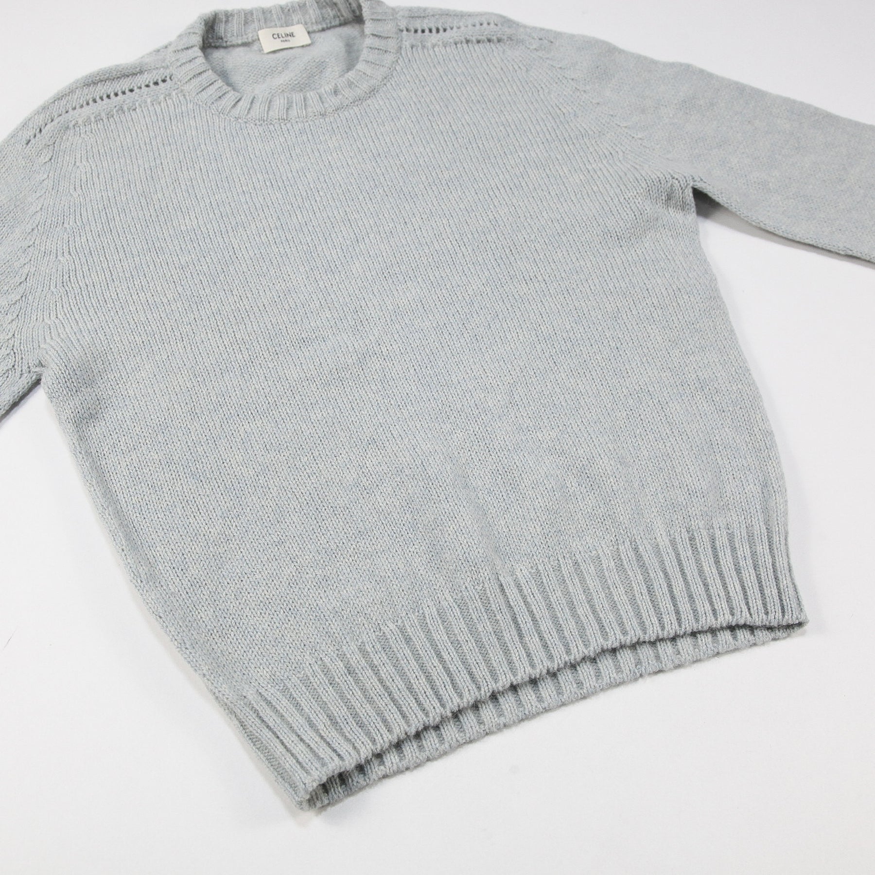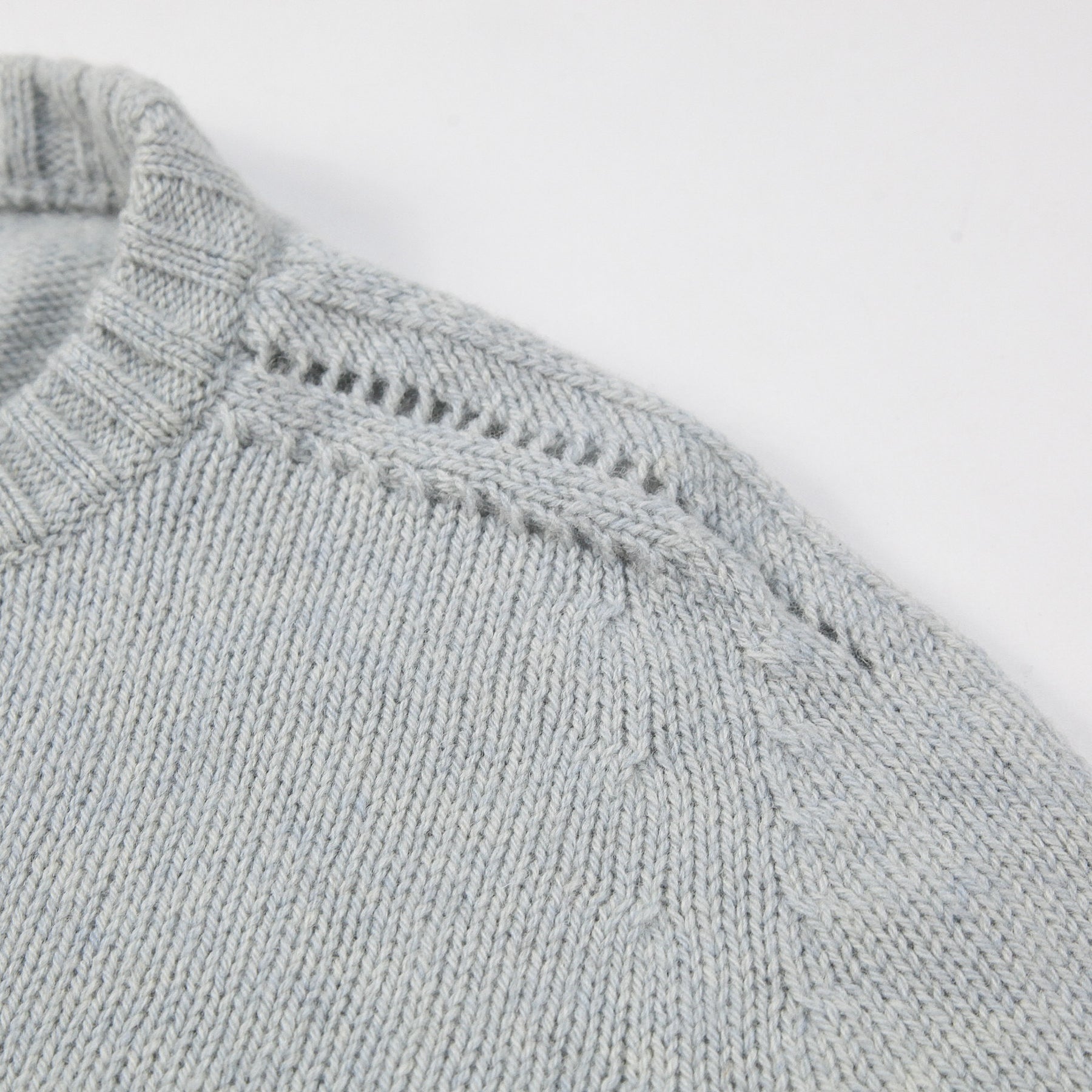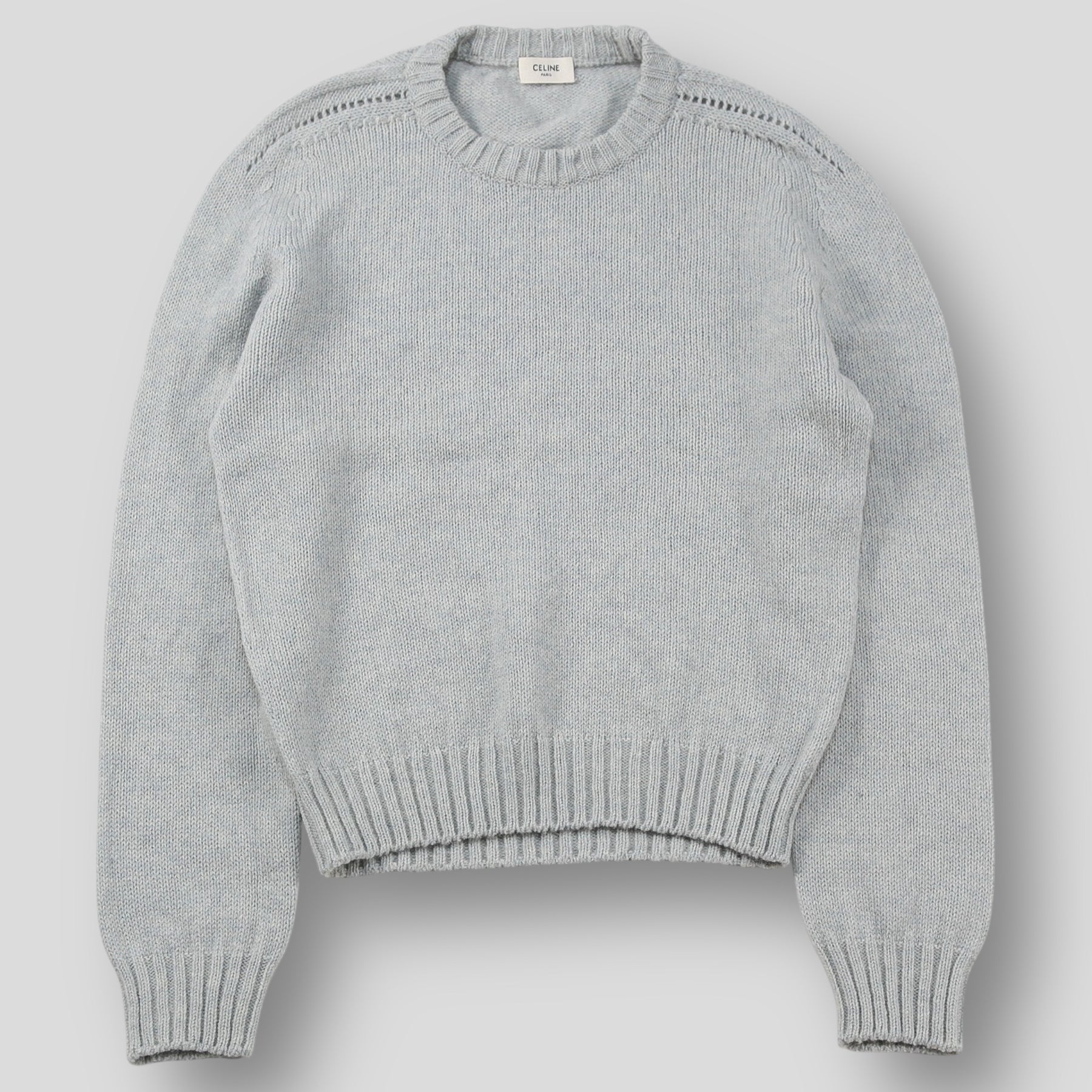 程よくゆとりのあるクラシックフィットを採用しており、肩の透かし編みディテールが特徴的なデザイン。