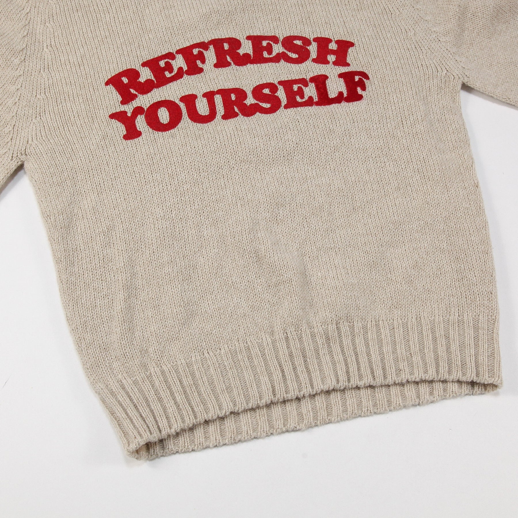 フロントにはフェルト地の「REFRESH YOURSELF」のフロッキーロゴをあしらっており、アクセントになったデザイン。