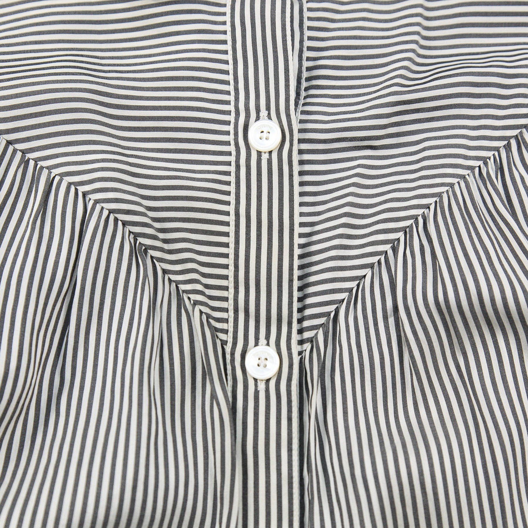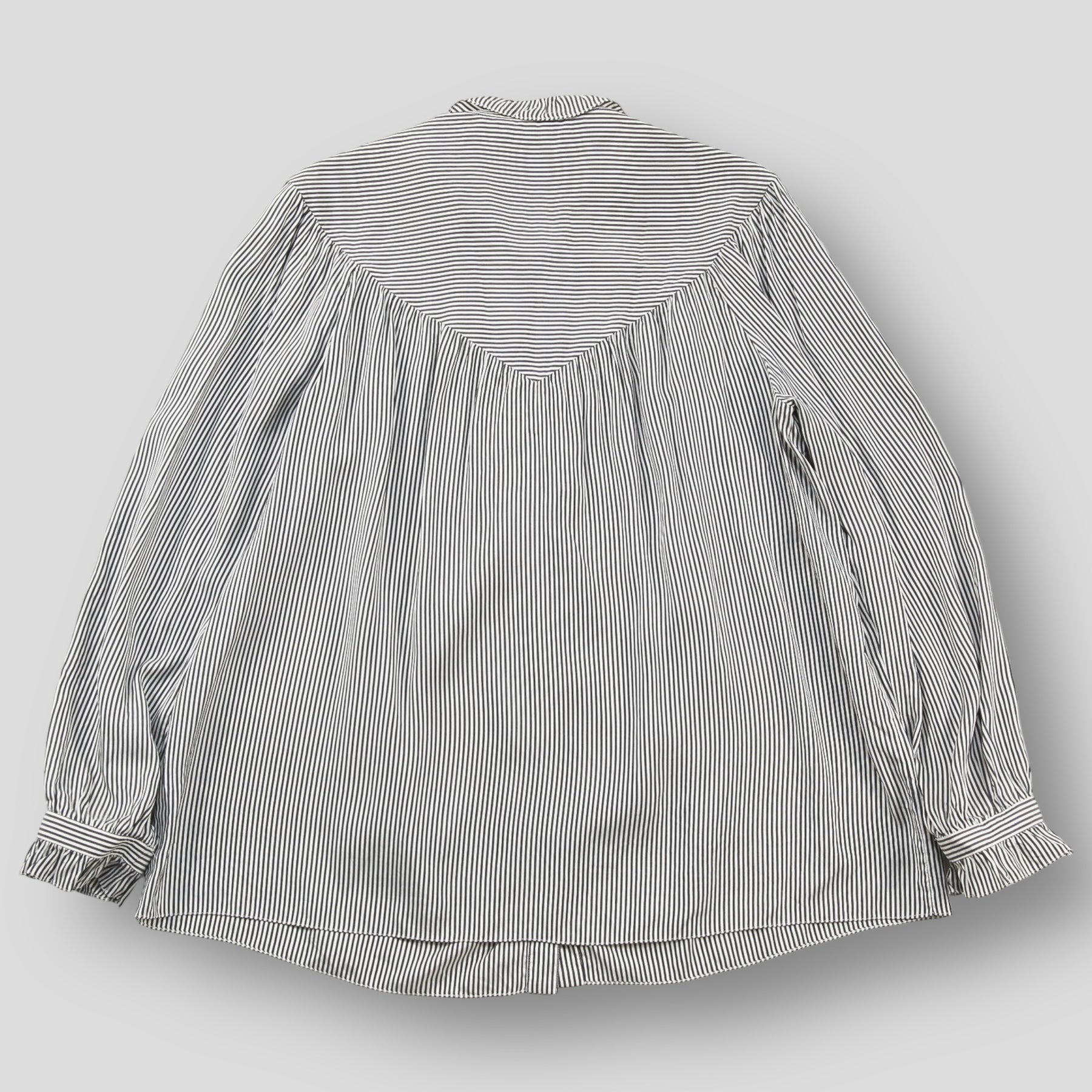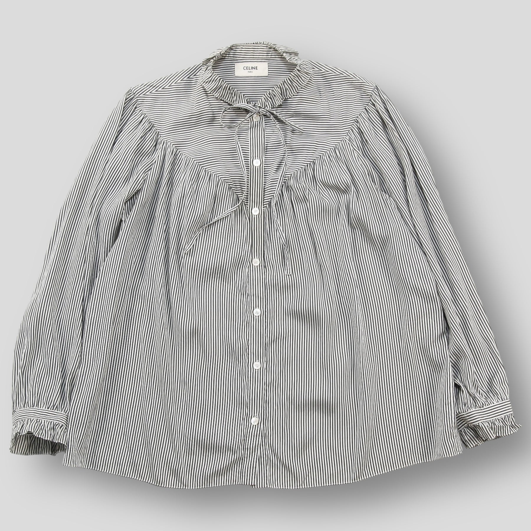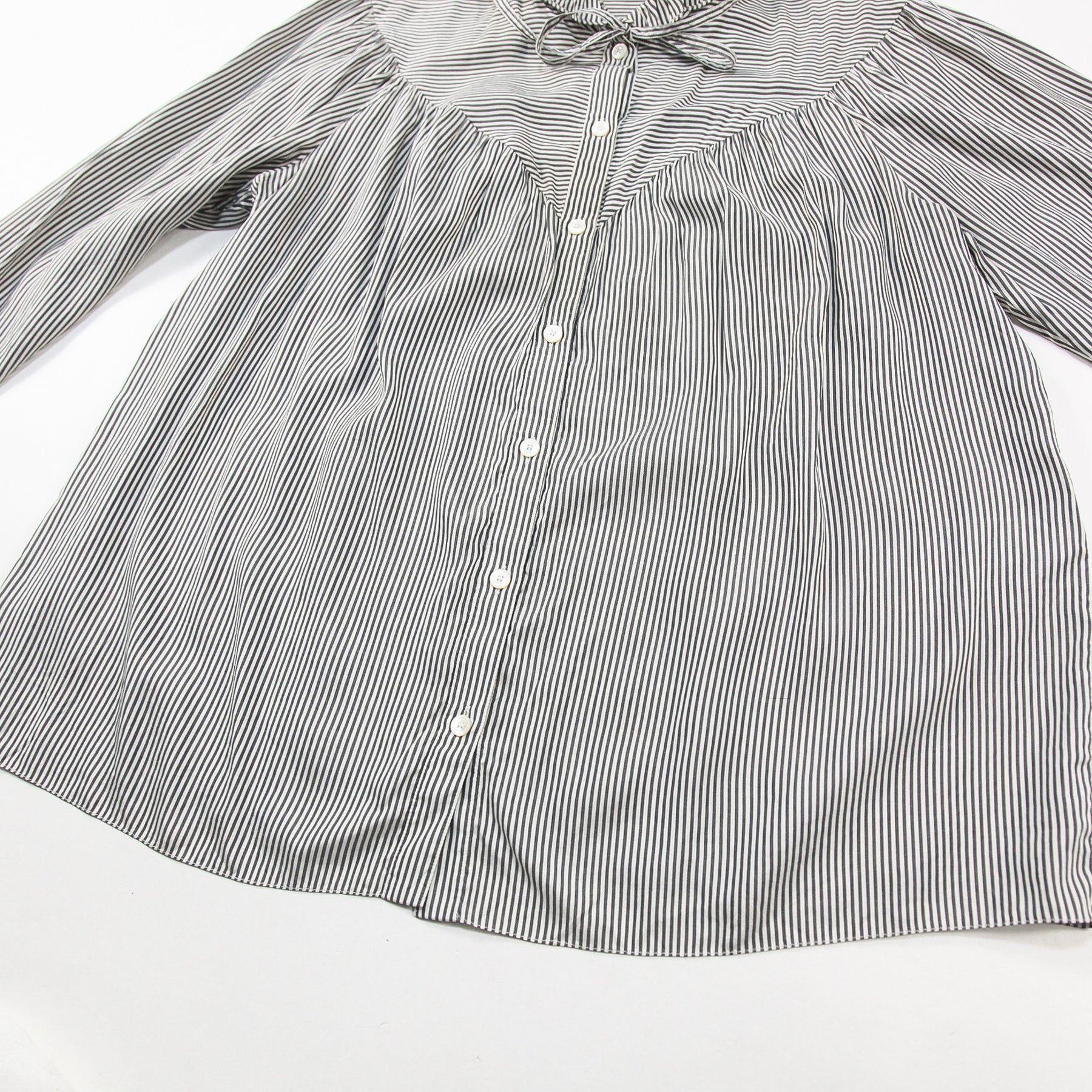 上質なシルクポプリン素材を使用し、程よくゆとりのあるシルエットで仕上げられたストライプブラウス。