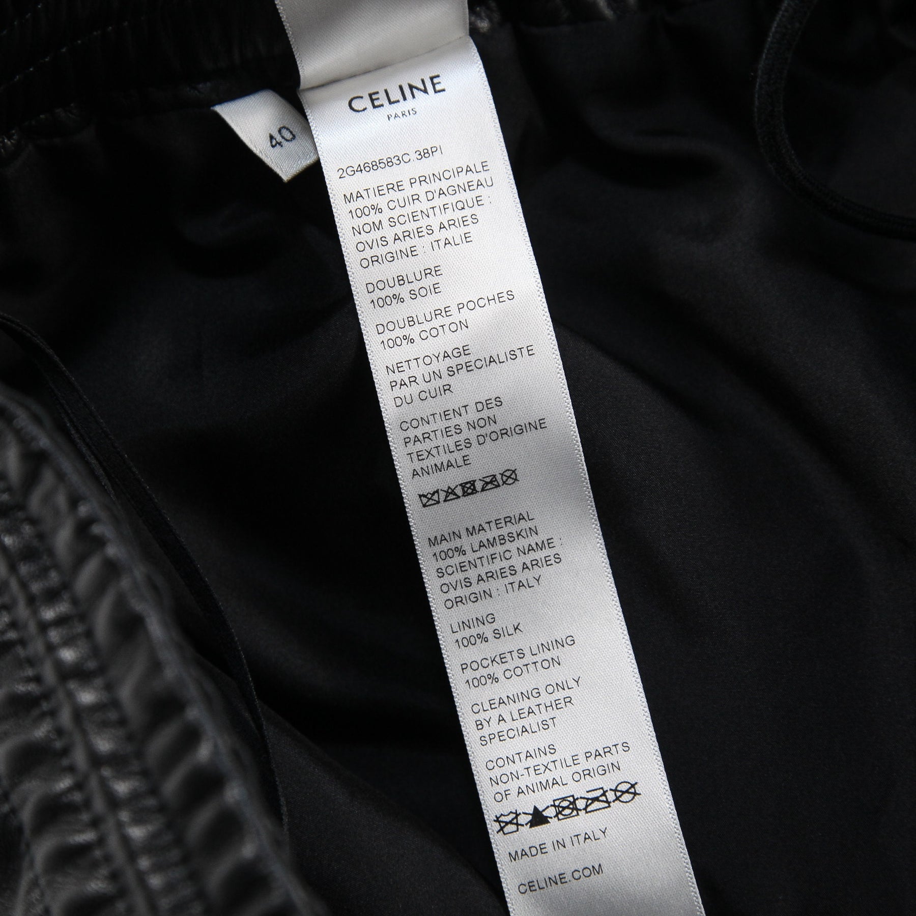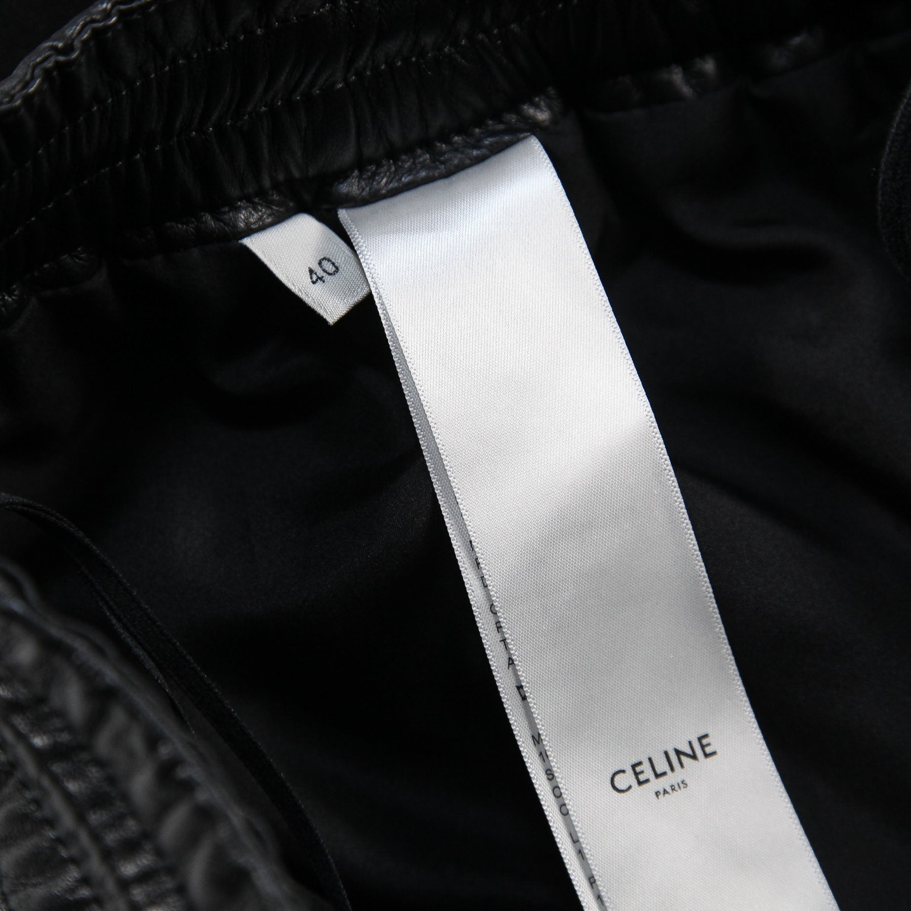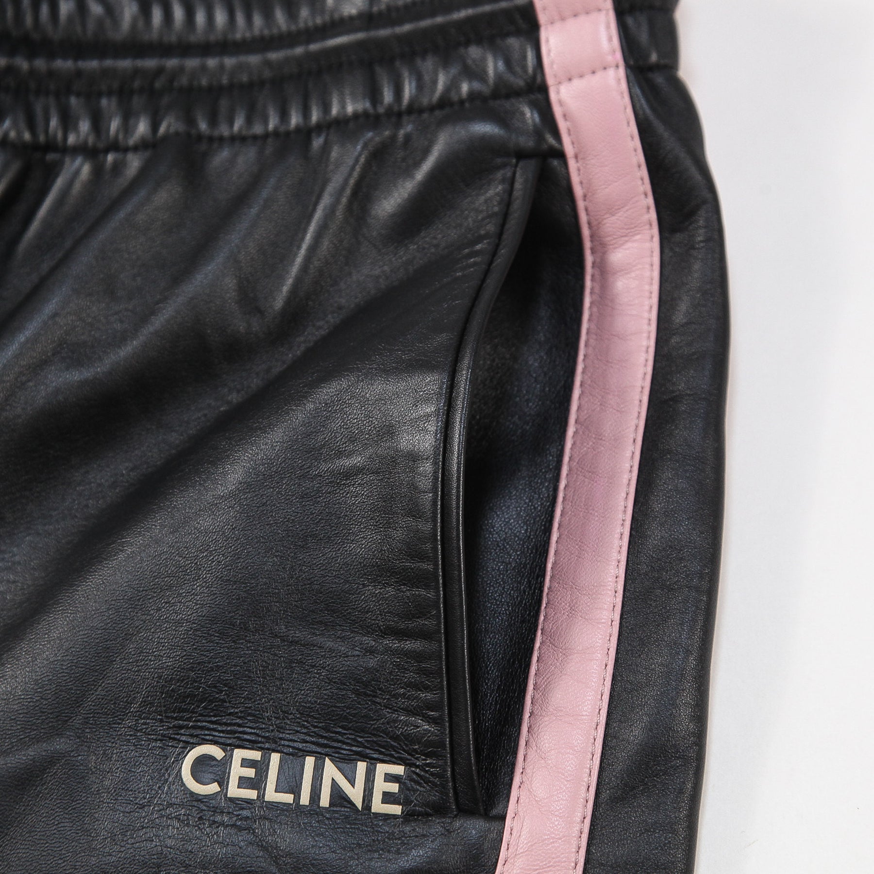 ウエストには調整可能なドローコードを配し、左太もも部分にあしらわれた「CELINE」ロゴがアクセントになっています。