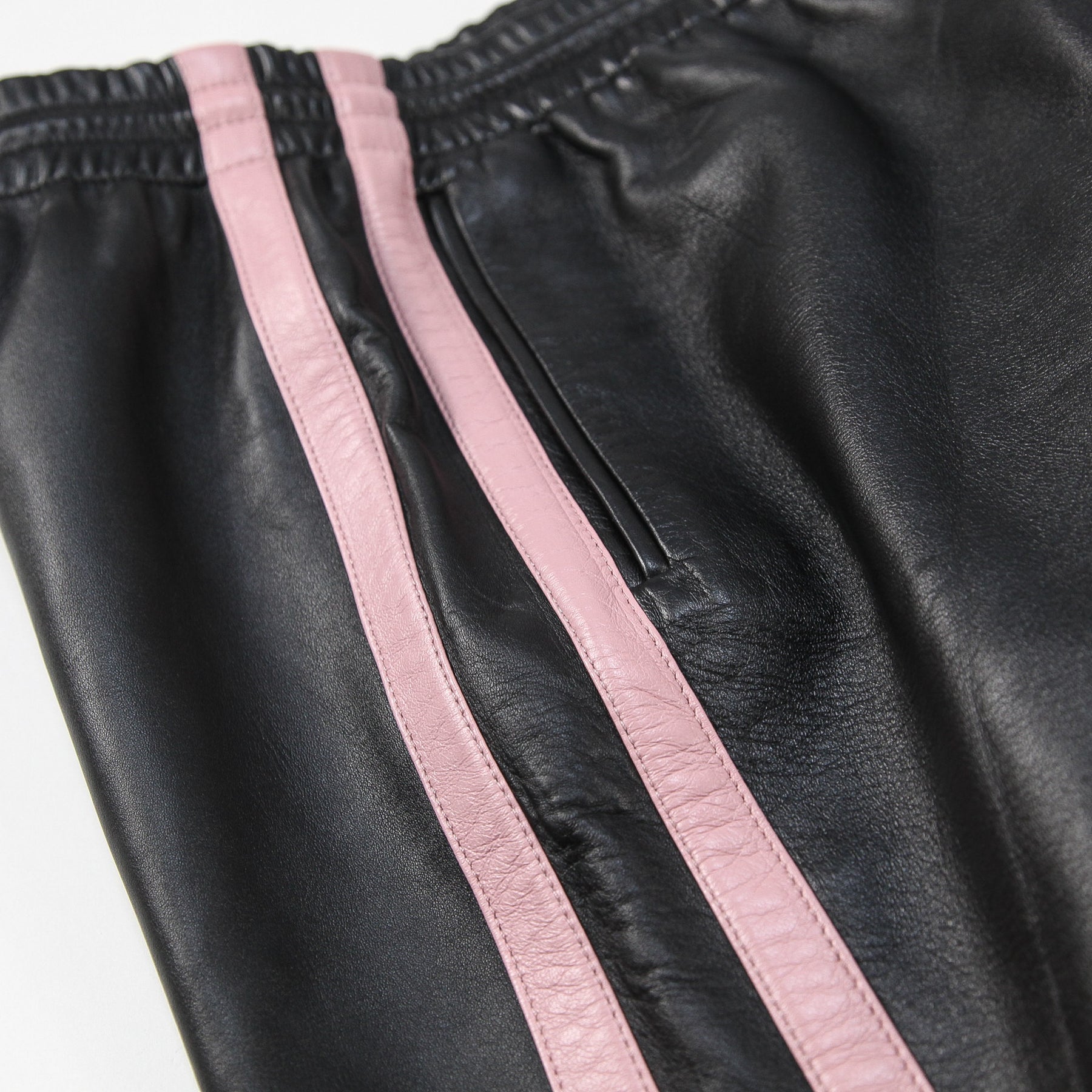 柔らかく上質なソフトラムスキン素材を使用した、トラックスーツパンツ。