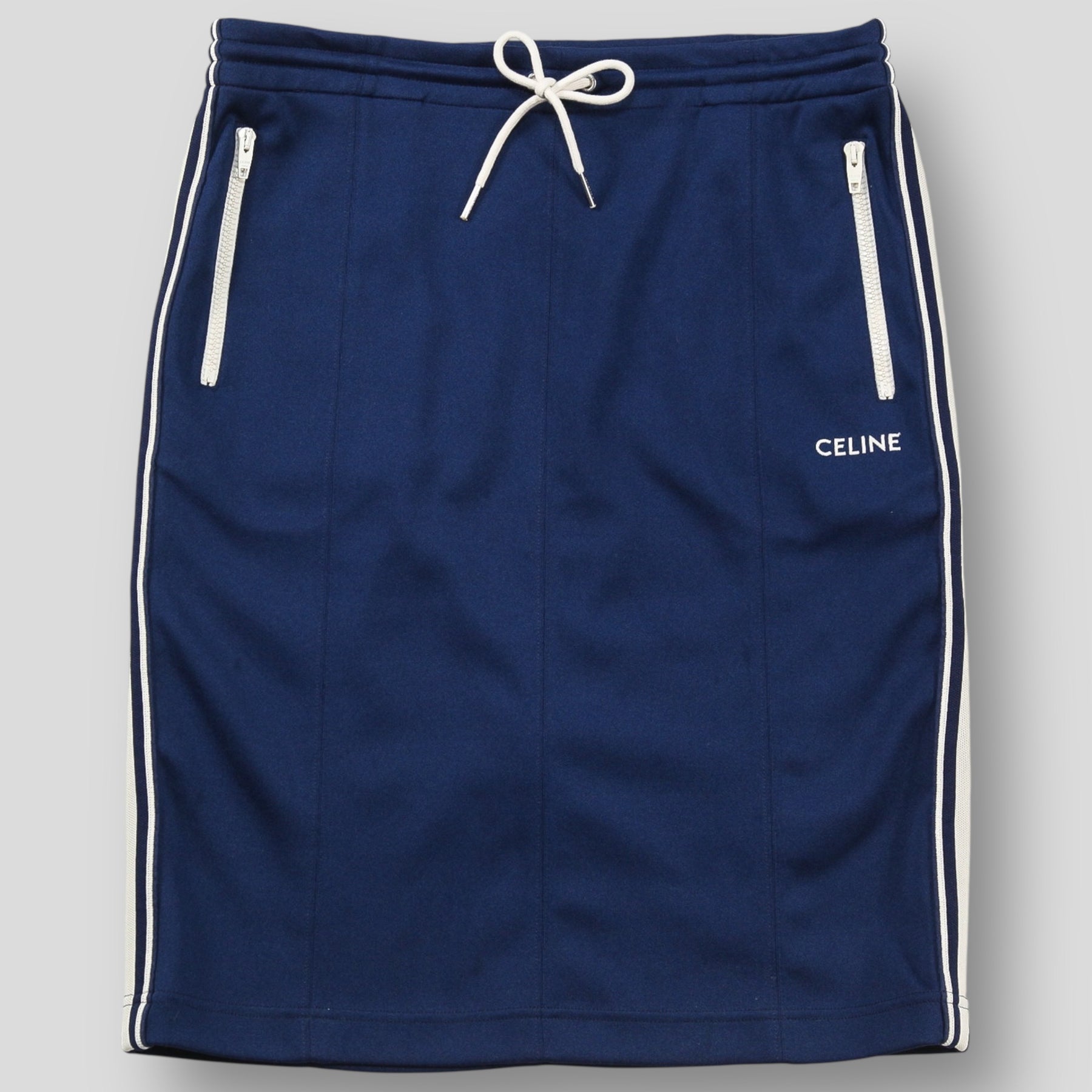 ダブルフェイス地のポリエステルジャージー素材を使用した、スポーティーなトラックスカート。