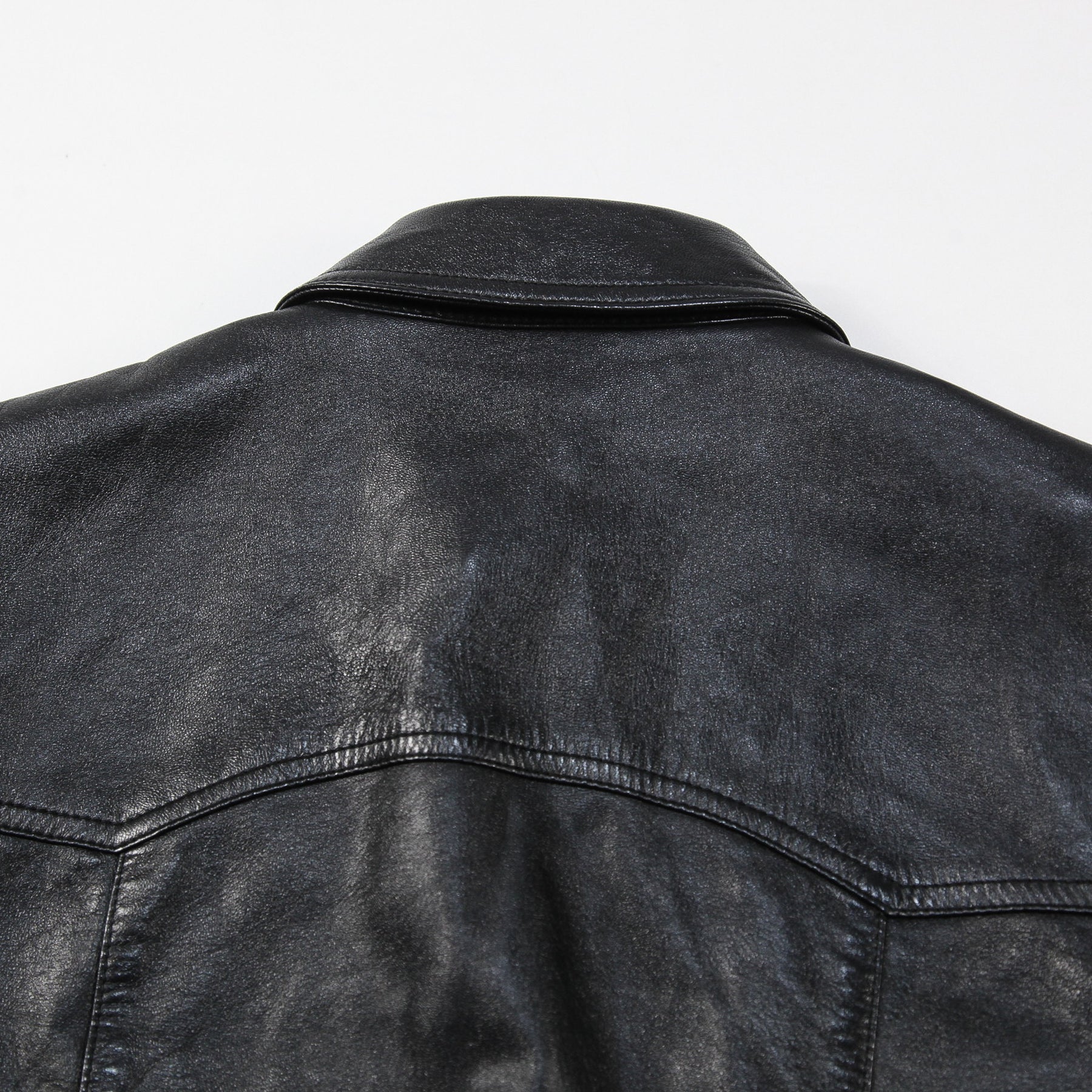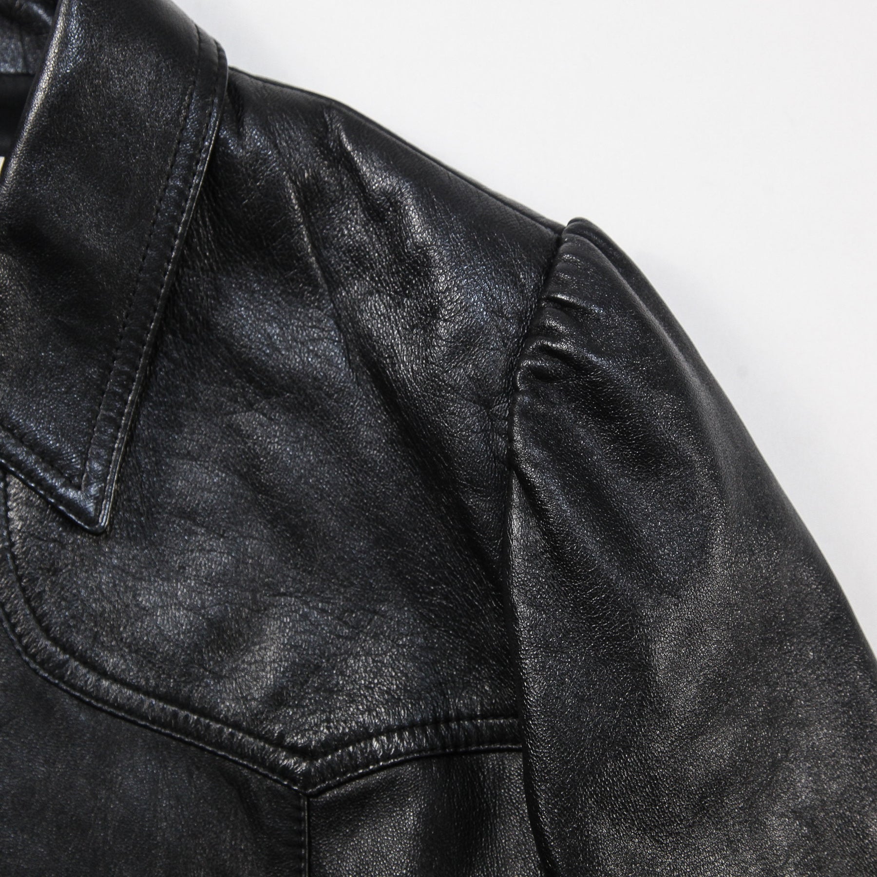 柔らかな手触りと上品な光沢感が特徴のソフトラムスキンを使用した、レザージャケット。