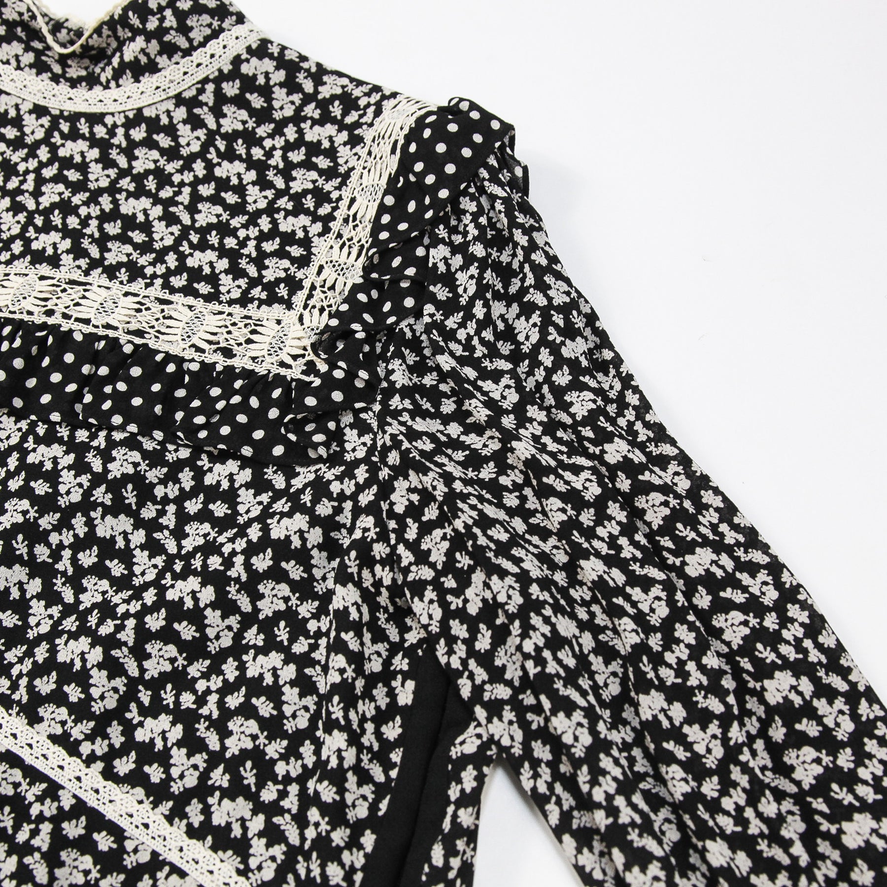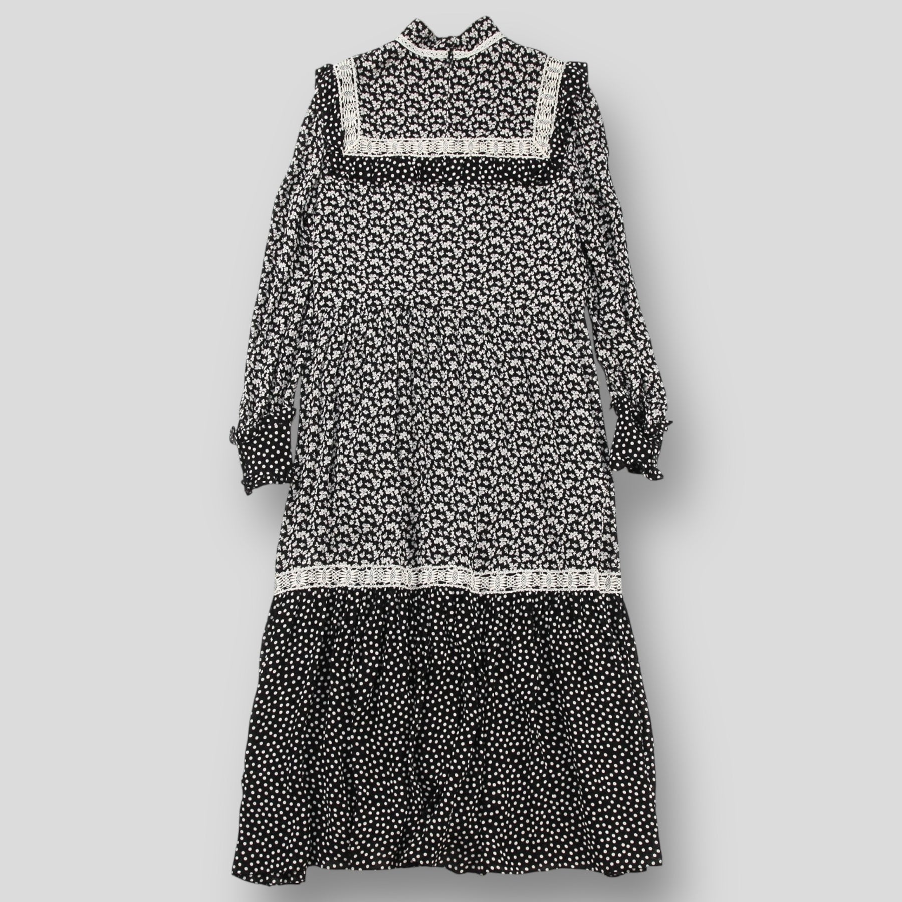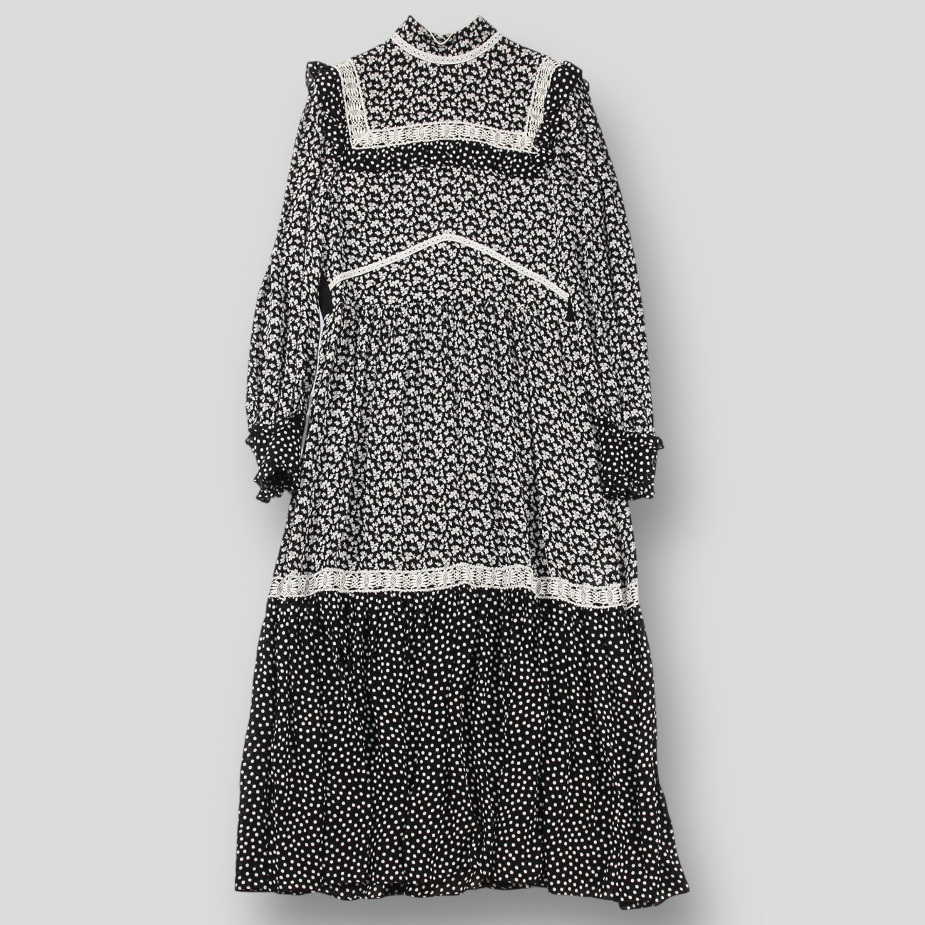 (長袖/花柄/フラワー/フローラル/ポルカドット/レース/ワンピース/マキシ/ロング/ハイネック/スタンドカラー)