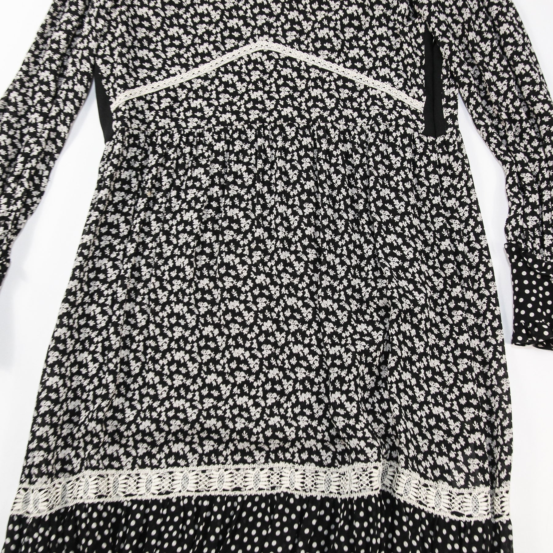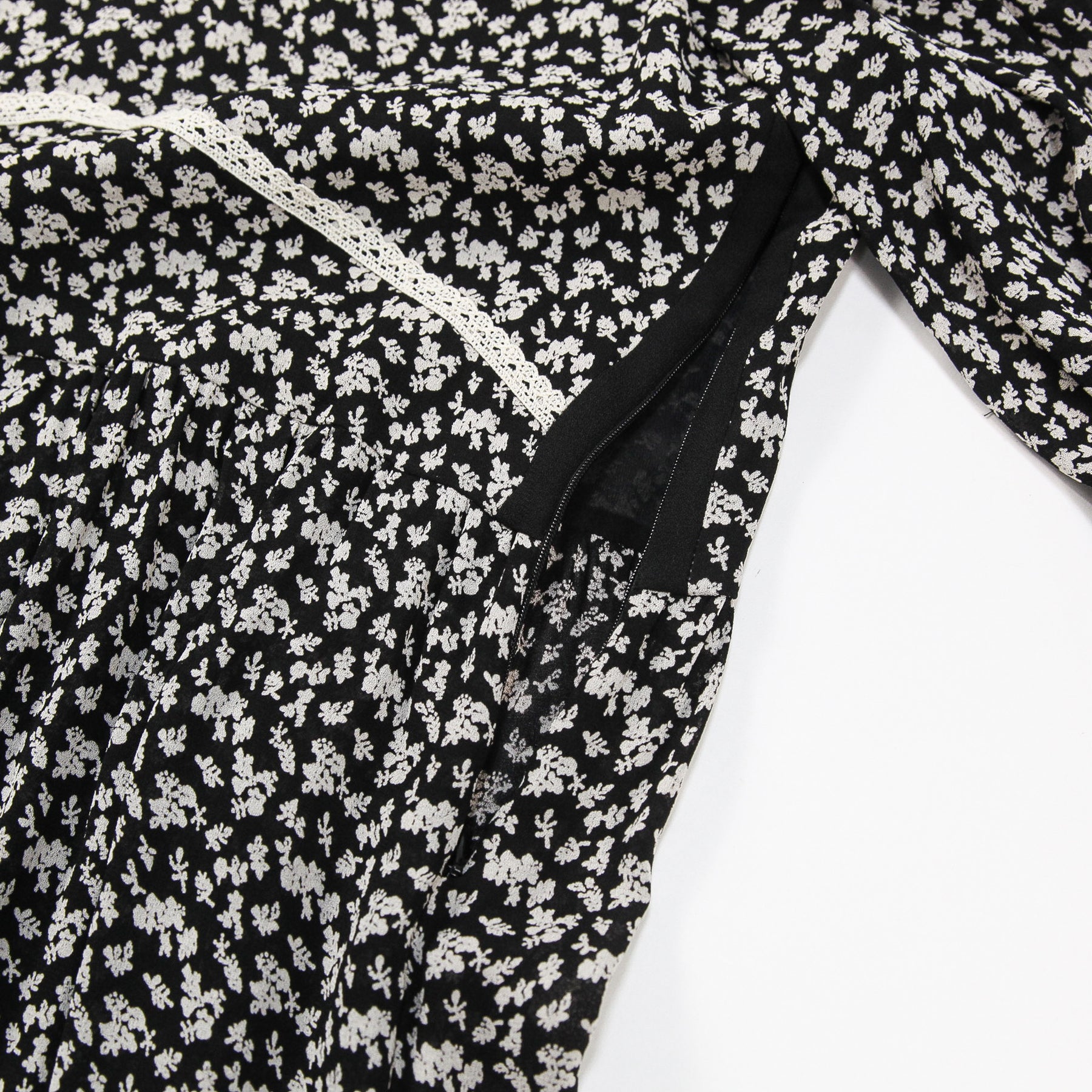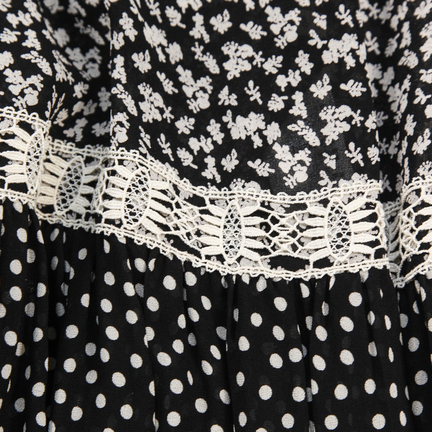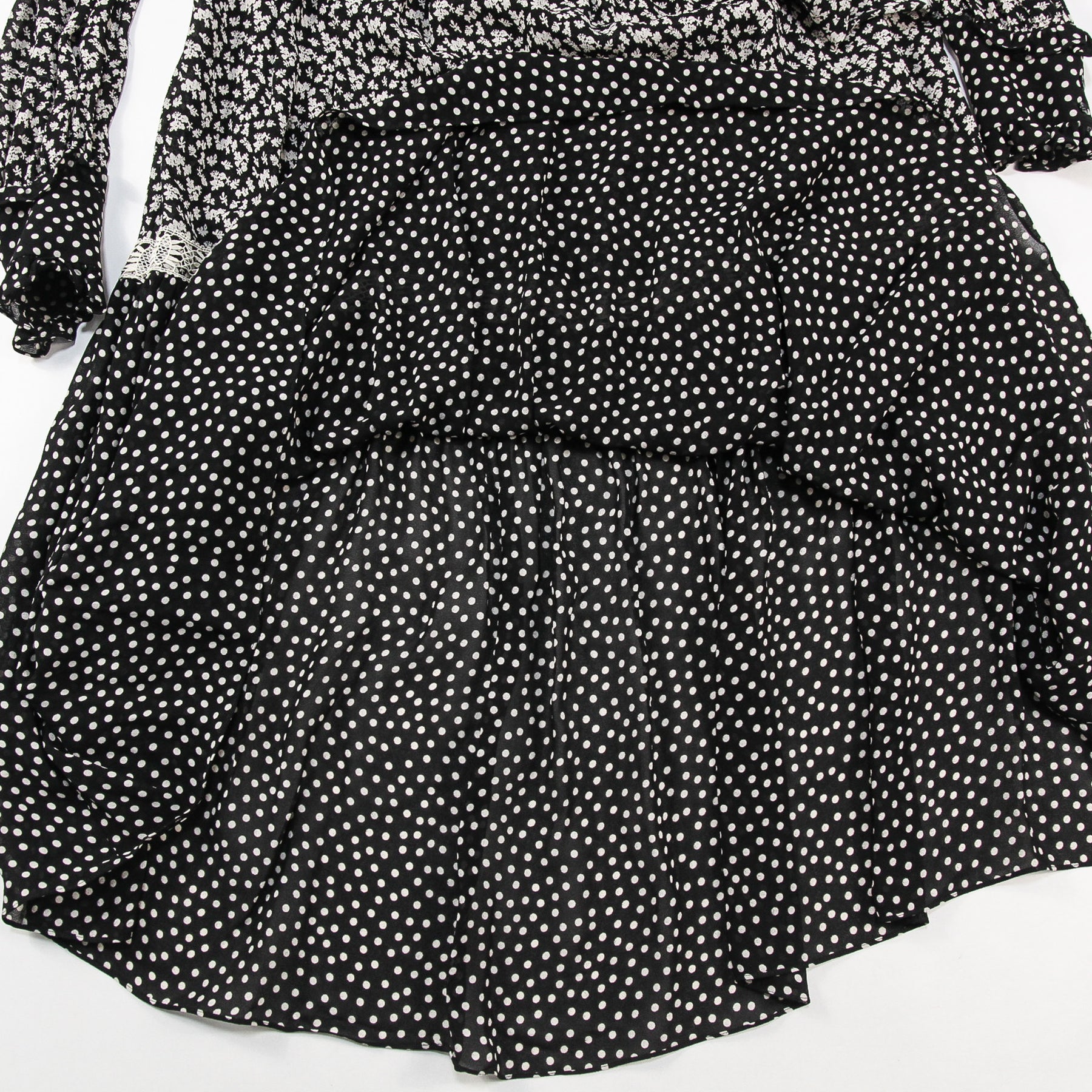 ブラックを基調としたカラーパレットで、フローラル柄やレース、ポルカドットを組み合わせたフェミニンなデザインで、動きに合わせて踊るようなシルエットを生むしなやかな素材感も魅力です。