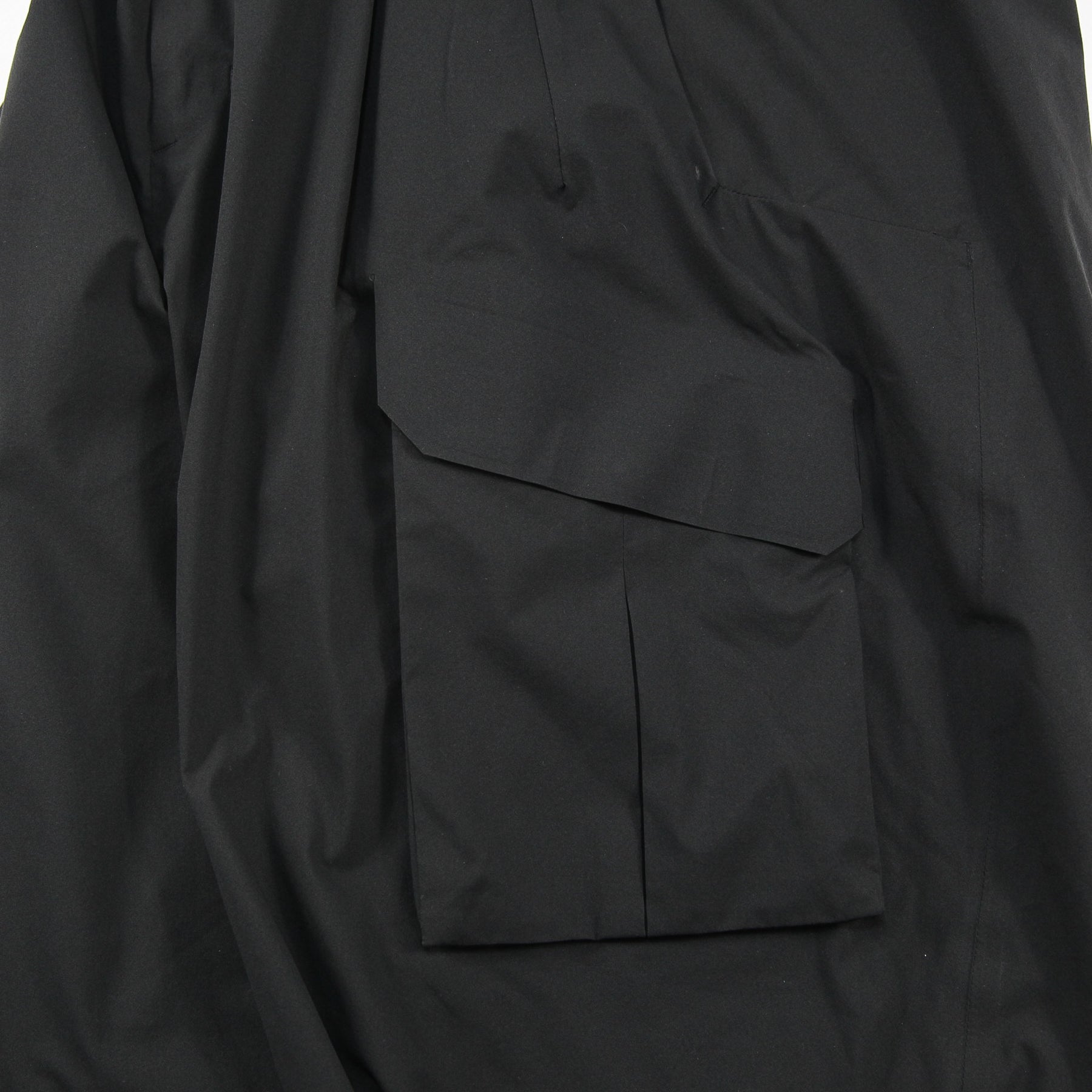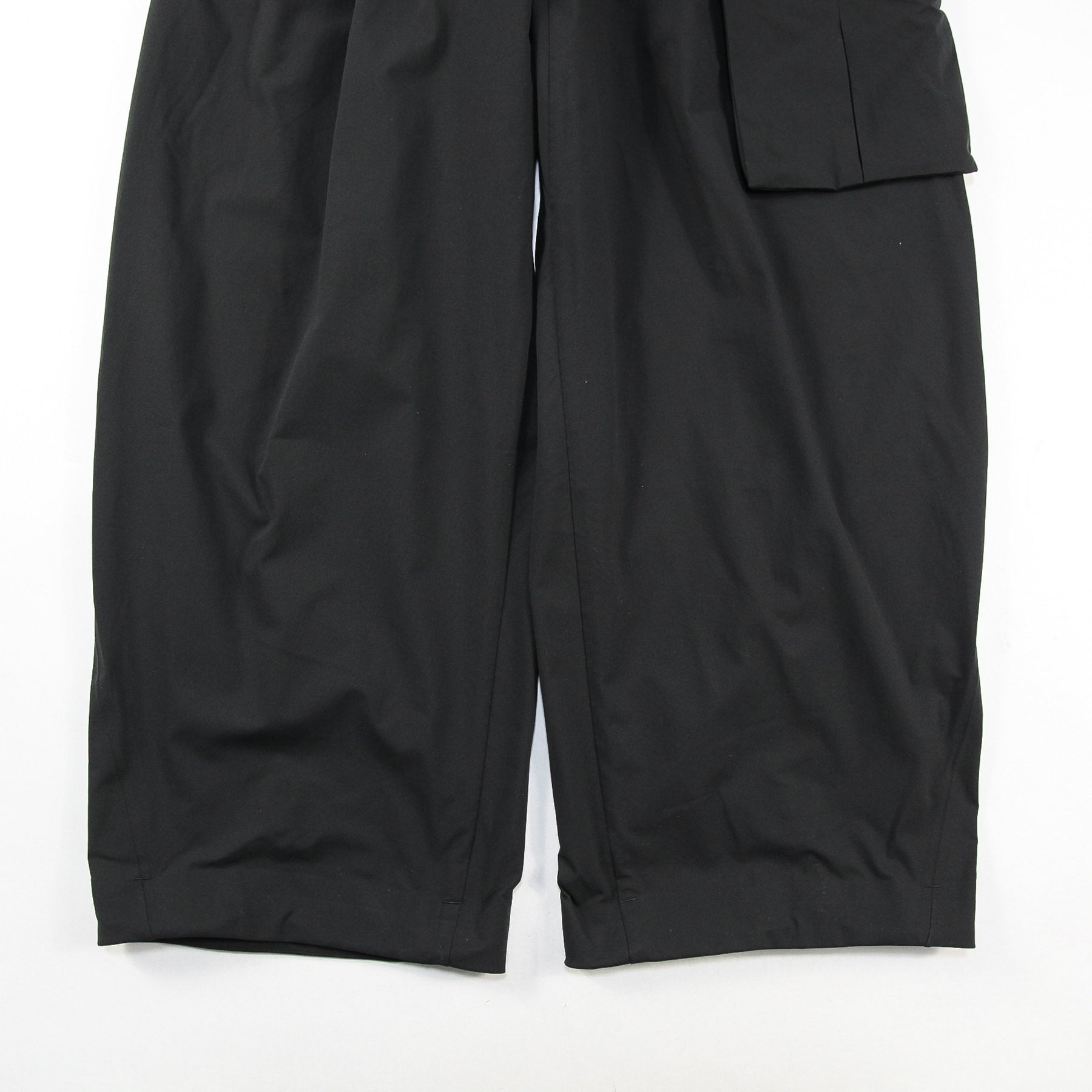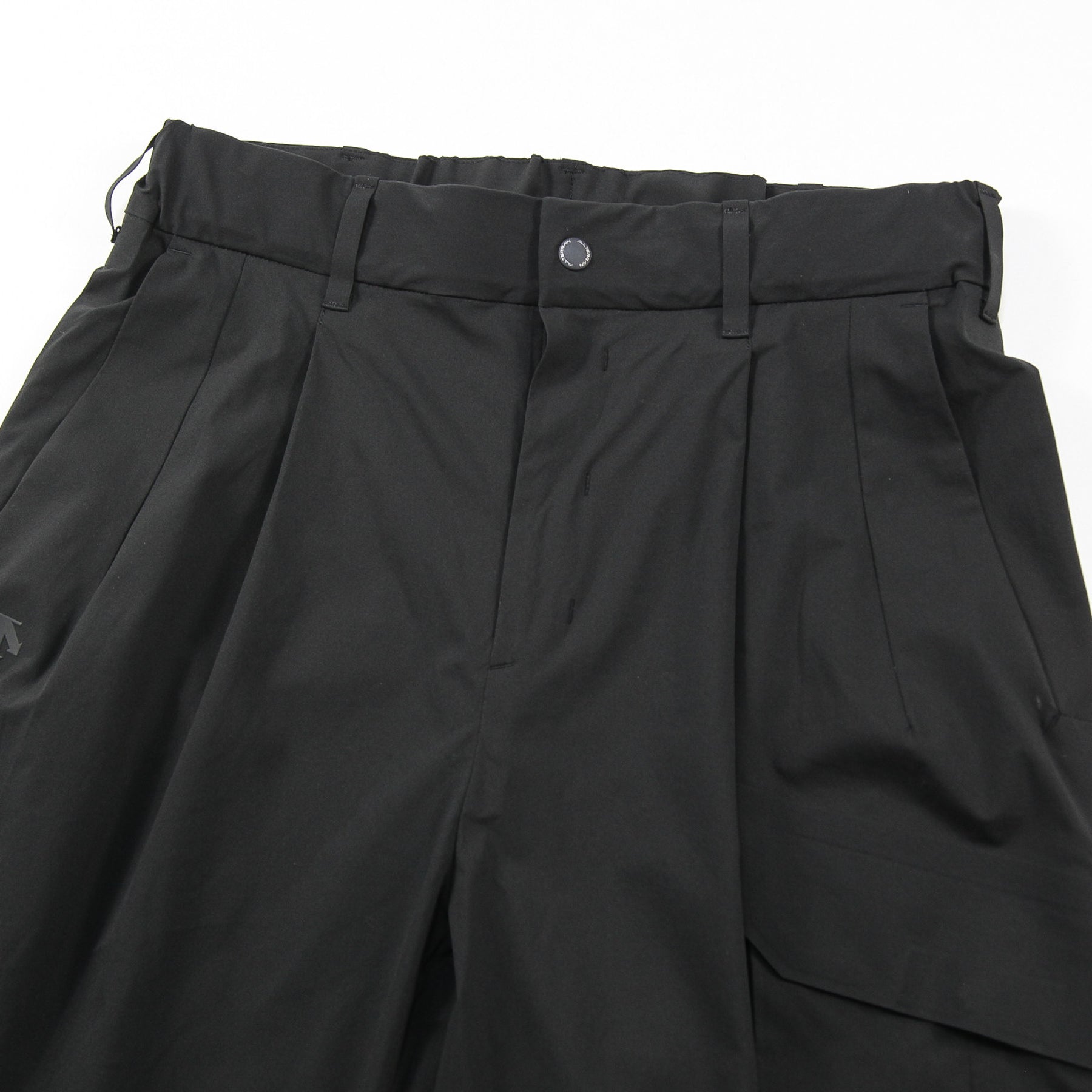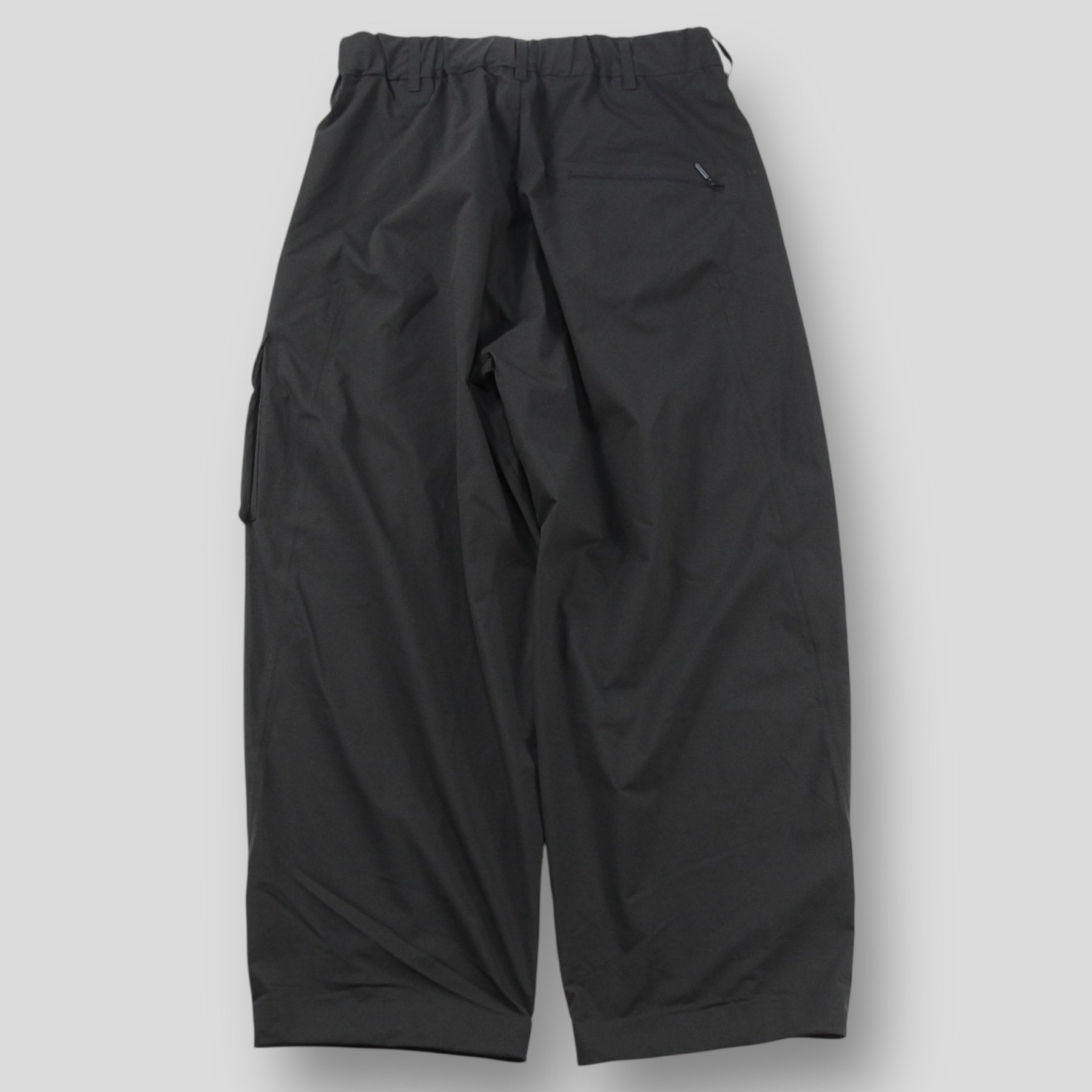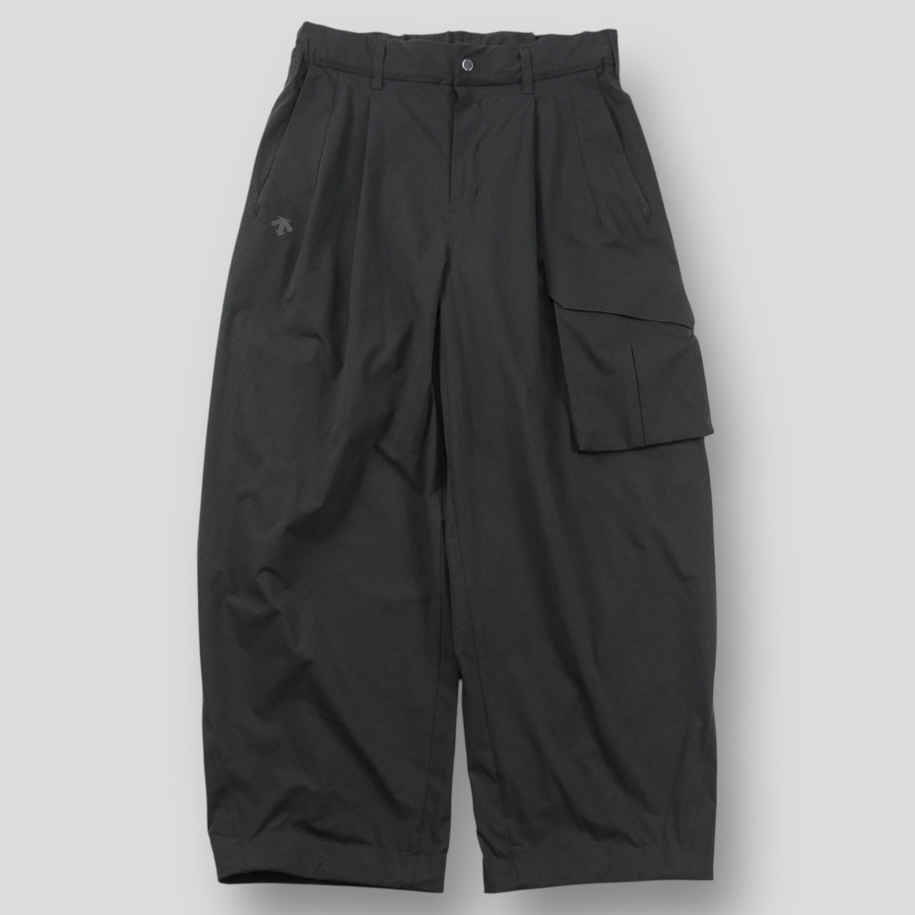 ストレッチ性と撥水性を兼ね備えたソフトなポリエステル素材を使用した、ワイドカーゴパンツ。