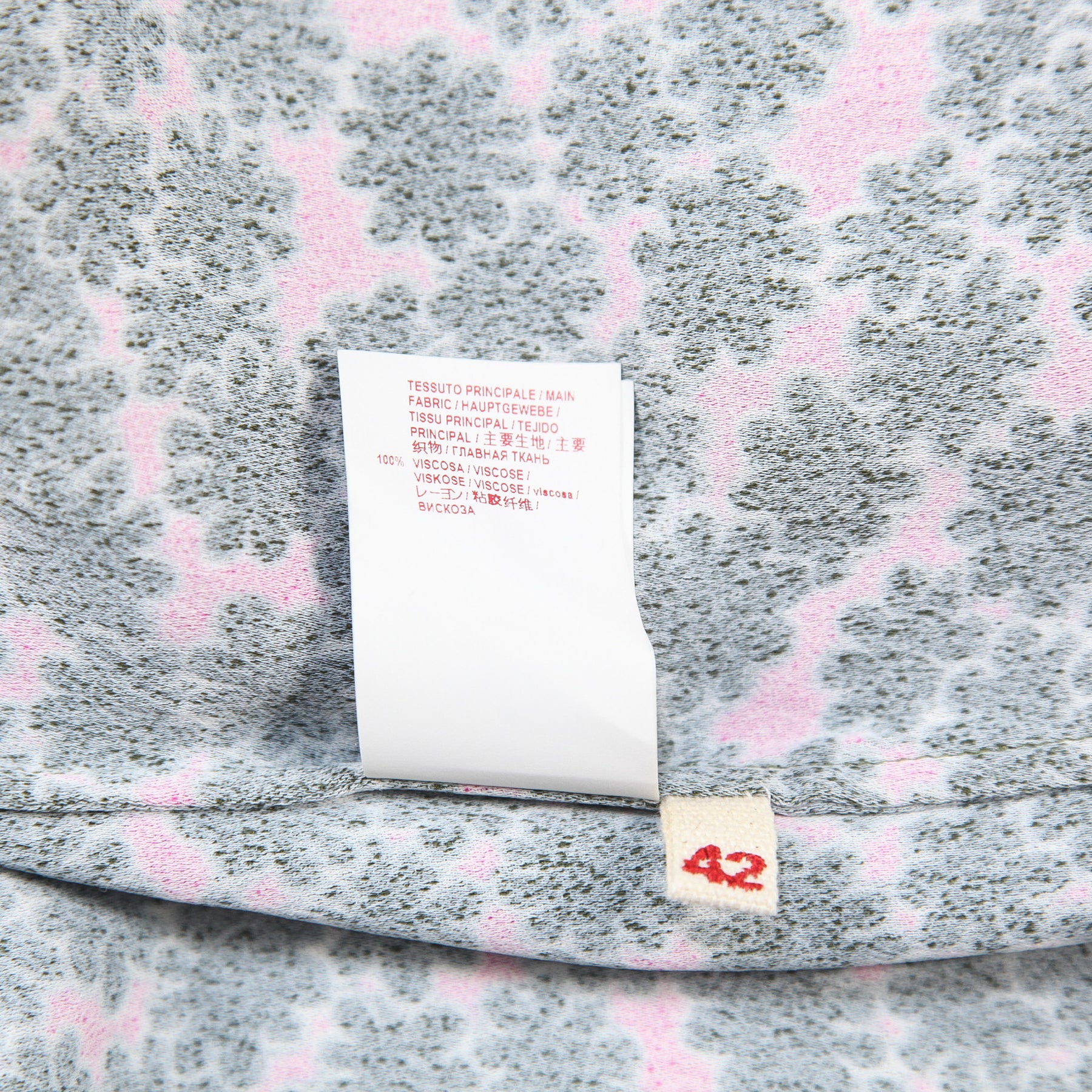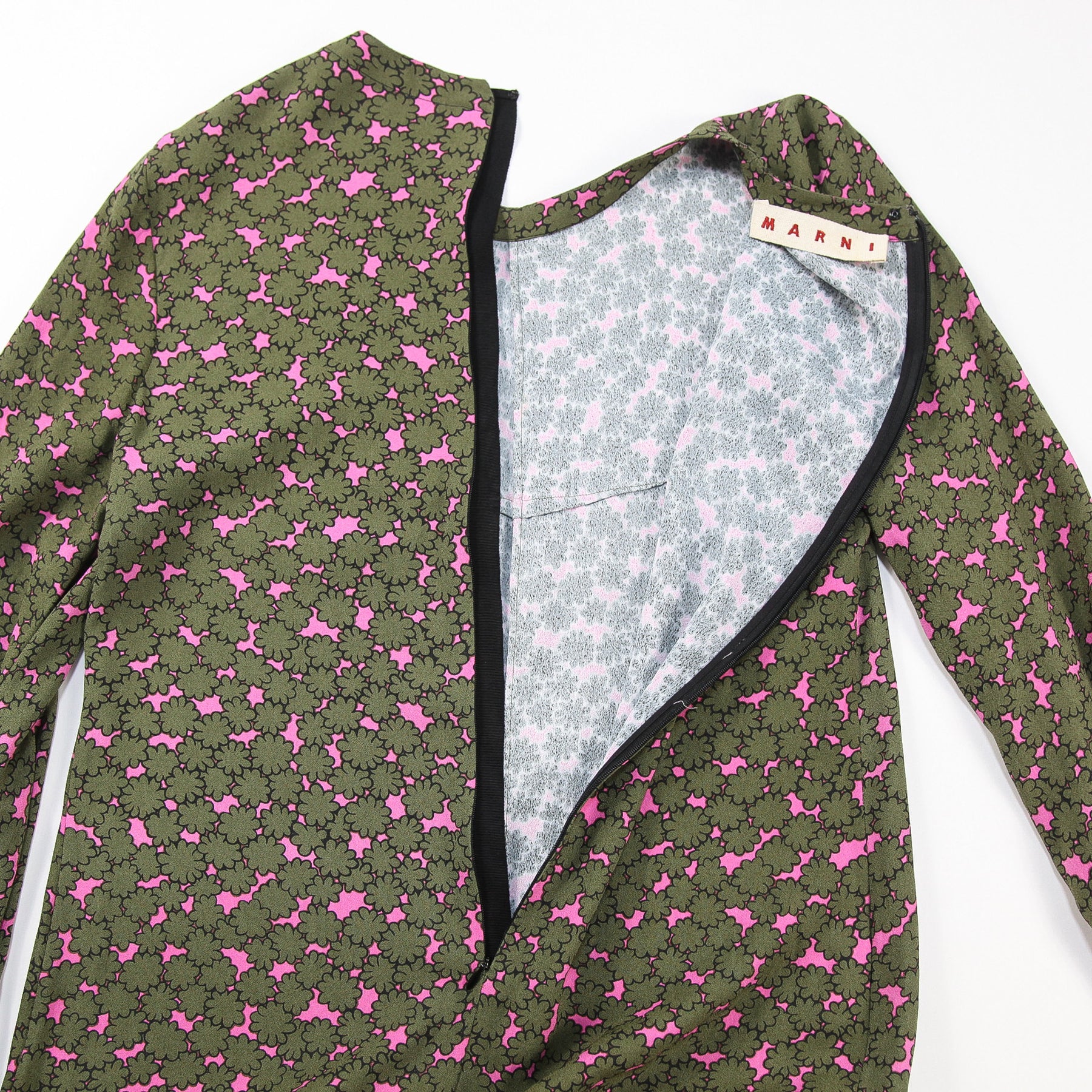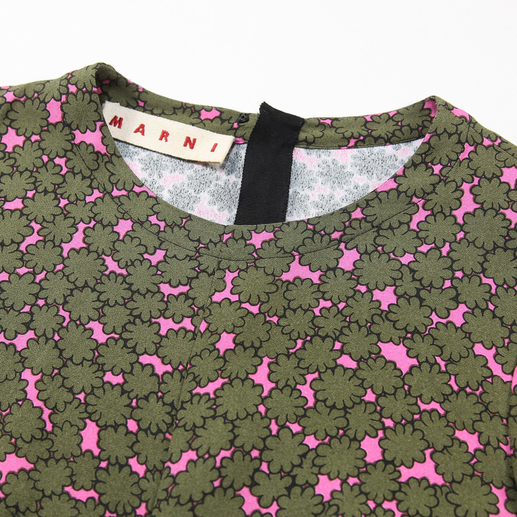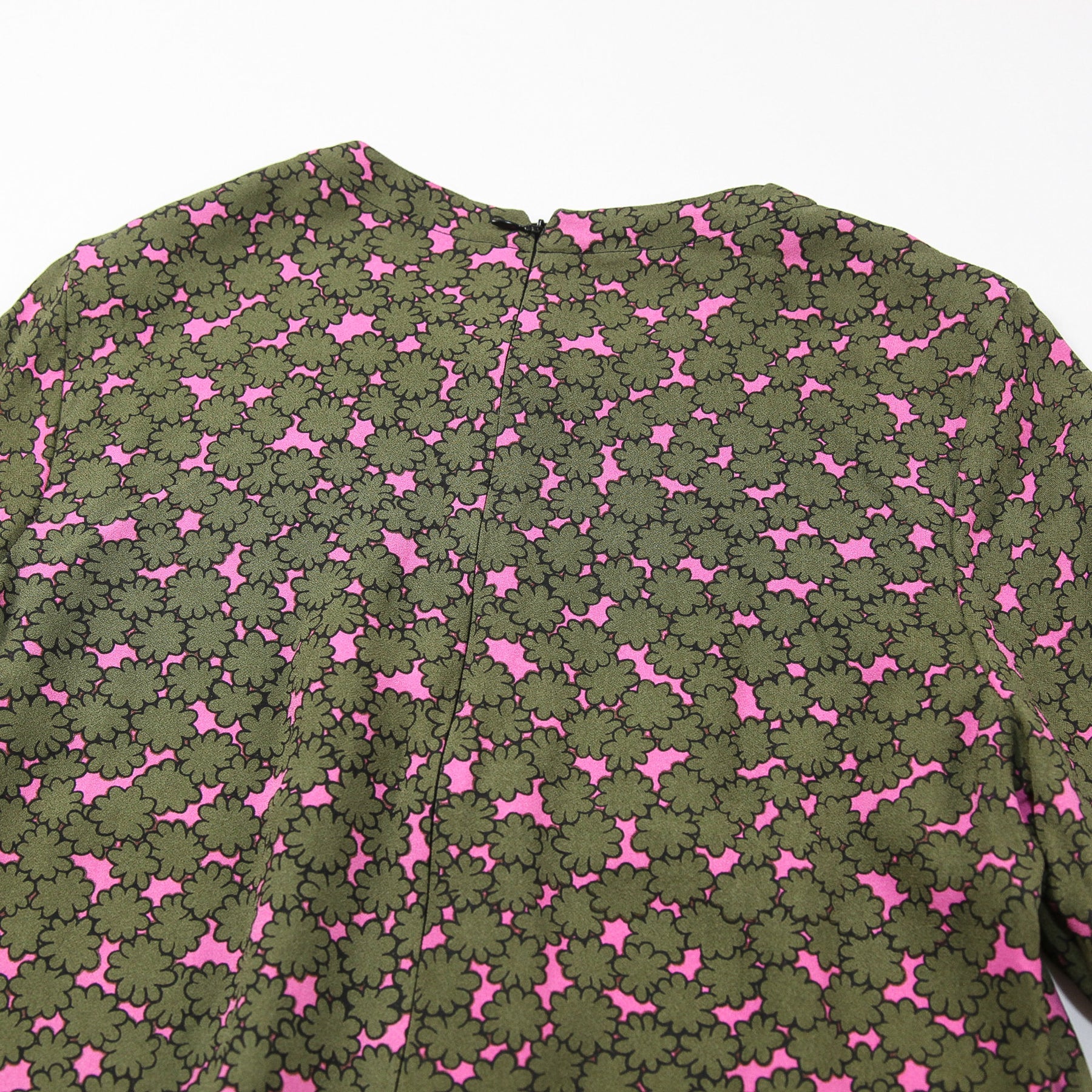 鮮やかなピンクベースの生地にグリーン系のリーフフラワーをプリントしており、派手過ぎず合わせやすい仕上がり。