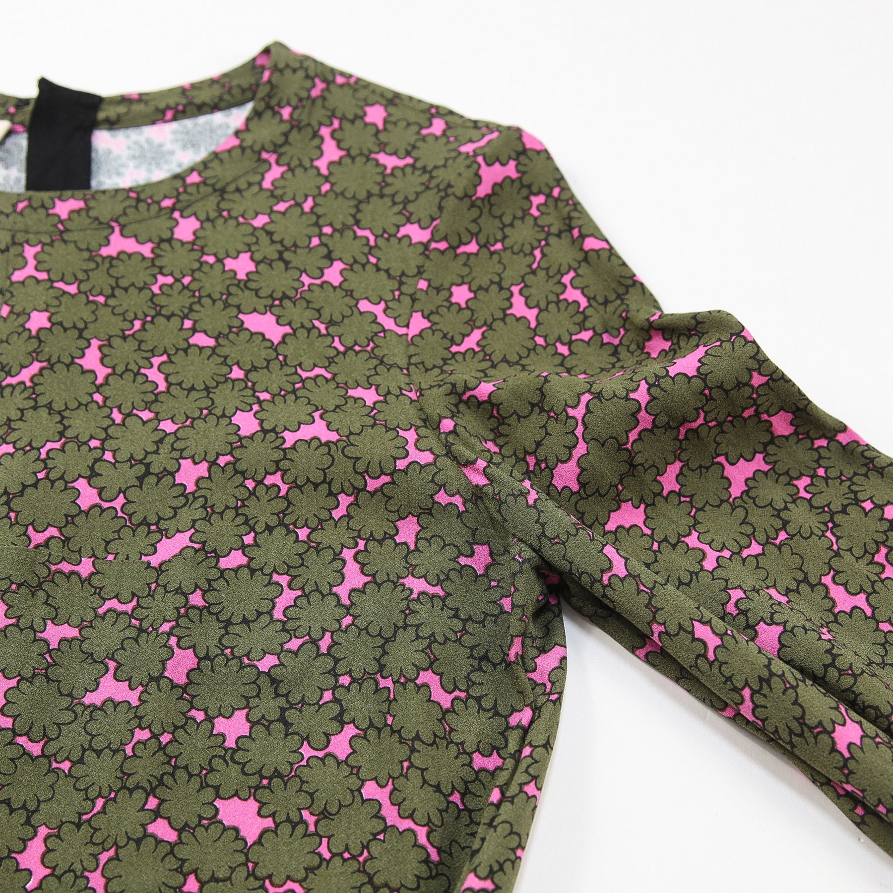 (長袖/フローラル/Uネック/ドレス/プルオーバー)