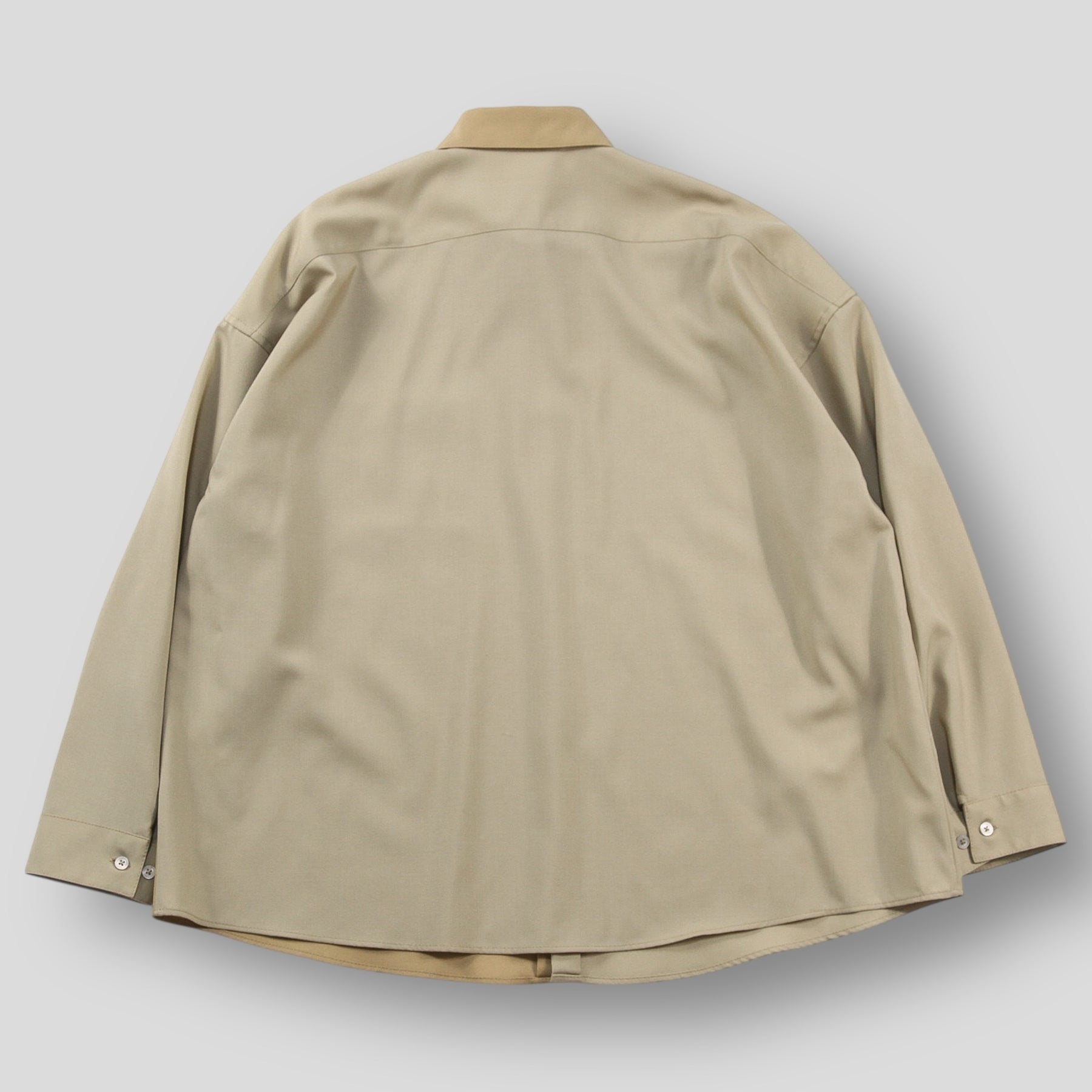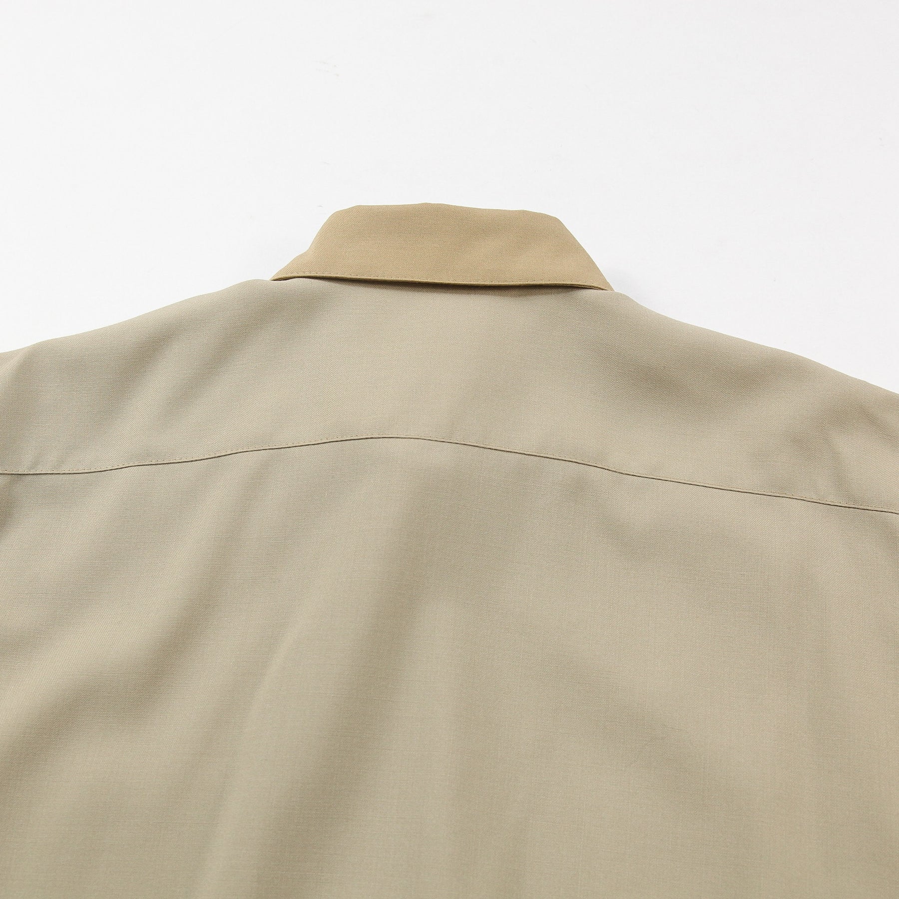 同色で纏めつつ襟と前身頃の半分のトーンを変える事で独自性を出し、よりファッショナブルなイメージへと昇華した一着。