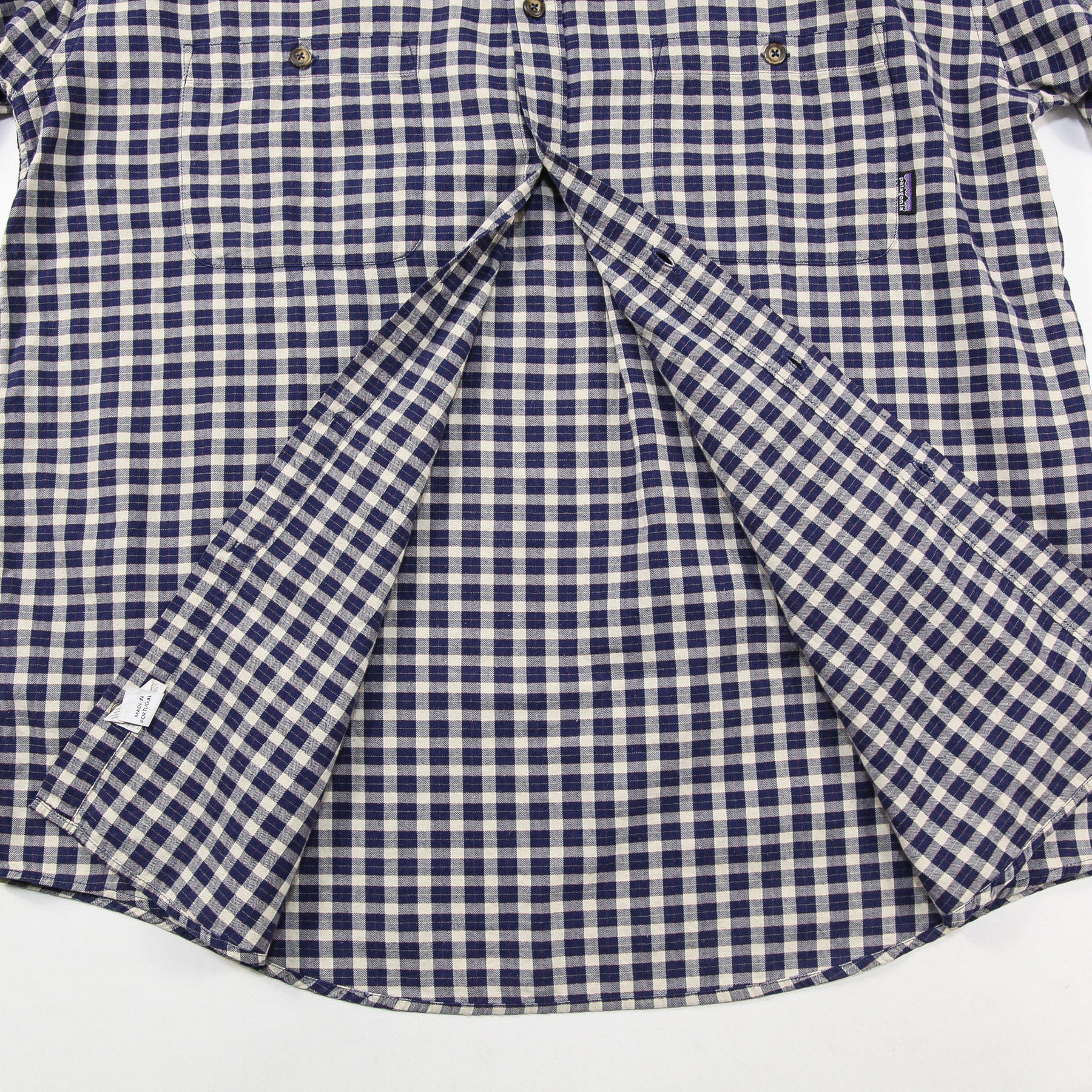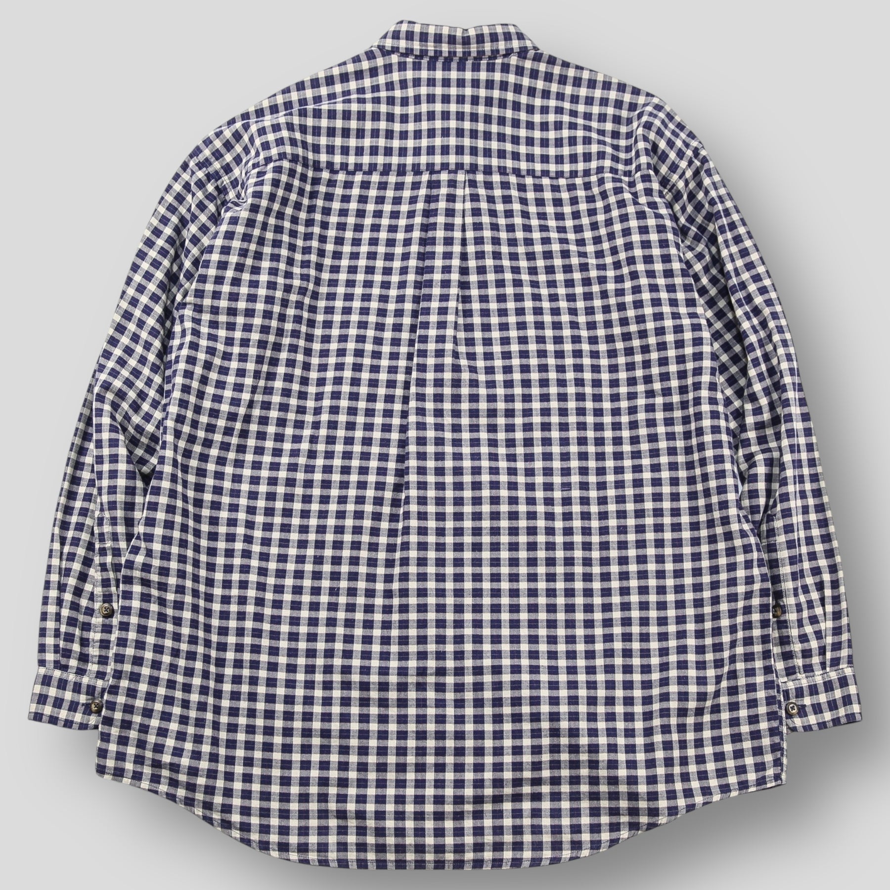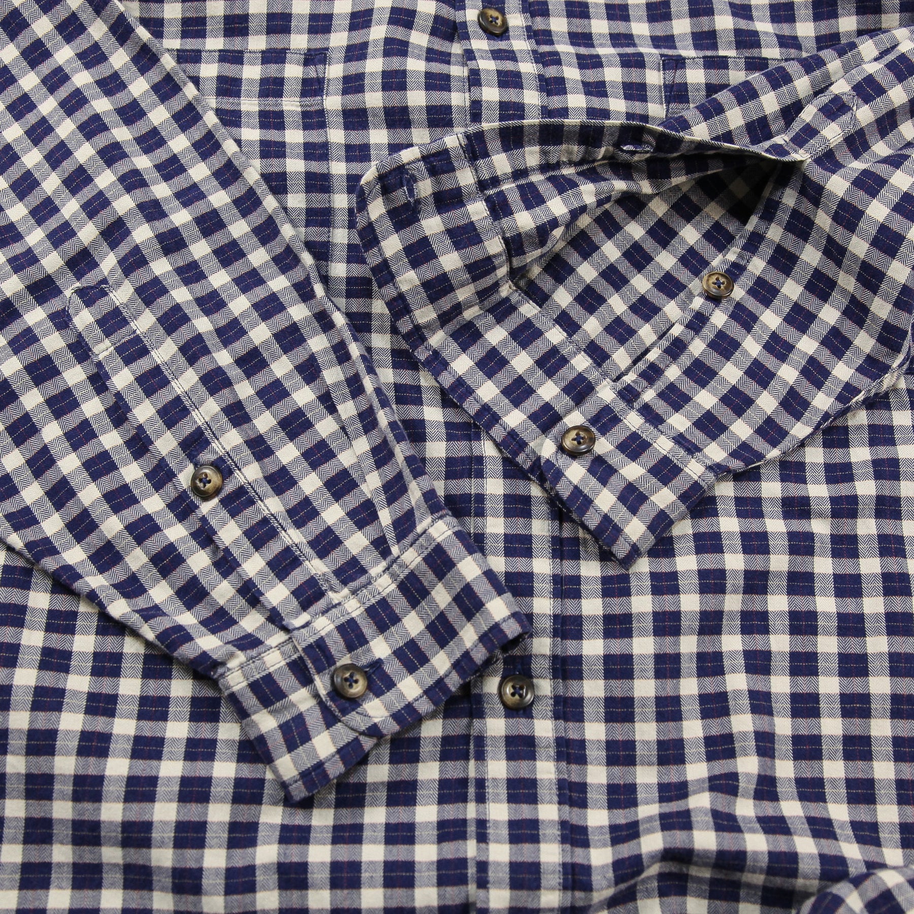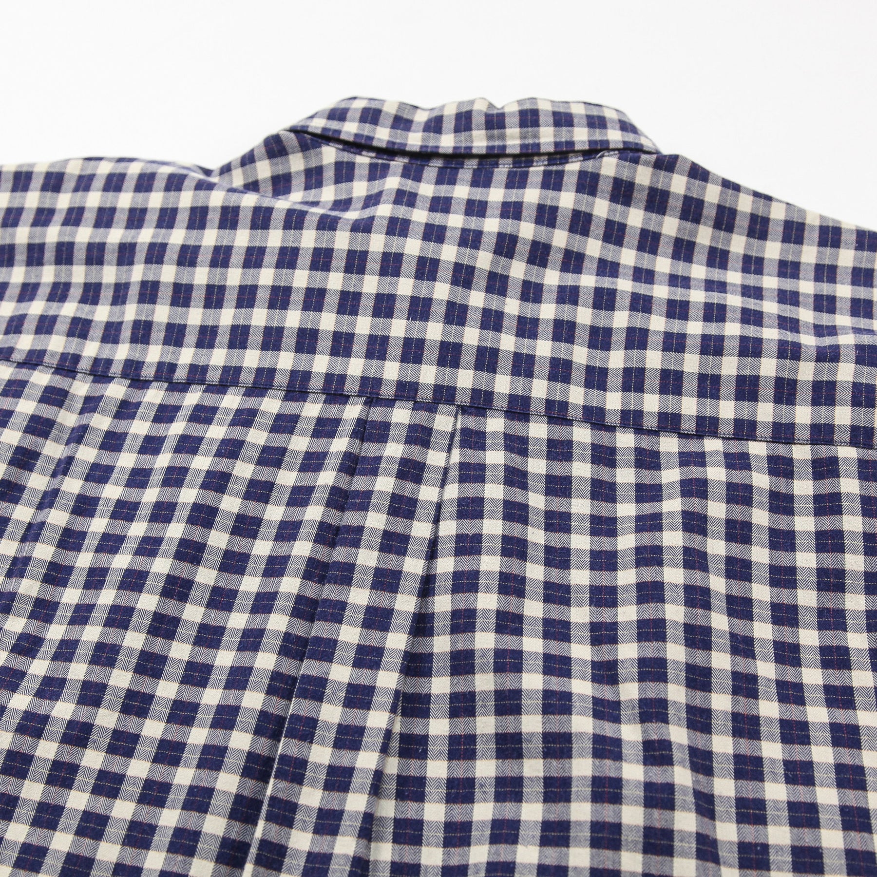 ヘリンボーン織りの上質なコットン素材を使用し、ネイビー/ホワイトの綺麗な配色のチェック柄で仕上げられたデザイン。