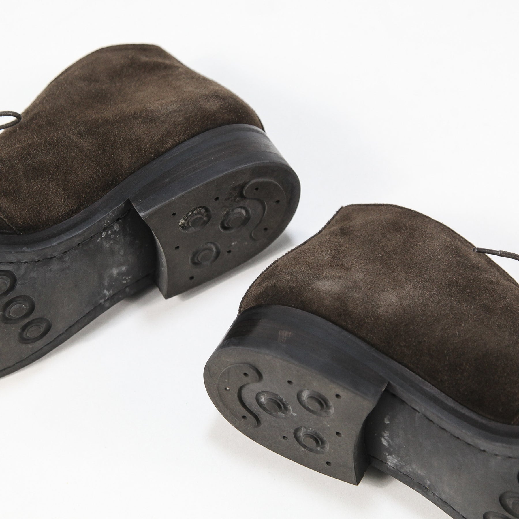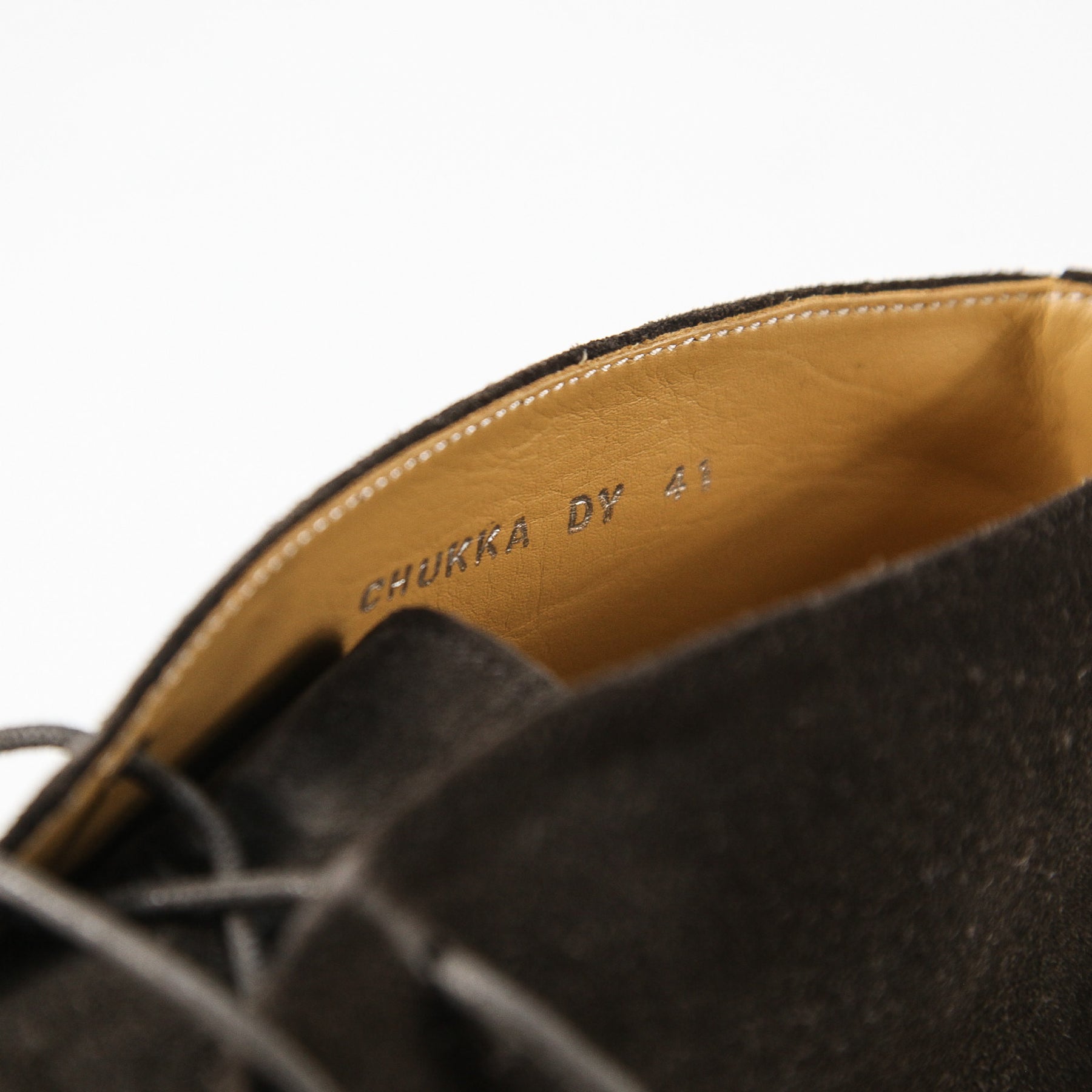 柔らかいスエード素材を使用しており、アウトソールには耐久性のあるダイナイトソールを採用。ドレススタイルの中に無骨なテイストをプラスしています。