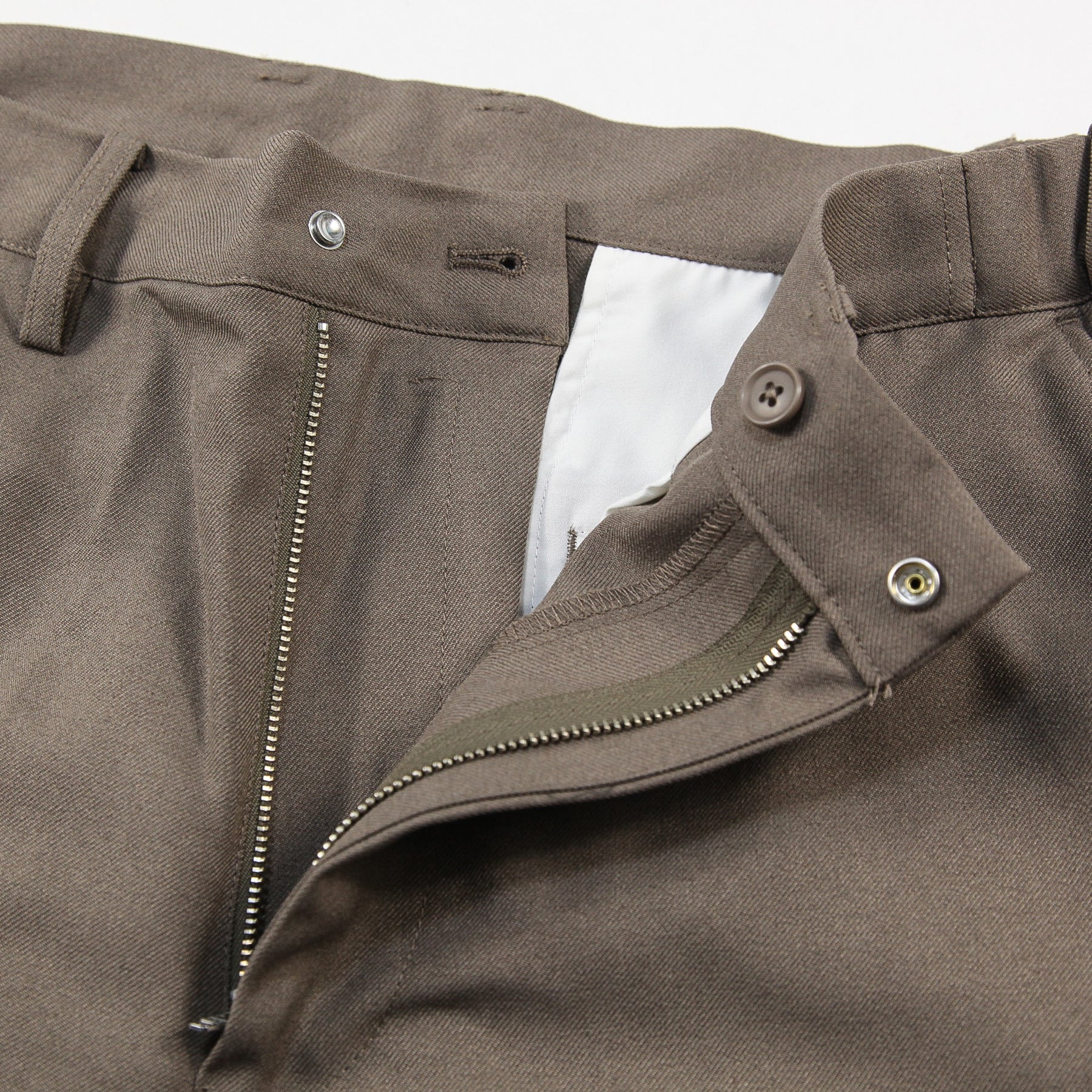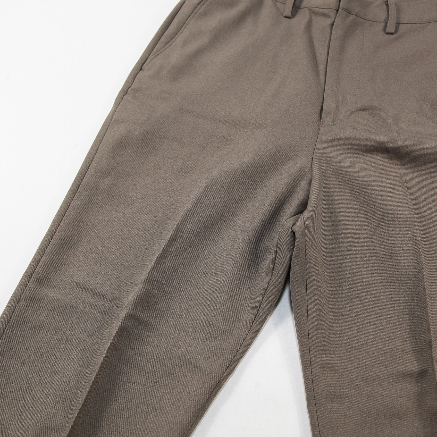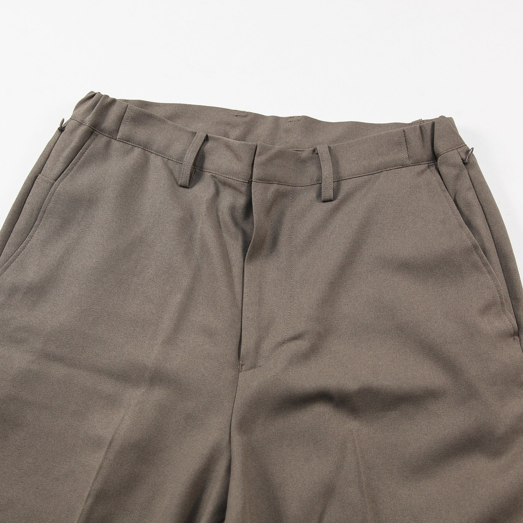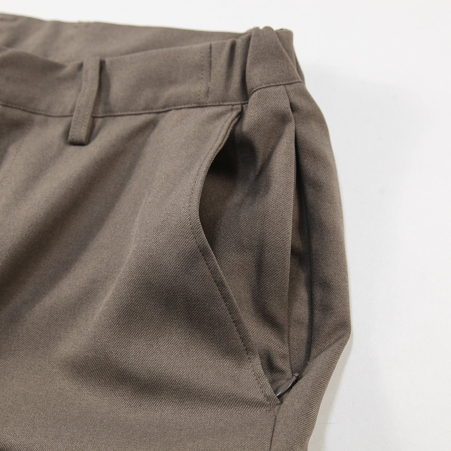 ドライなタッチと繊細な質感、きれいな落ち感が特徴の生地感で、洗濯後もセンタークリースが落ちにくく、上品かつクリーンなムードで着用いただけます。