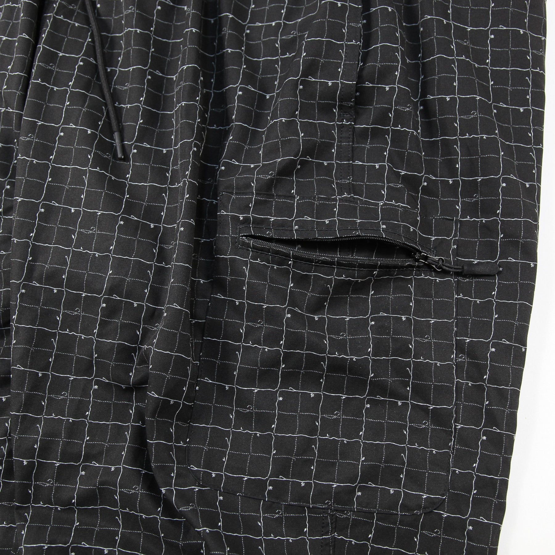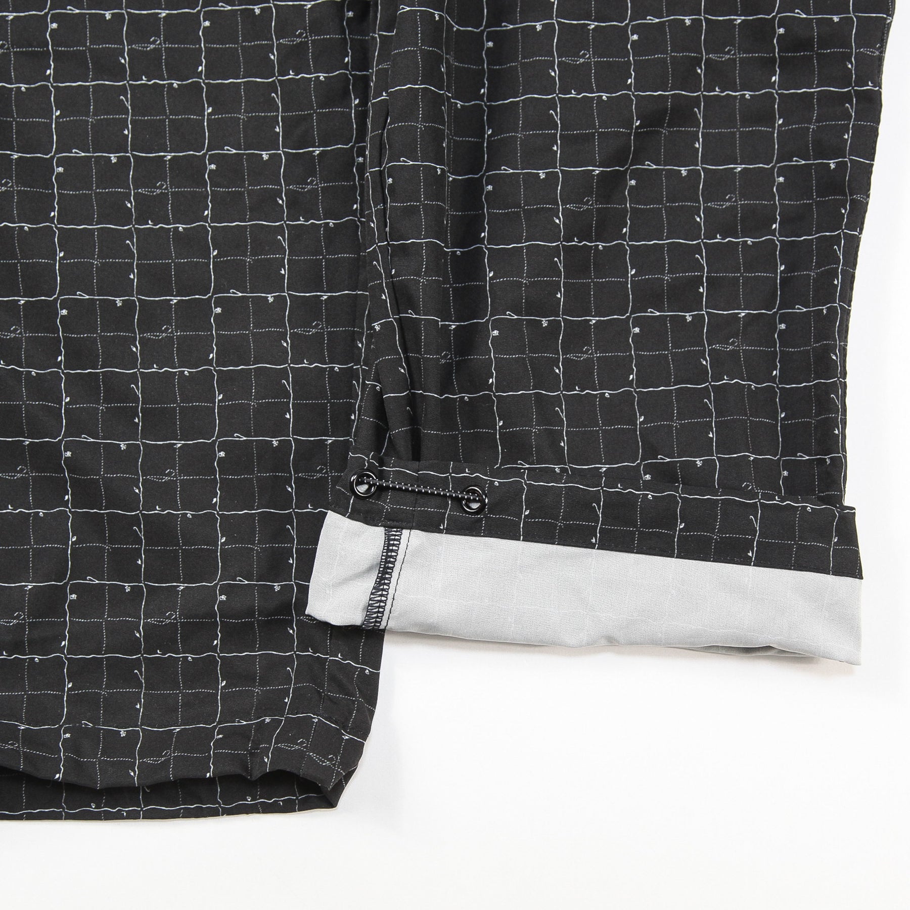 実用性も考えて左太もも部分にファスナーポケットを一つ配備しており、裾のコードに足を通すことにより、裾を絞ることも可能です。