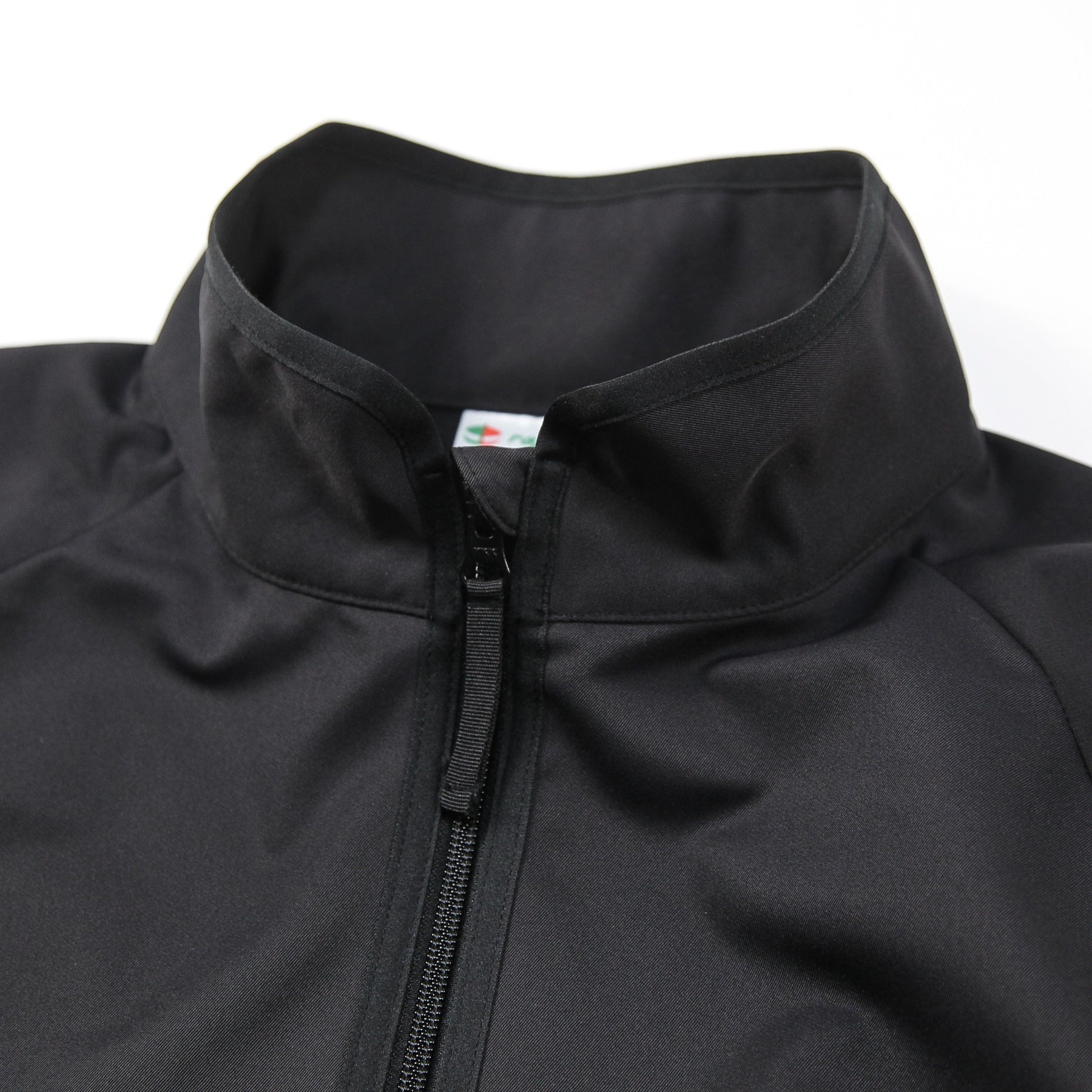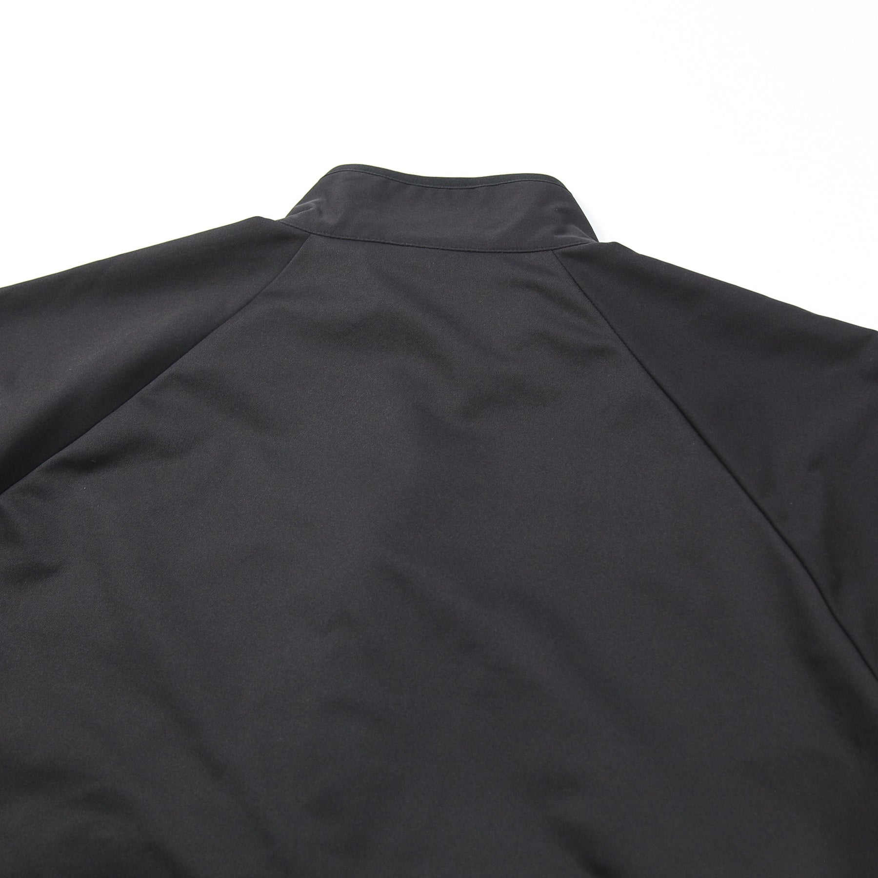 ストレッチ性、吸水乾燥、形態回復性に長けた光沢感のあるソロテックス素材を使用した、ハーフジップジャケット。