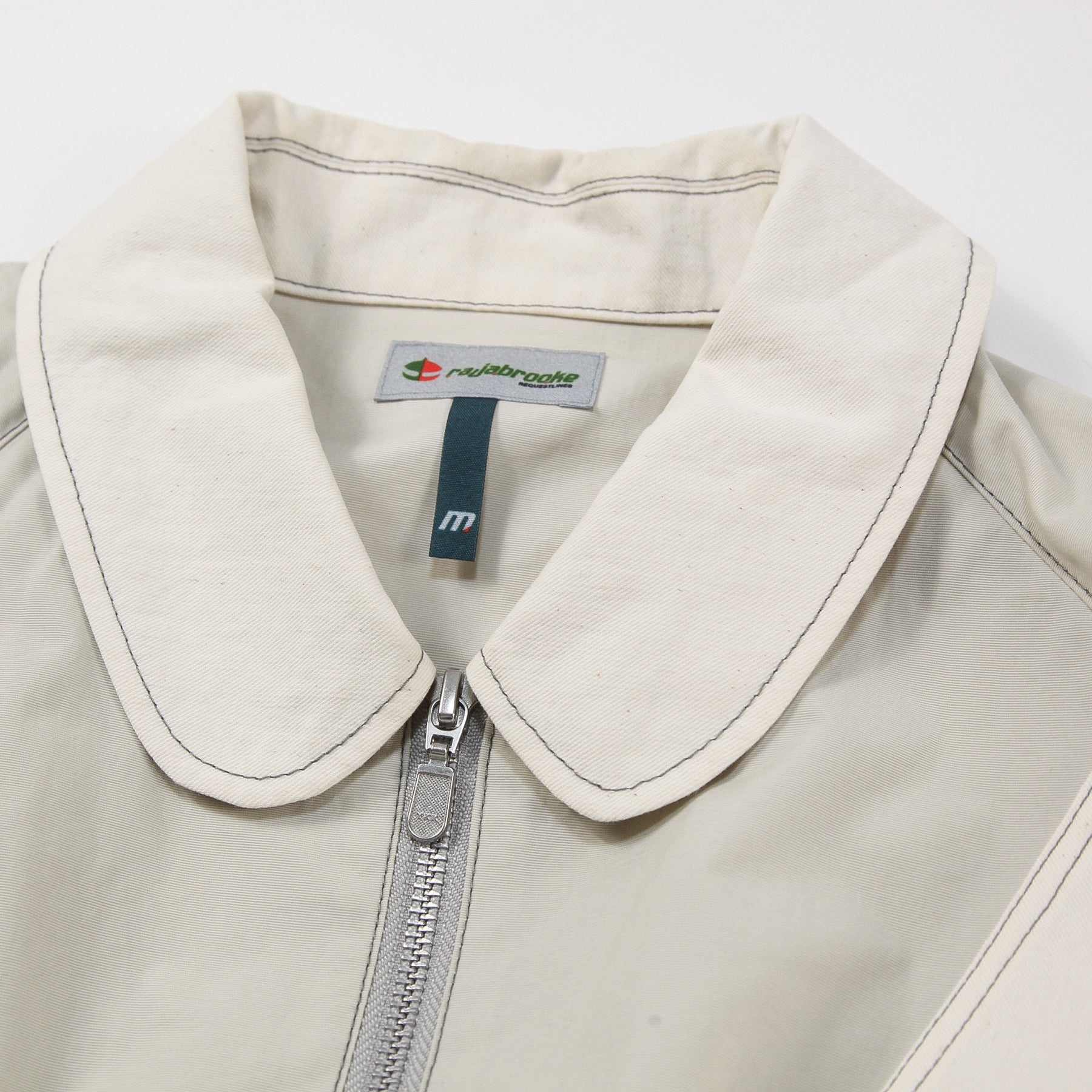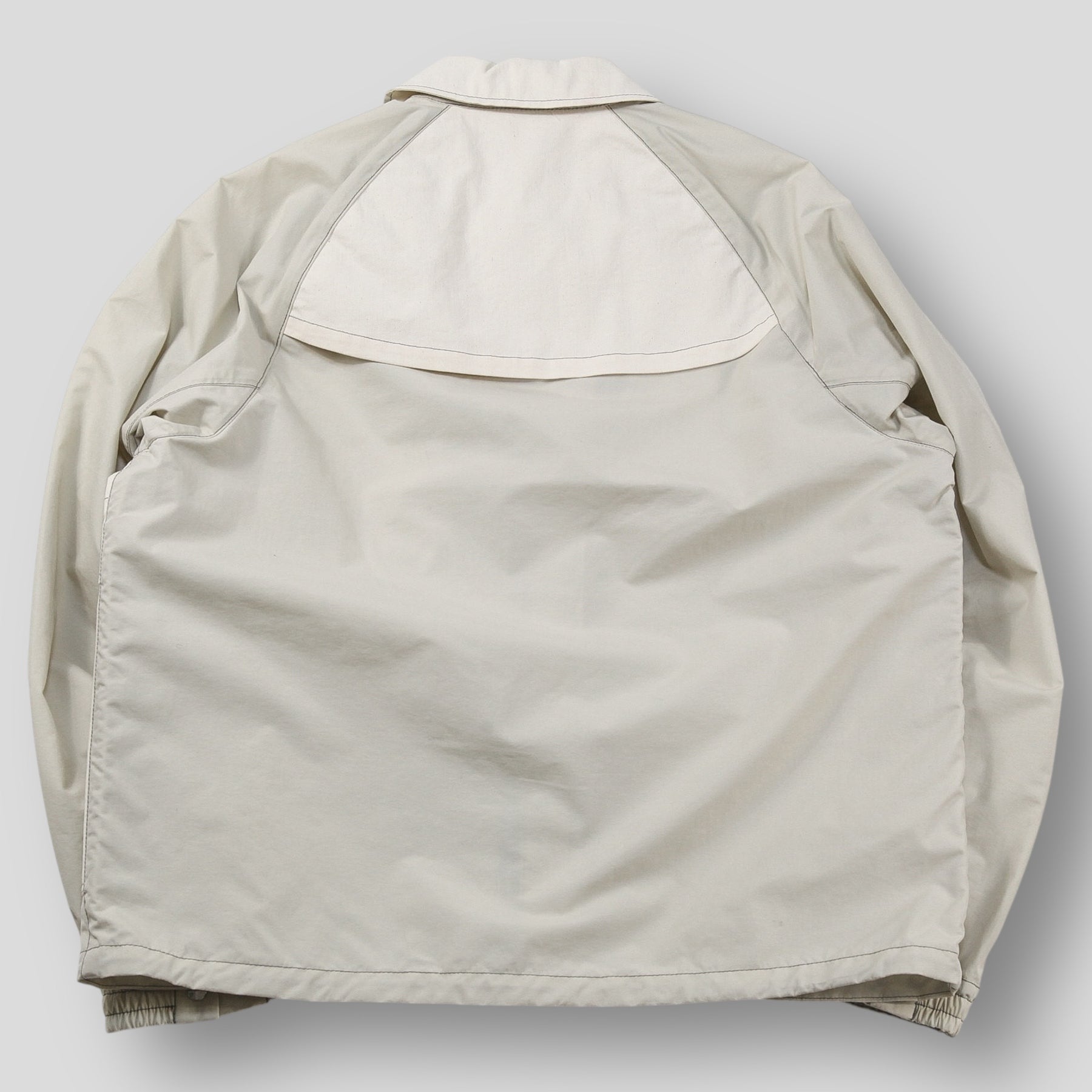 ナイロンジャケットとワークジャケットをミックスさせたようなデザインで、同系色の素材切り替えが特徴的な一品です。