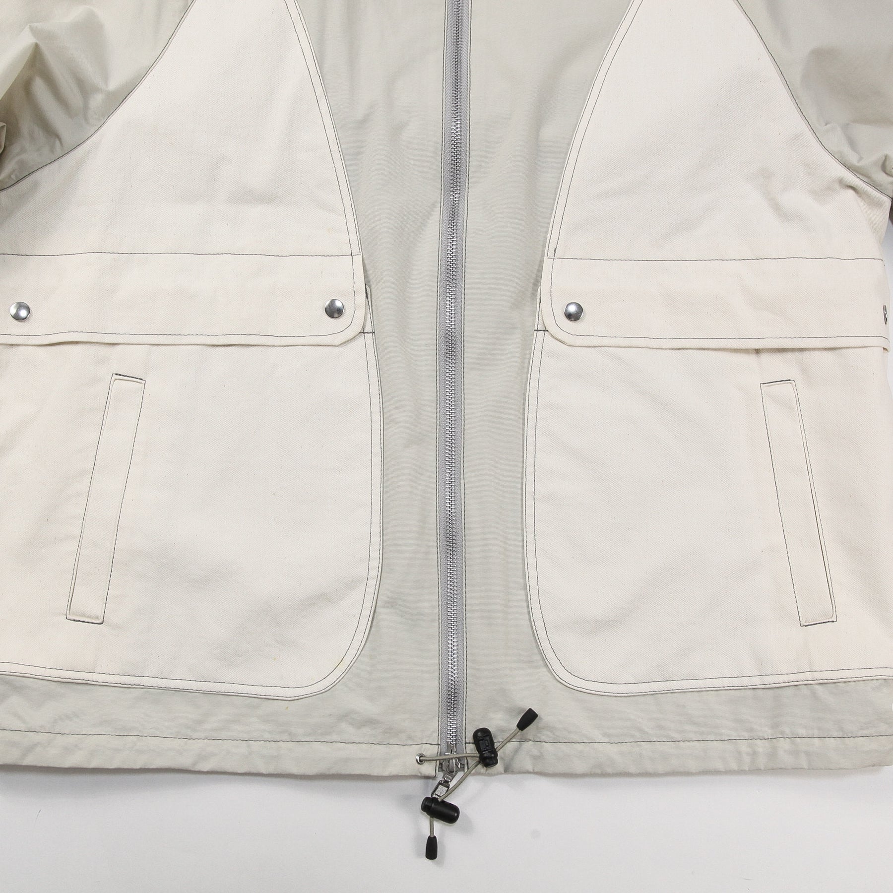 揉み洗いとバイオ加工を施したビンテージライクな風合いのコットンチノクロスと、撥水機能のあるナイロン生地で切り替えたKERJA JACKET 5。