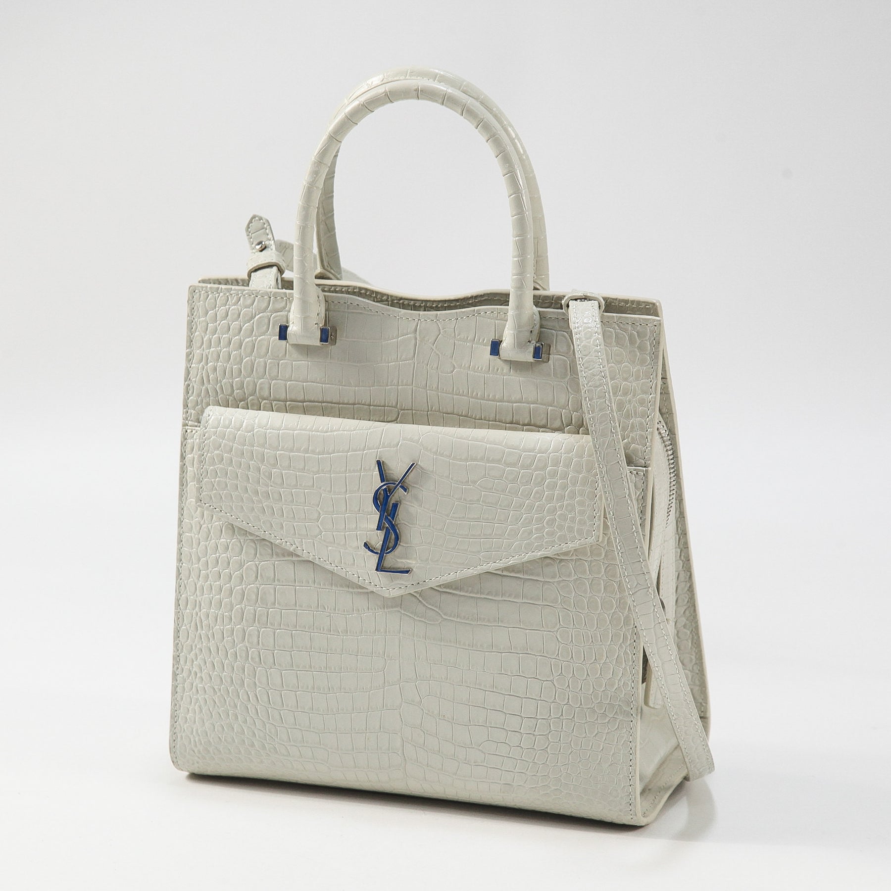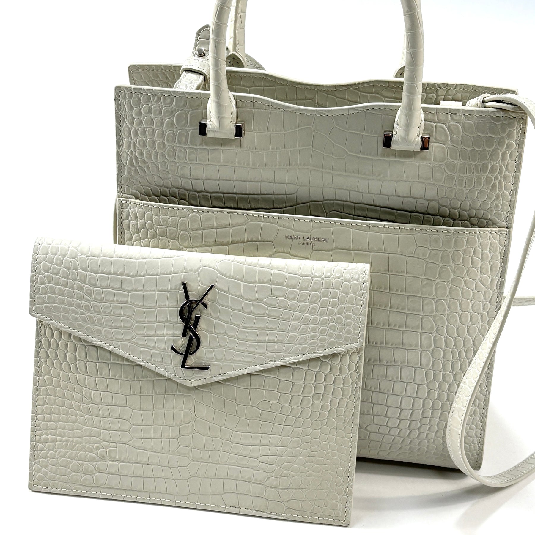 ハンドバッグ、ショルダーバッグとしてはもちろん、メタルのYSLロゴを配したポーチは取り外しが可能で、クラッチバッグとしても使用可能。