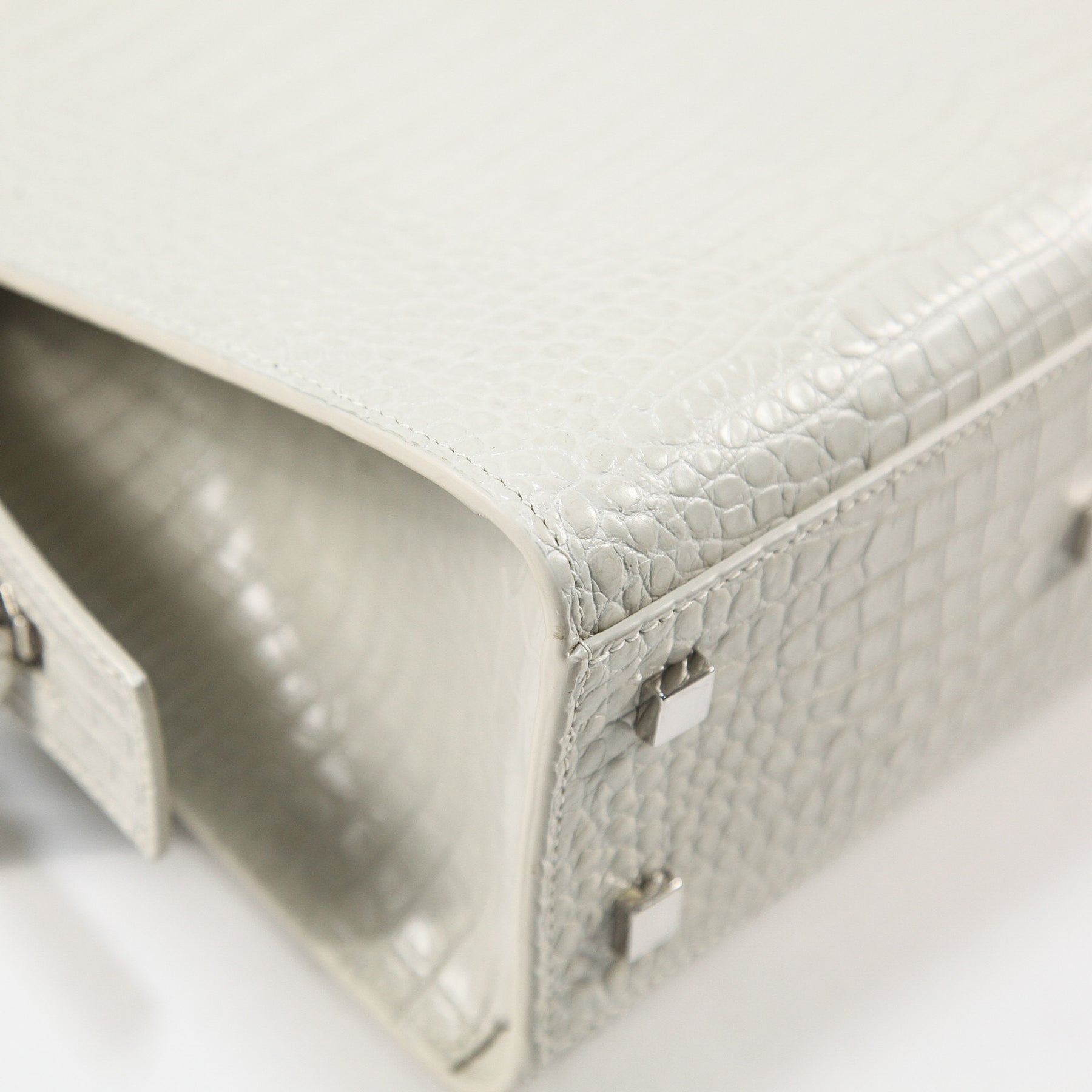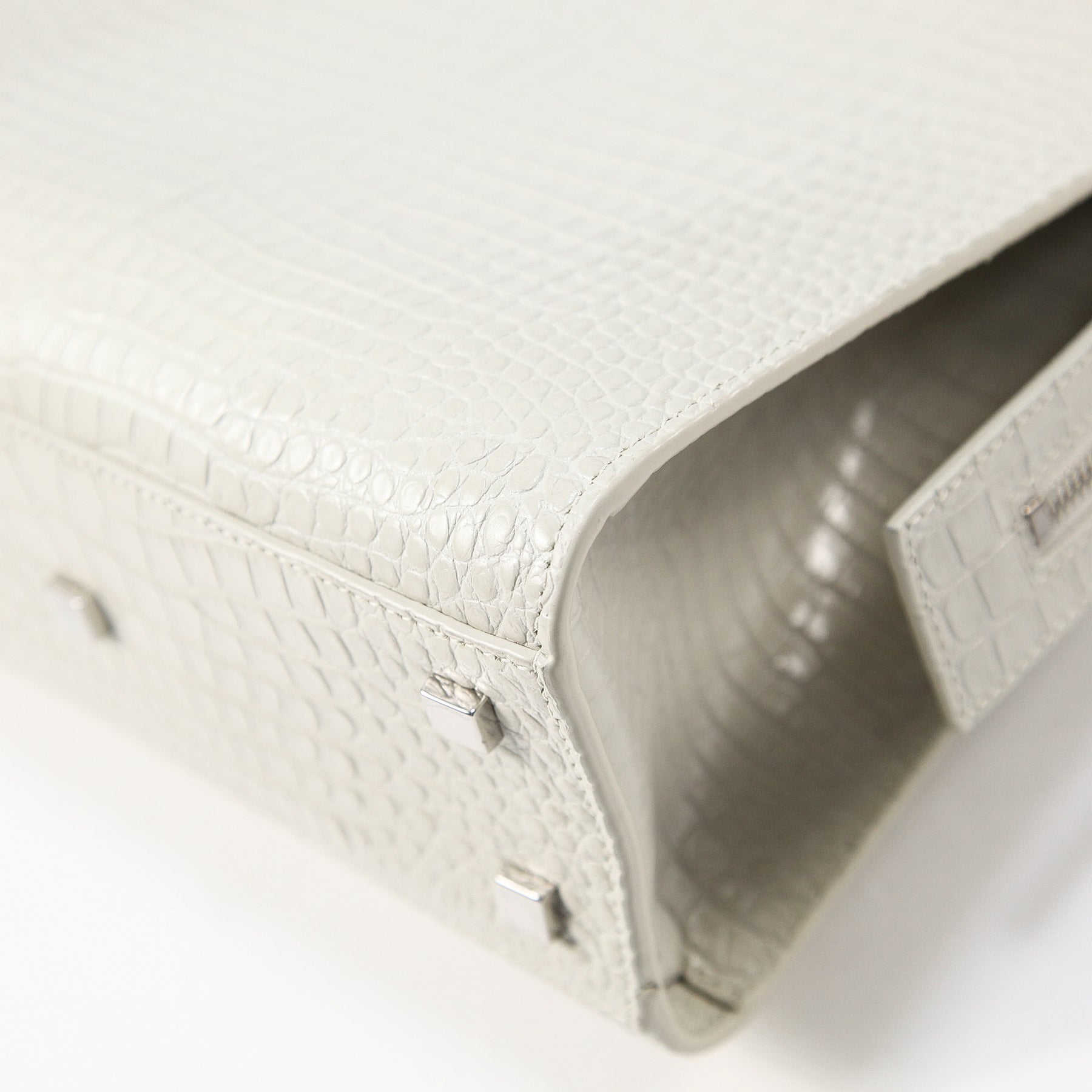 素材には最高級のカーフレザーにクロコを型押ししたエンボス仕様で、ラグジュアリーさもプラスされています。
