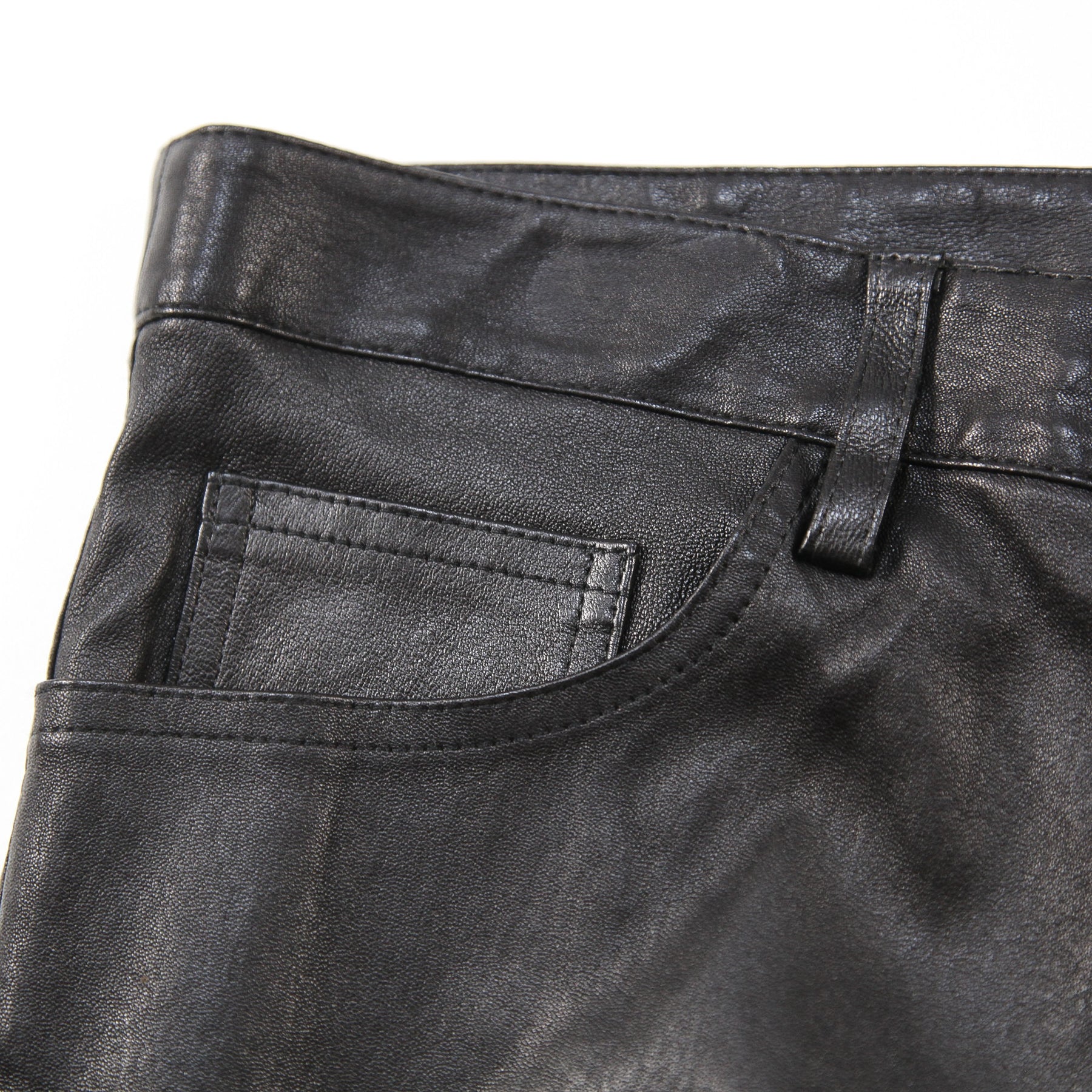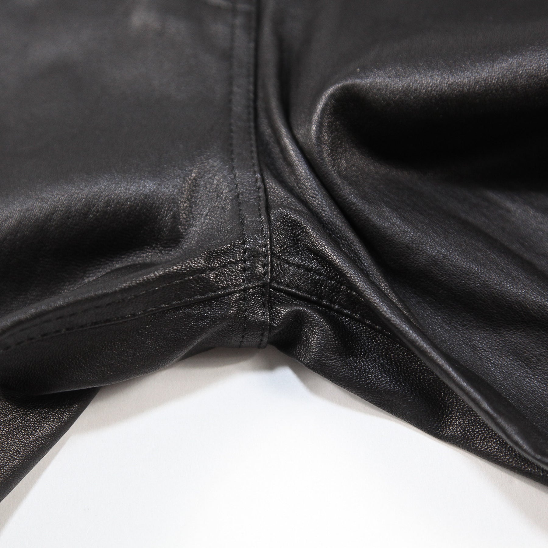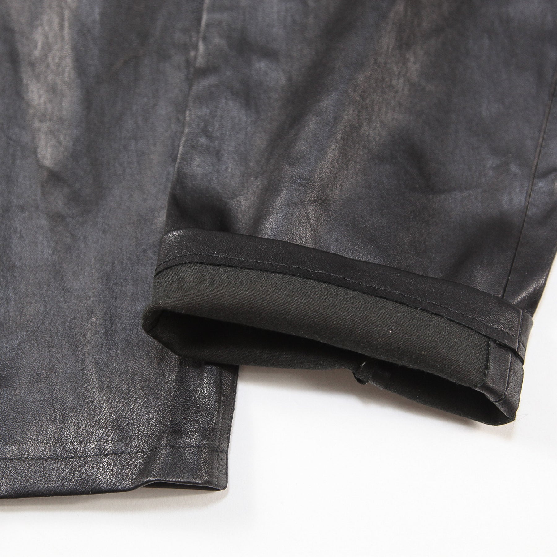 表側に最高級のラムレザー、裏側にコットン素材を使用したボンディング仕様のスキニーパンツ。