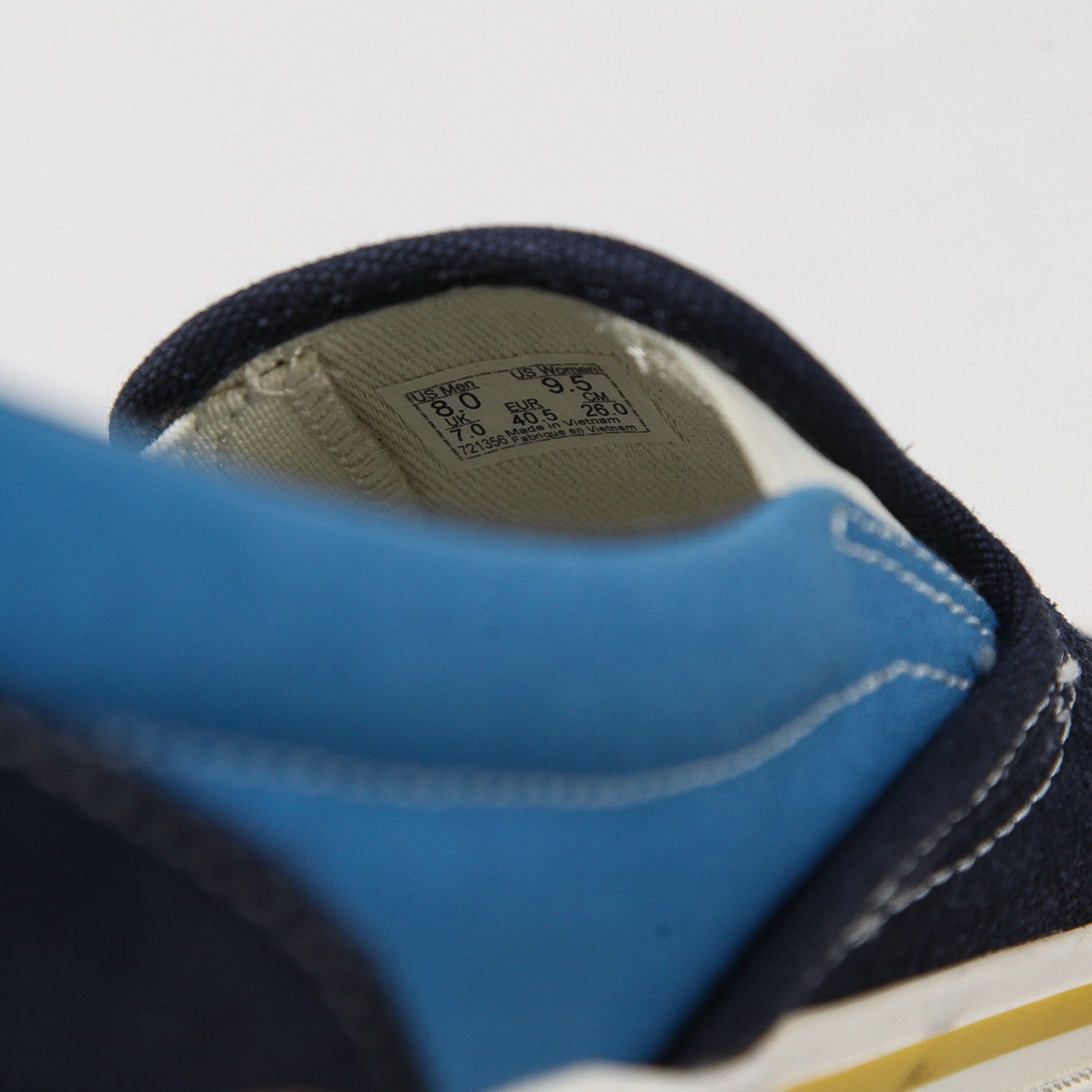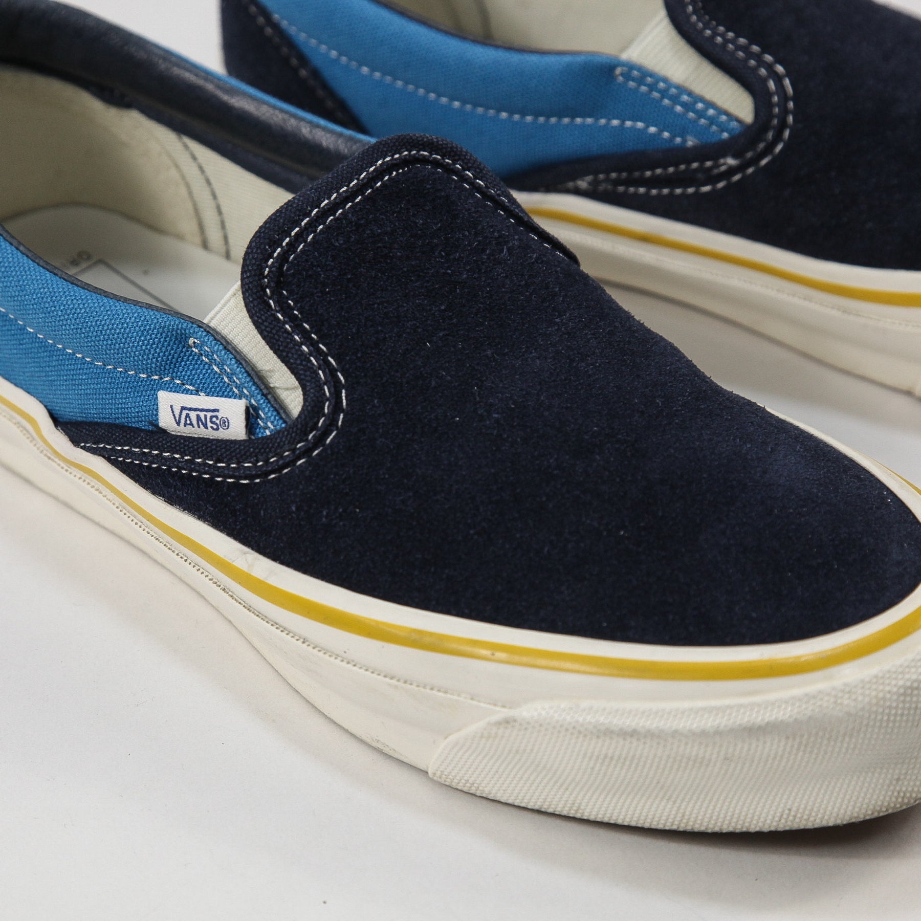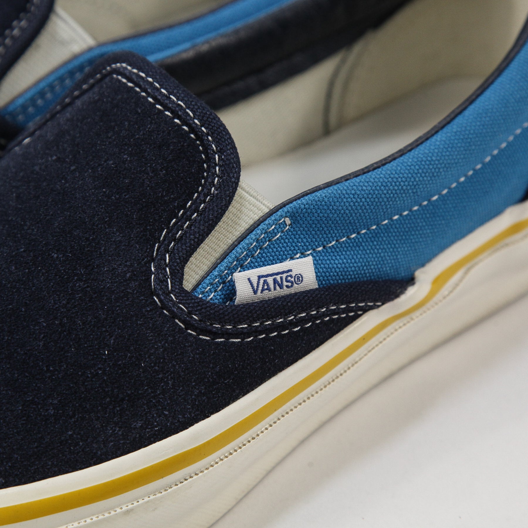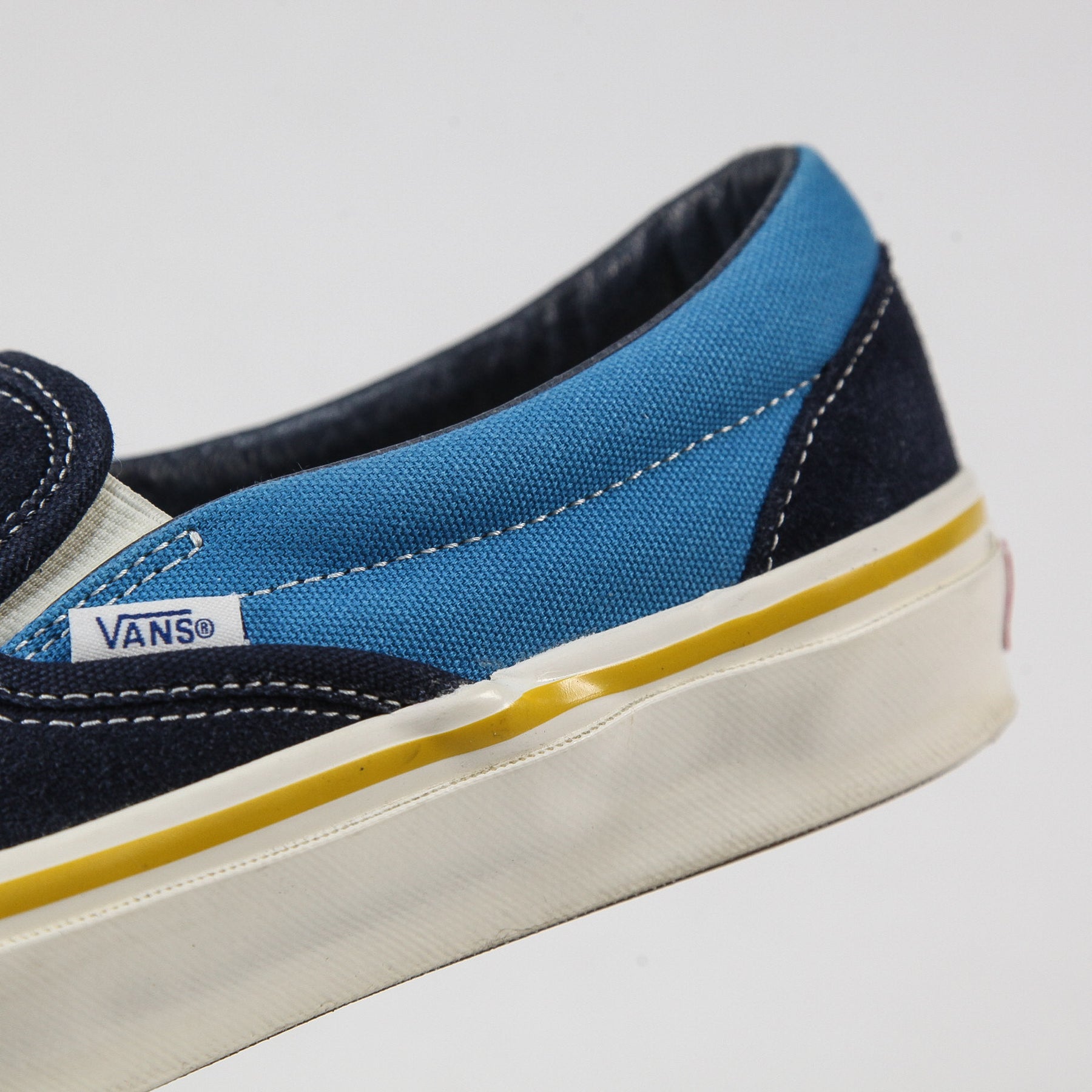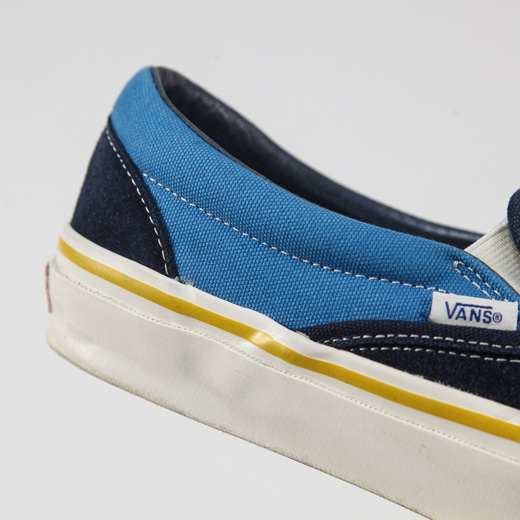 ソールに巻かれたサイドテープの巻き方やVANSロゴを入れたウーブンラベルのカラー、ラスト(足型)などU.S.A工場時代のオリジナルディテールを再現。